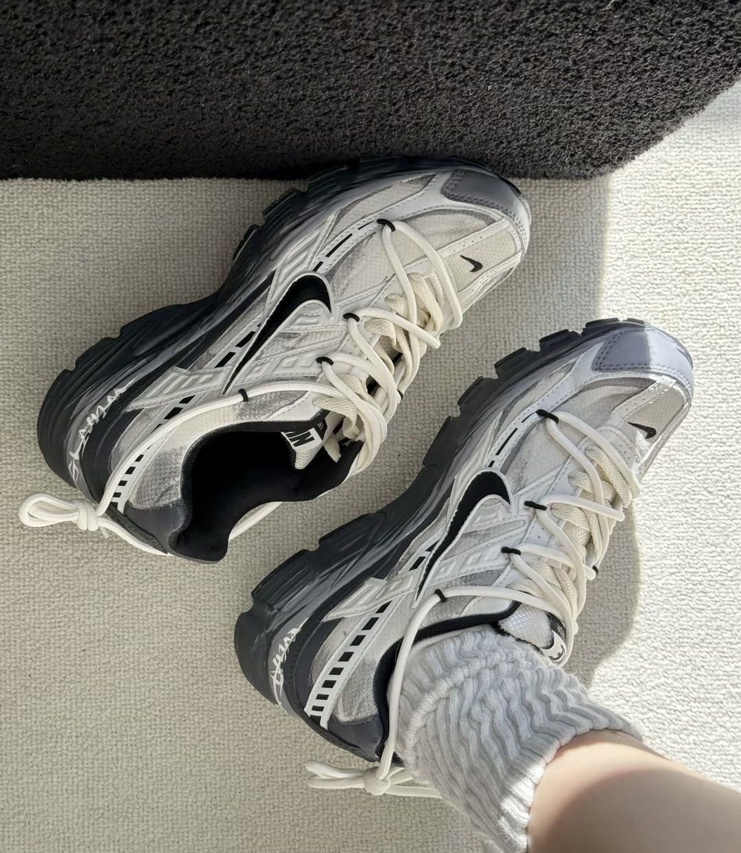 我太喜欢这个系列的鞋了 因为上脚是真的好看 而且很百搭 无论是我日常上班通勤 还是周末和朋友去户外运动 都能搭配的很好看 做旧款式一低饱和度的..灰白黑配色 整体看起来复古又有质感 浅色系比其他颜色要吸晴 一点 上脚很轻盈舒适 鞋面网布设计也比较透气 唯一的缺点就是浅色网面有点不耐脏 不过脏了可以涂点牙膏+小苏打就 OK 了