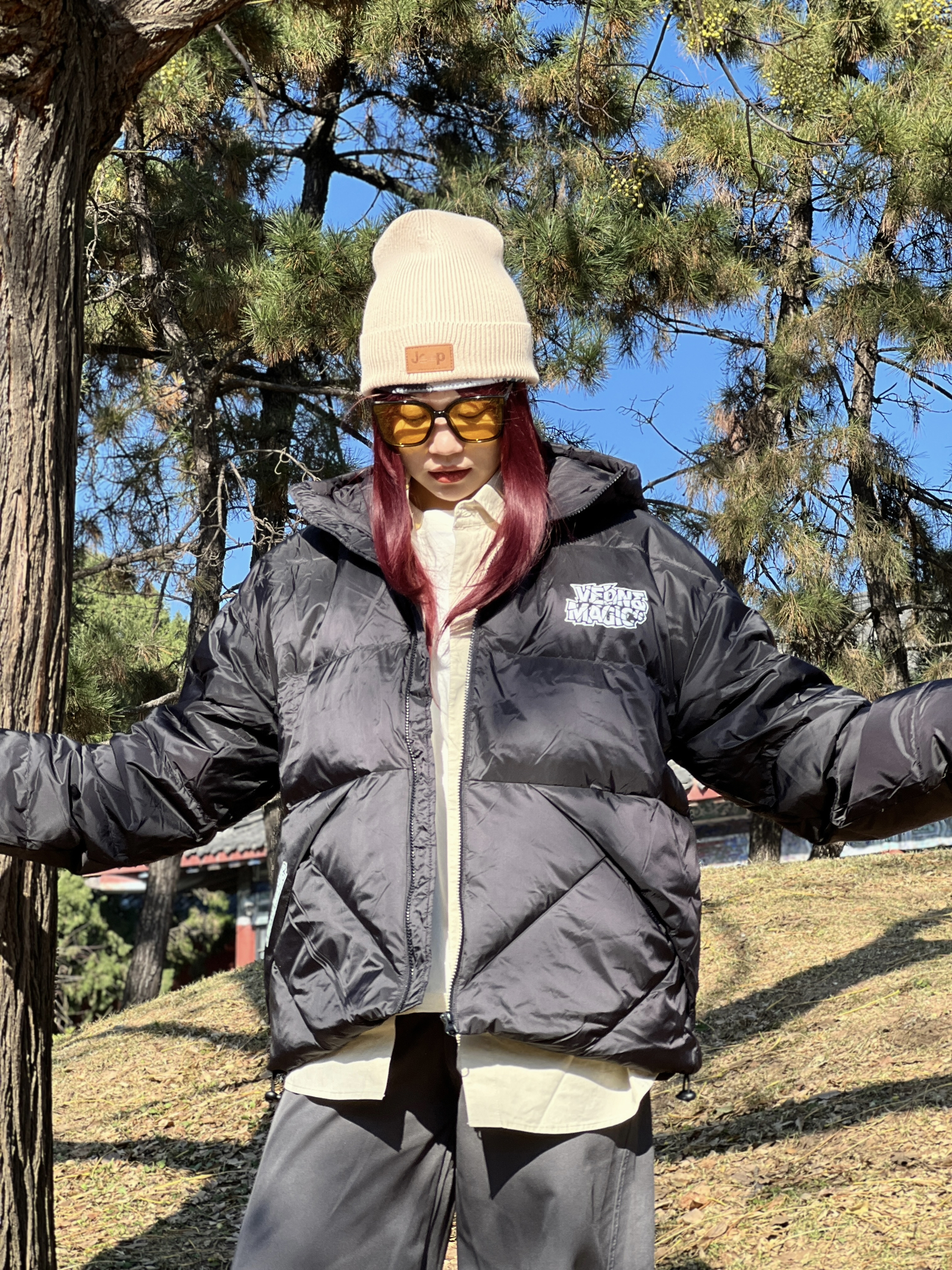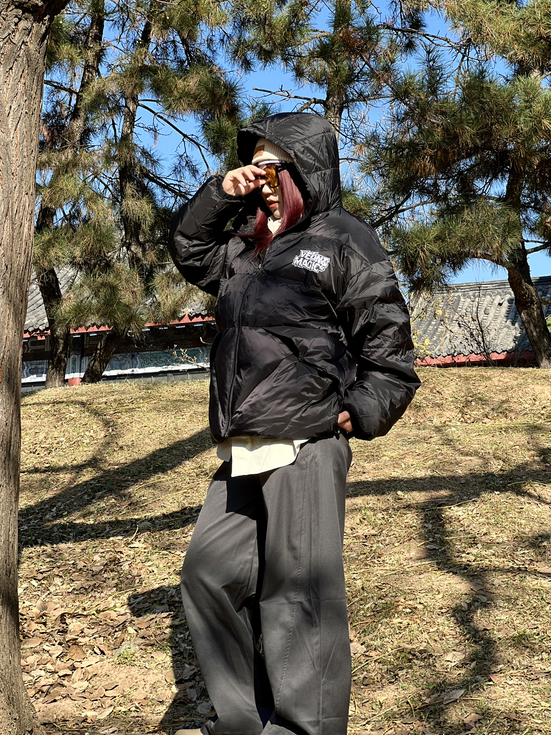 短款蓬松羽绒服➕工装衬衣➕灰色阔腿裤 ,冬天也要穿很帅🕶️ 维动 VEIDOORN 这件裁剪式羽绒服保暖又有型,视觉上有收腰、显瘦的效果 白鸭绒填充性价比拉满,是我的降温必入榜1⃣️ 喜欢口袋处和后背的字母印花设计 我身高158cm,体重52kg,梨形身材,穿得 码M码。