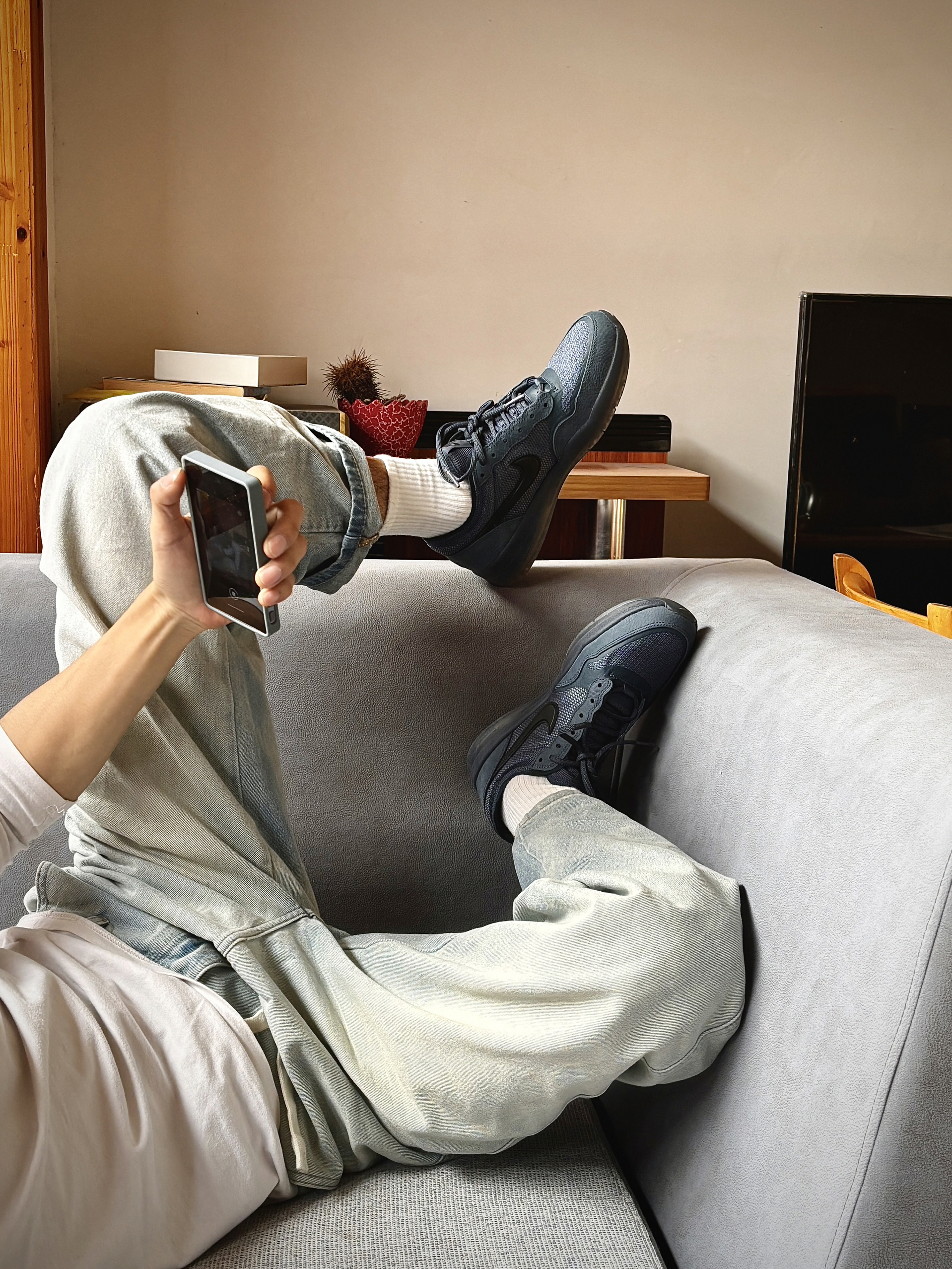 今天跟大家分享的是脚上这 Nike PS8 ,怎么说呢?拿到手的第一眼有点嫌弃,哈哈🤣!结果上脚才知道这双鞋的好啊😆,首先这双鞋相比较之前买的板鞋就很轻,在阳光下的蓝色色泽很有质感,配白色长袜+牛仔裤👖很百搭,上脚感软乎乎的,鞋底有弹性,日常通勤一天,脚底🦶一点也不酸。 还有一个重要‼️的点就是耐脏,很适合我这样的懒小伙,鞋面有点脏,湿巾轻轻一擦就可以了😌! #被这双鞋帅到