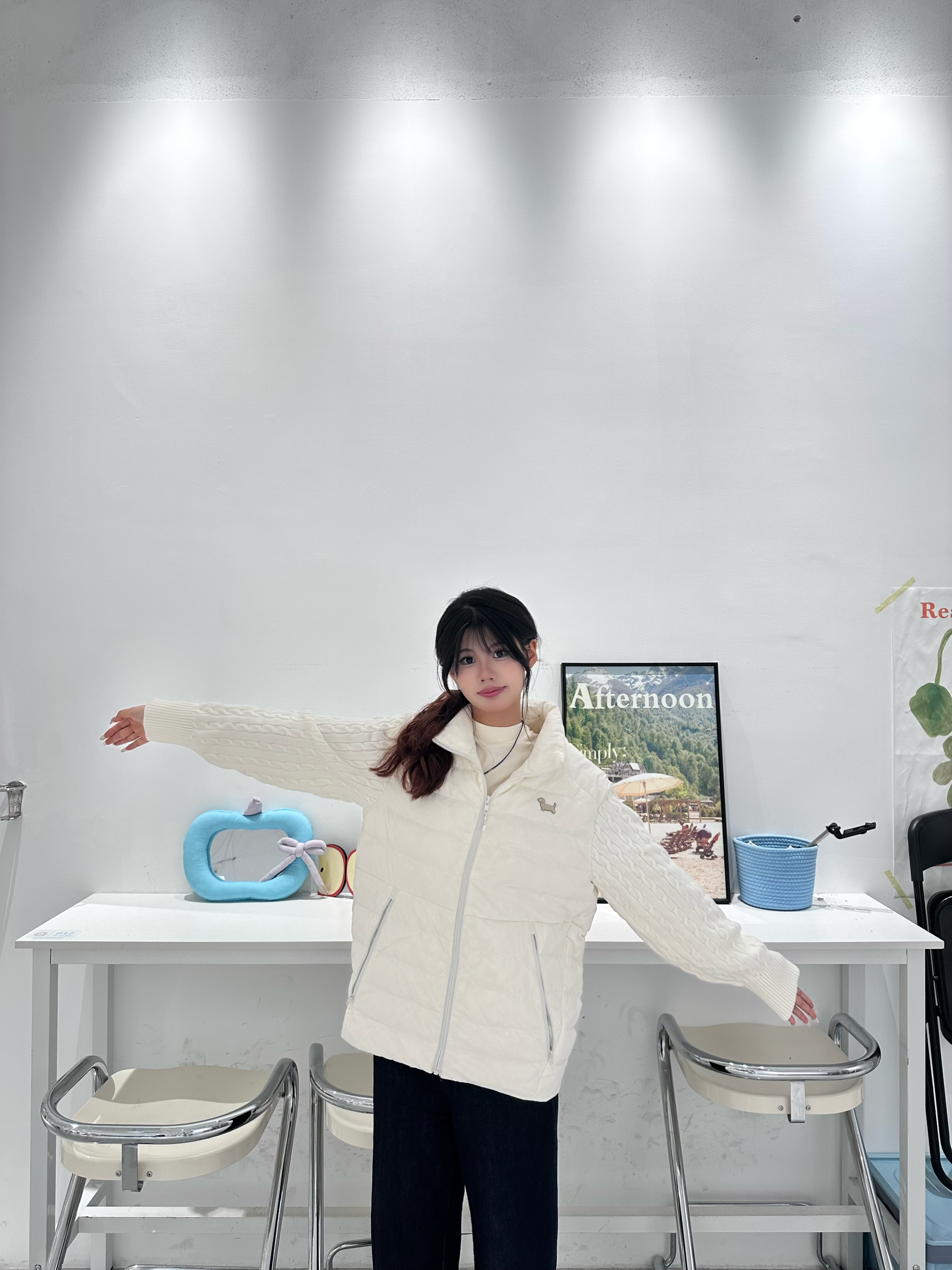 谁懂啊!这件bipolar莫比乌斯环系列的奶白色羽绒服直接戳中我的心~ 奶fufu的米白色巨显温柔,拼接的麻花袖设计把复古感拉满,版型是宽松的那种,对身材包容性超友好!