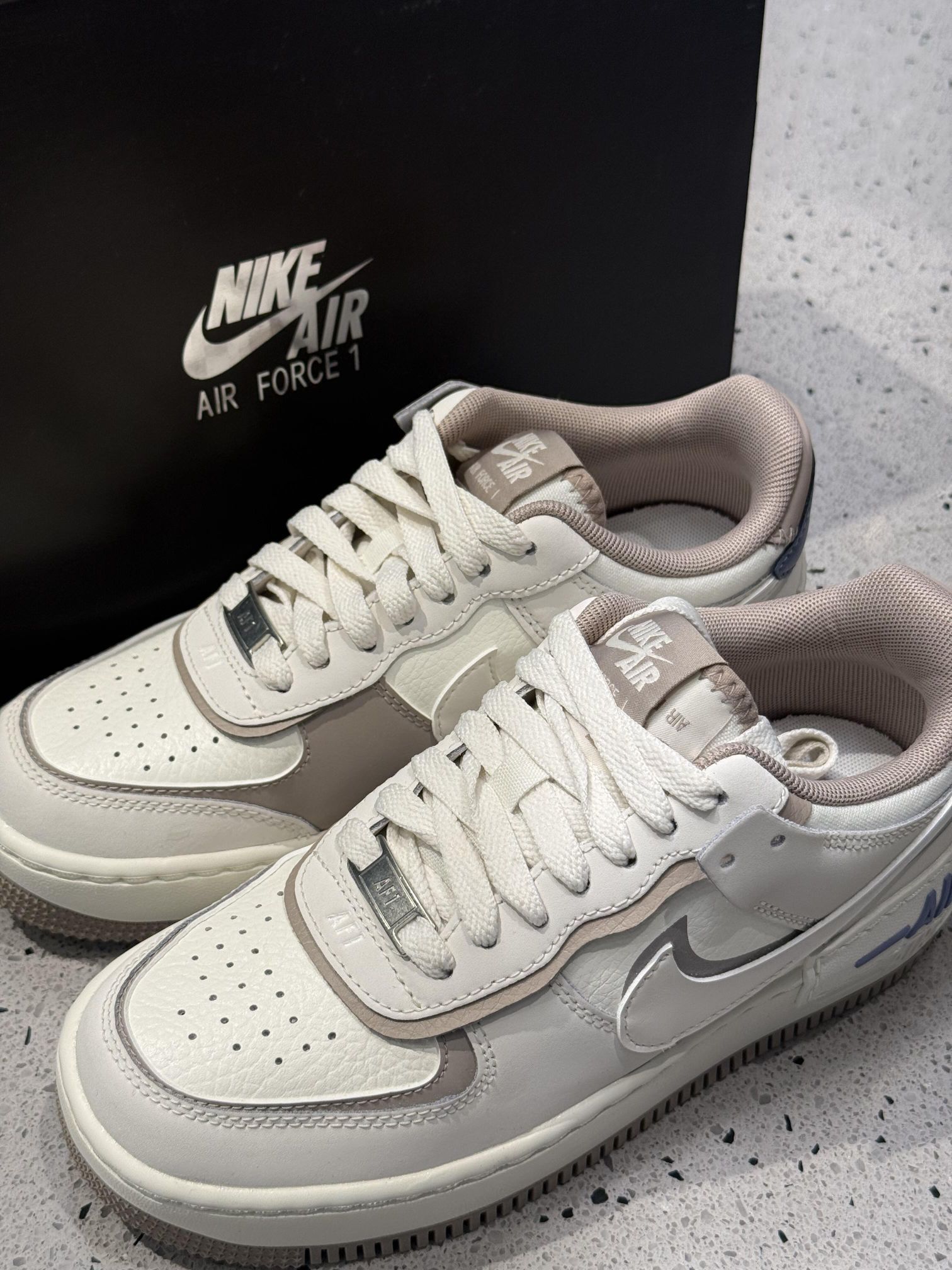 ▫️低饱和米白拼接浅灰淡蓝,日常搭配不挑衣服 ▫️荔枝纹皮革好打理双层勾线+后跟AIR标层次感满分 ▫️4.5cm厚底悄悄增高,泡棉鞋垫逛整天也不累脚 👟搭配场景: · 牛仔裤+针织衫=温柔学姐风 · 连衣裙+小腿袜=甜酷少女感 · 运动裤+卫衣=休闲松弛范