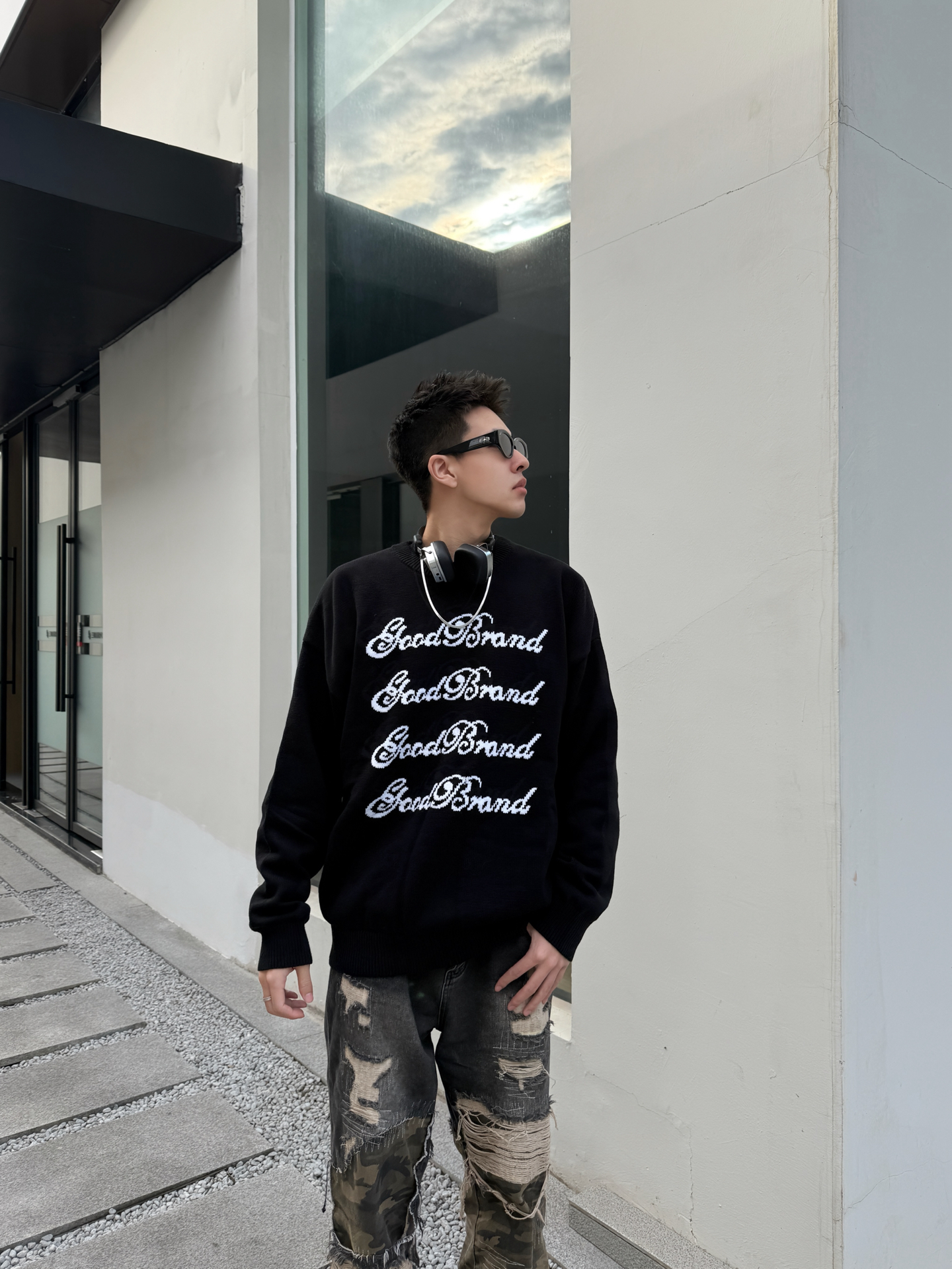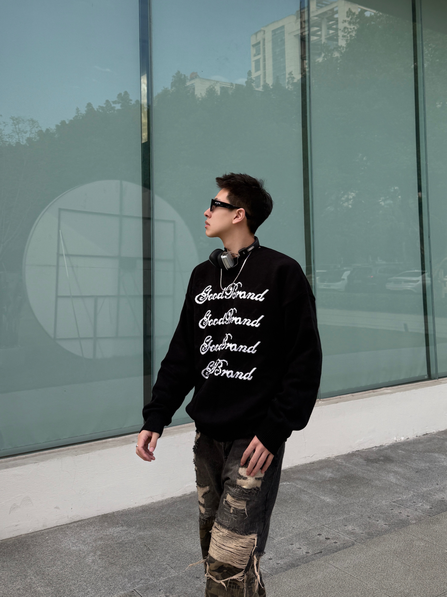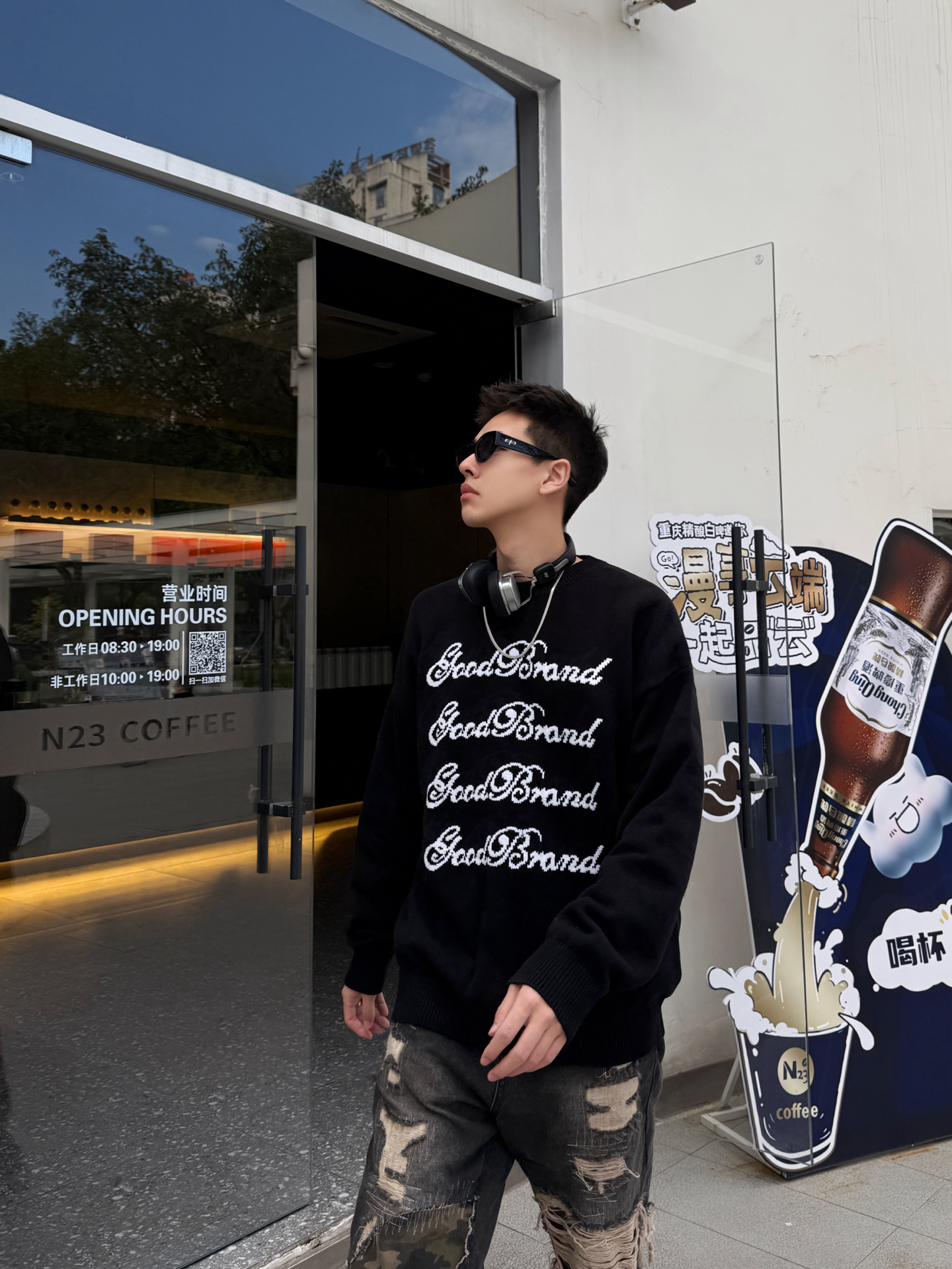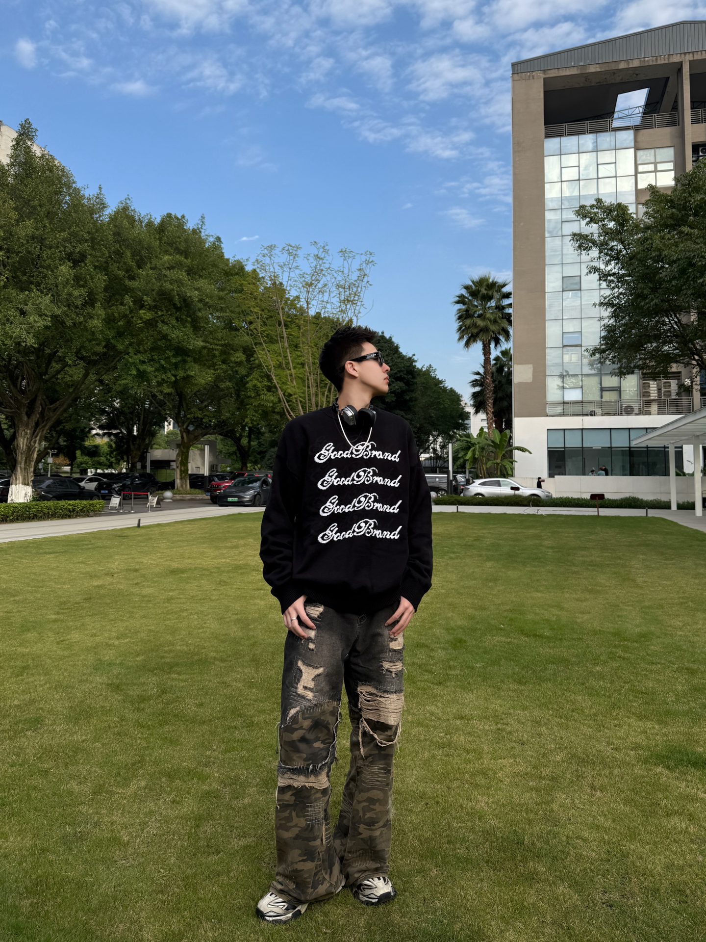 谁懂啊!秋天的毛衣居然能这么搭!GOODBRAND这件黑色字母毛衣+迷彩阔腿裤,直接把街头潮感拉满~ 这件GOODBRAND毛衣质感绝了!黑色底叠印字母设计,美式复古味超浓,面料软乎乎的贴身穿不扎,宽松版型不挑身材,藏肉又显瘦,日常穿舒适感拉满~ 搭配的迷彩阔腿裤太有腔调了!做旧破洞细节自带随性酷感,阔腿版型显腿直又长,和毛衣搭在一起,松弛感与潮感直接焊死,秋日街头出片率满分~ 脚上的拼色老...