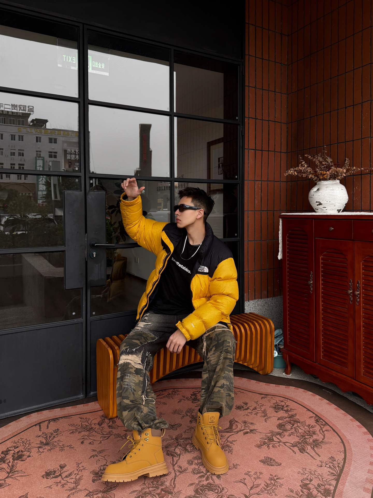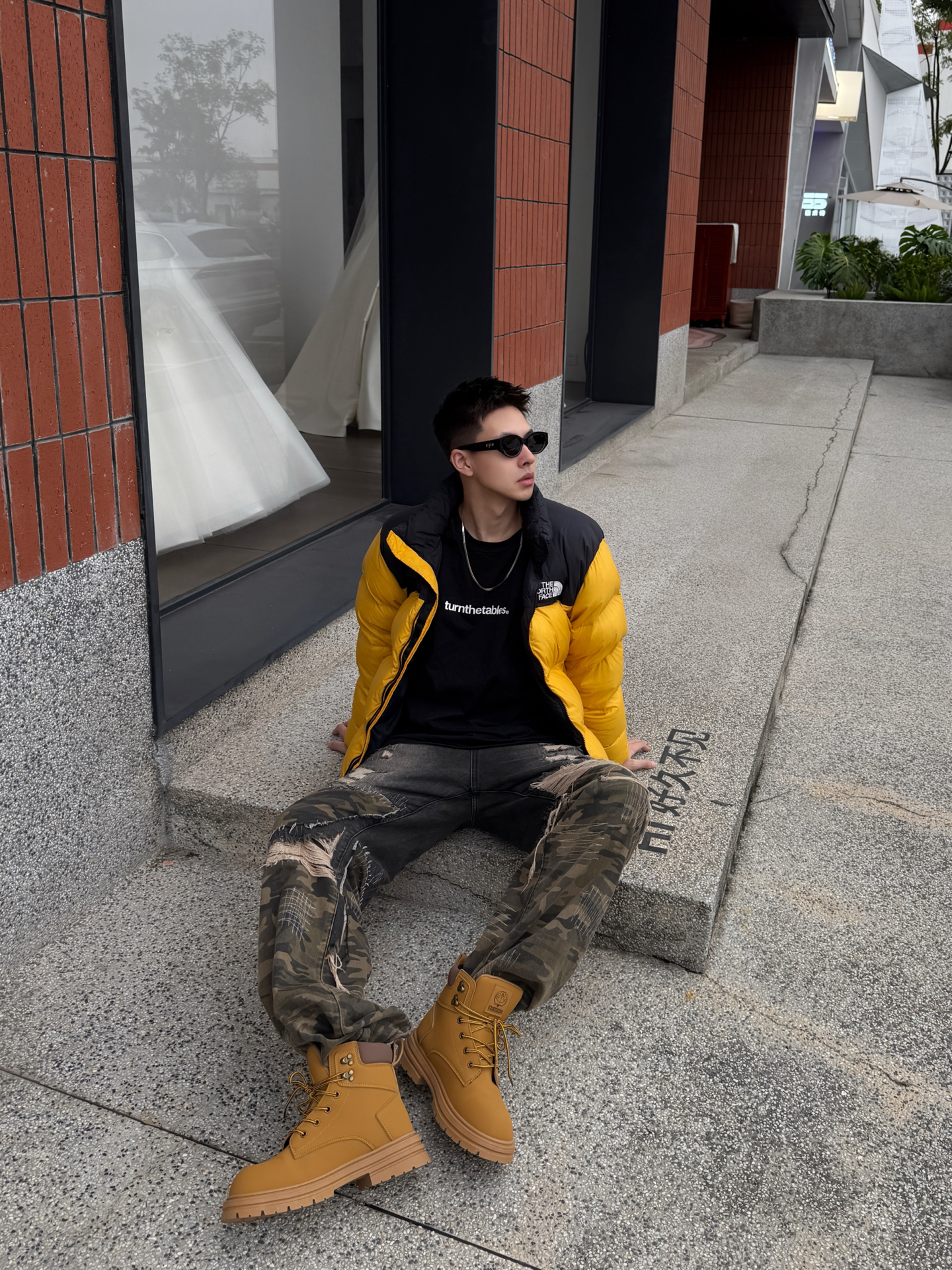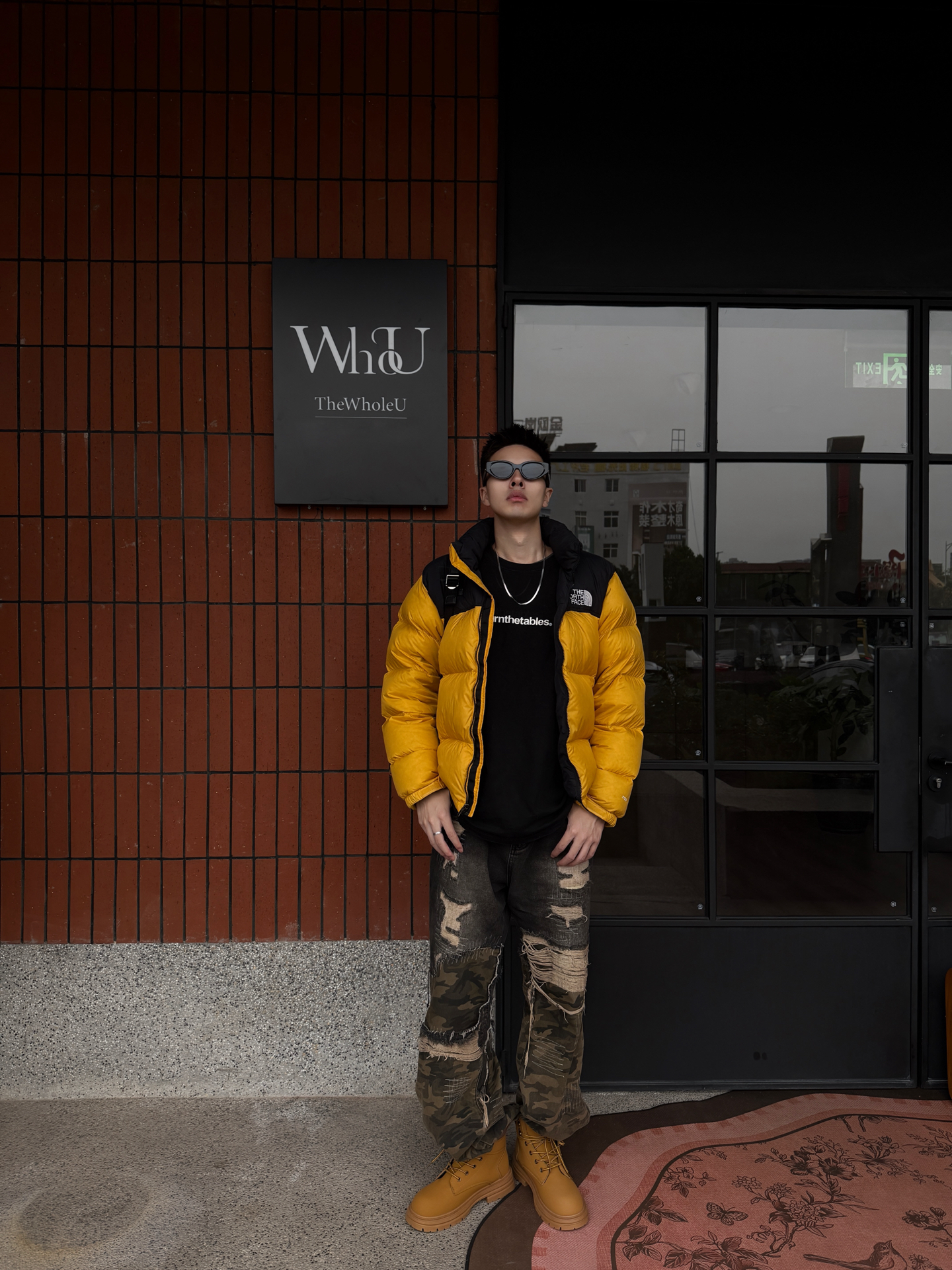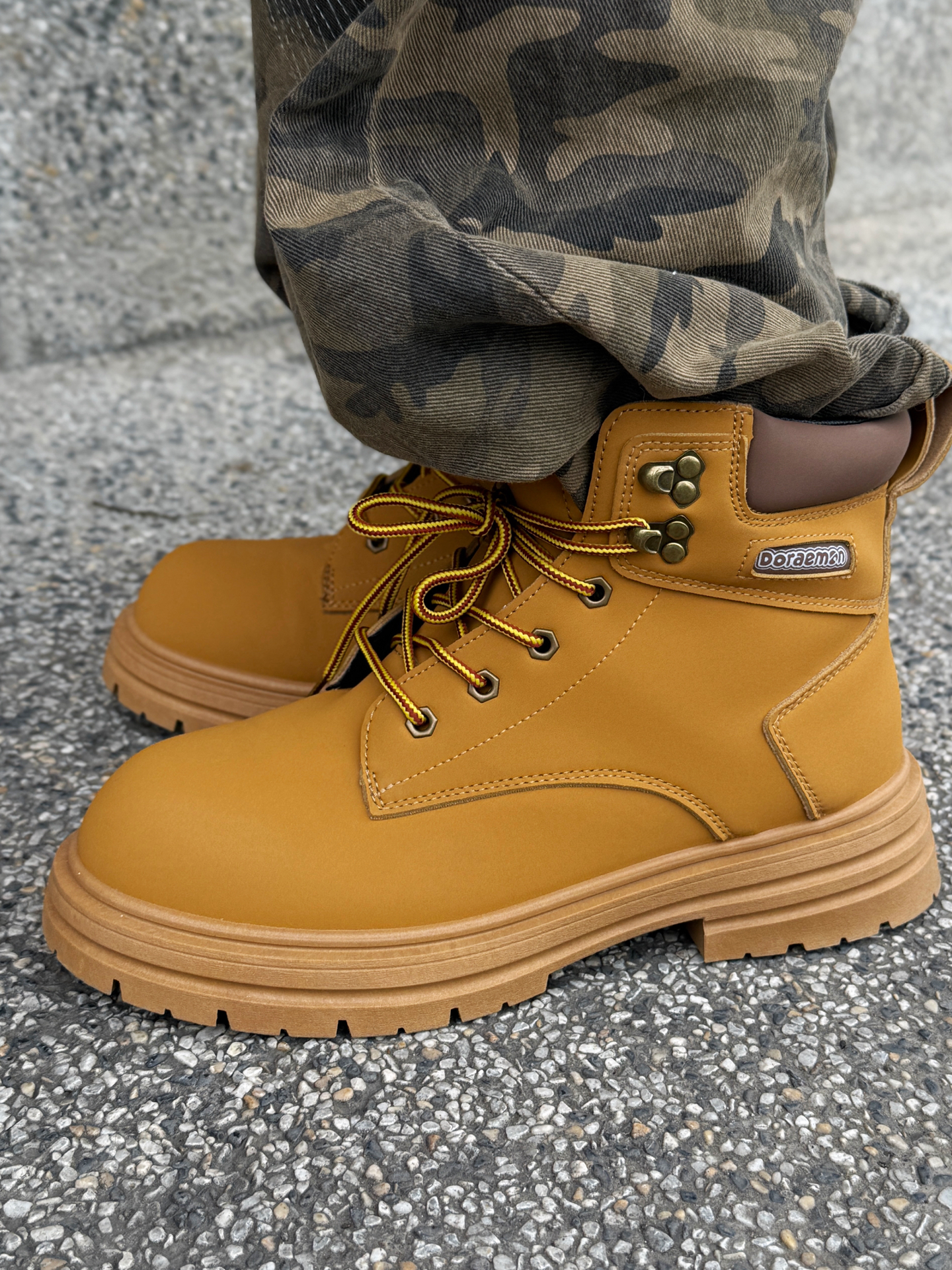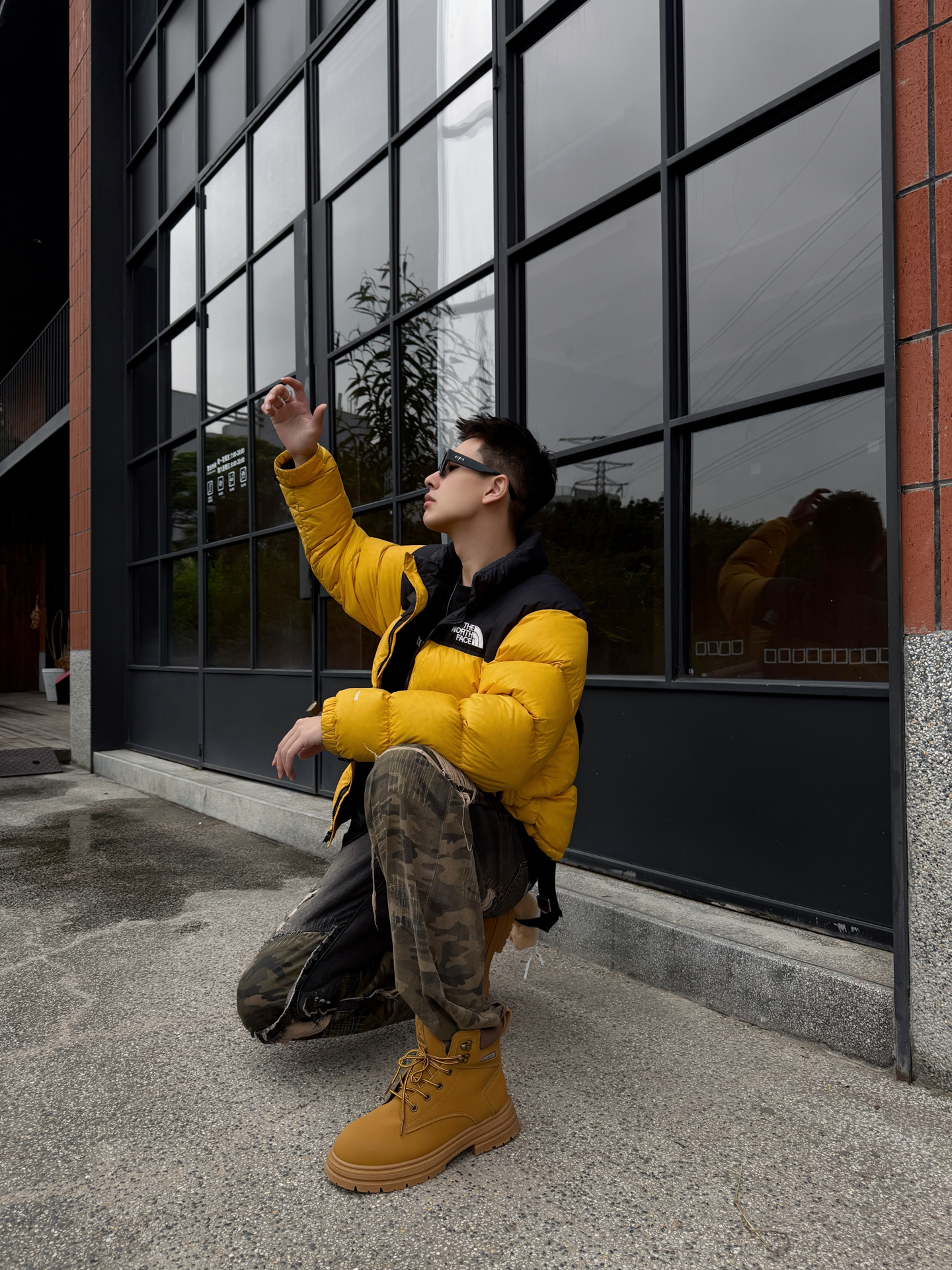 谁穿谁炸街的冬日配色!北面亮黄羽绒服+迷彩破洞裤+哆啦A梦大黄靴,潮感直接焊在身上~😎 这件北面羽绒服真的戳中视觉中心!亮黄色+黑拼色超有辨识度,蓬松度刚好不会显臃肿,上身保暖又能撑得起穿搭调性,连帽设计自带休闲感,日常穿既抗冻又时髦~ 搭配的迷彩破洞裤太有腔调了!做旧细节自带复古随性,阔腿版型显腿直又藏肉,和羽绒服搭在一起,松弛感与酷感双在线,出门完全不怕撞款~ 重点夸夸这双哆啦A梦大黄靴...