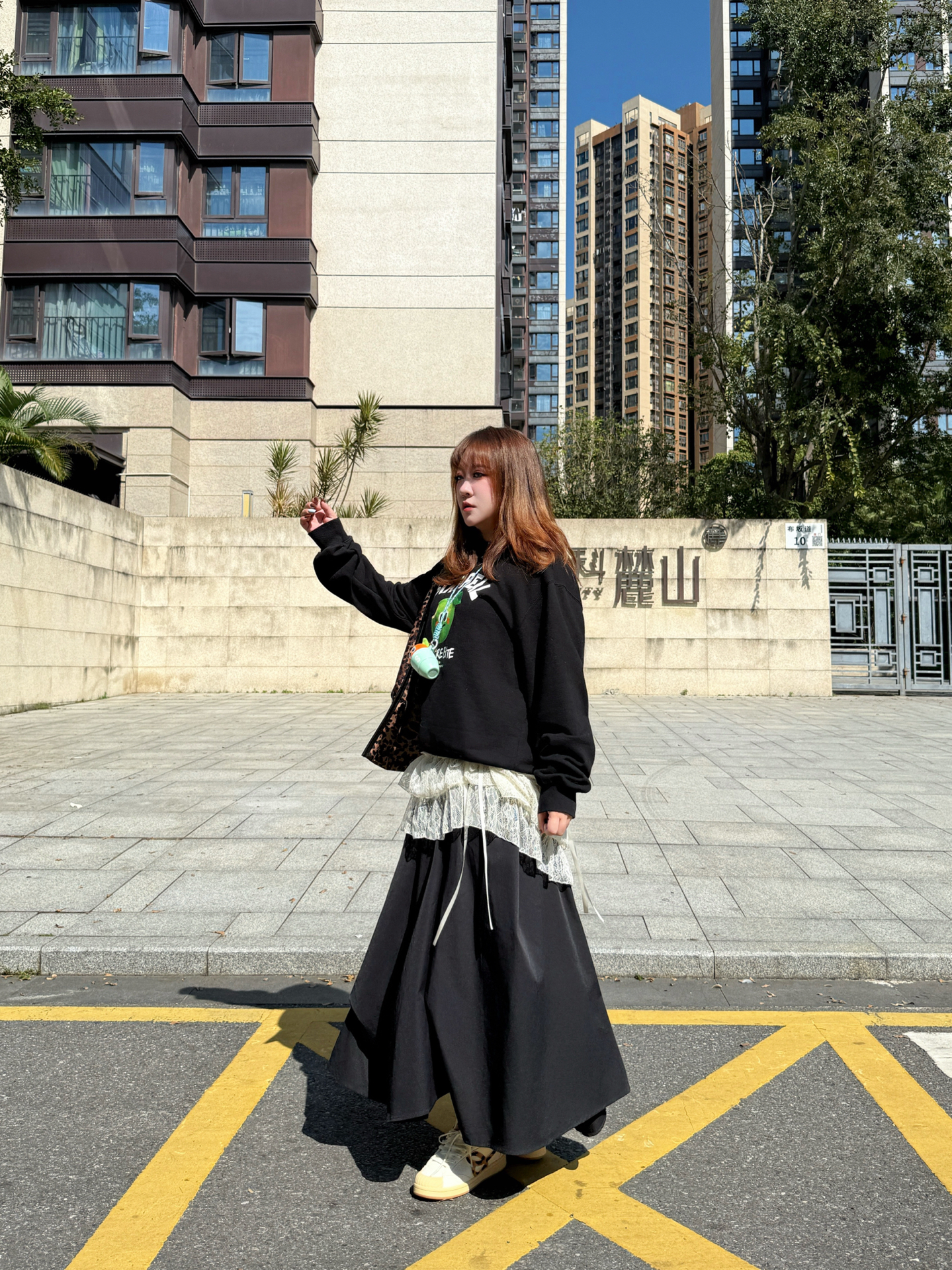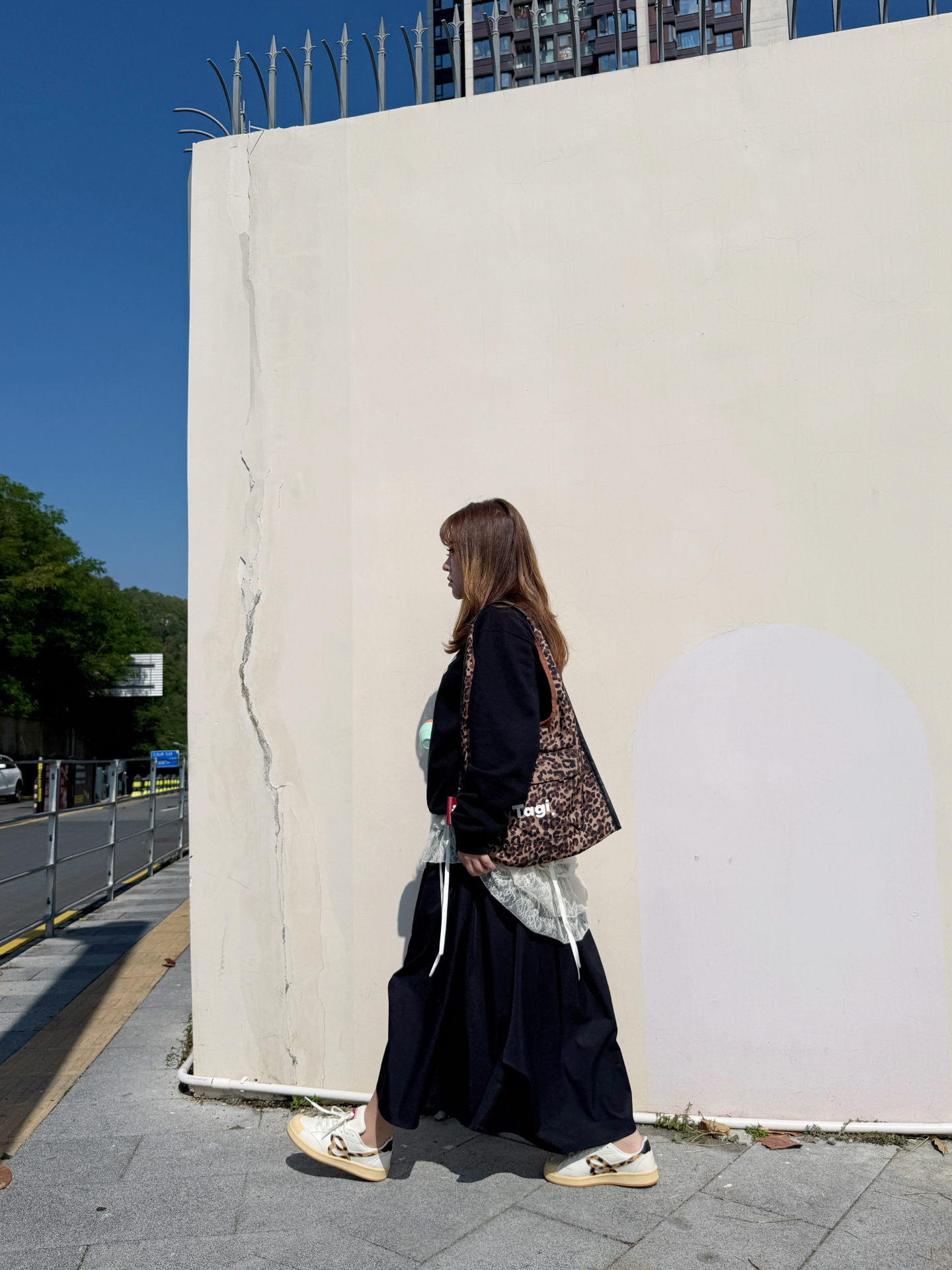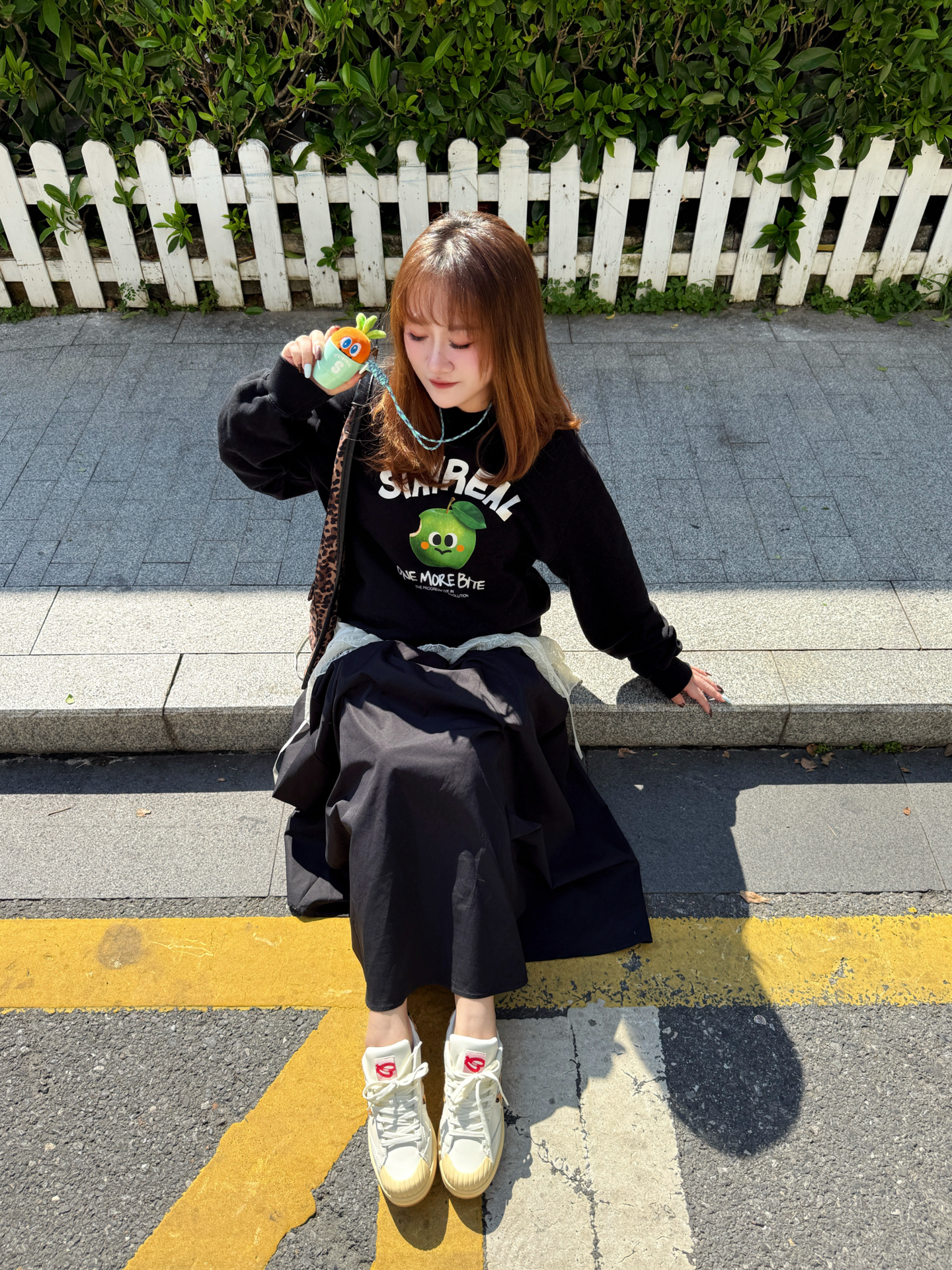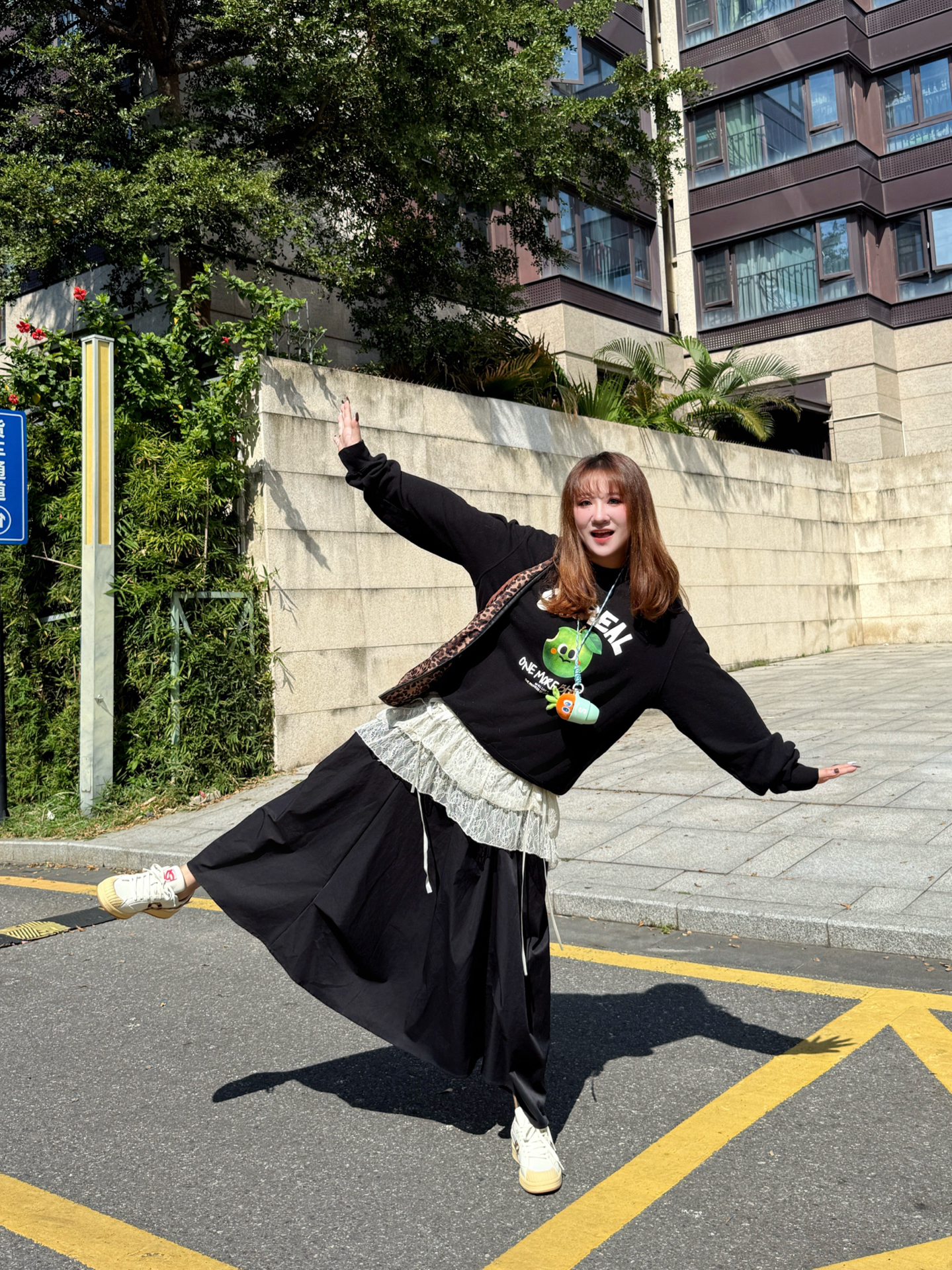 ▪️ 暗色系の调味哲学 卫衣的青苹果印花像是黑白电影里突然跳动的像素格🎬 个人偏爱把黑色穿出层次——裙摆的蕾丝屁帘随风飘起时 刚好露出鞋侧的豹纹图腾 不同材质悄悄对话👌 / ▪️ 厚底鞋の隐形buff 3cm增高底+防滑纹=小个子冬日安全感⛸️ 试过小跑追公交也不累脚 (豹纹从鞋面蔓延到挎包,野性美收放自如🐆 / ▪️ 背景与穿搭的彩蛋 涂鸦墙的彩虹色块🌈巧妙中和了全身的冷感 青苹果绿与墙面喷漆色...