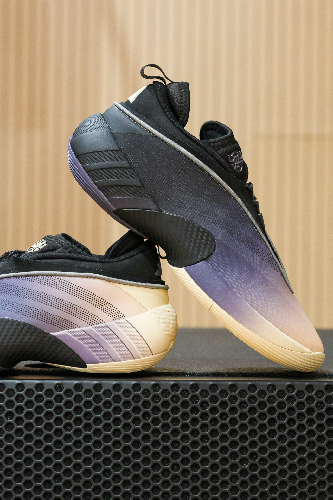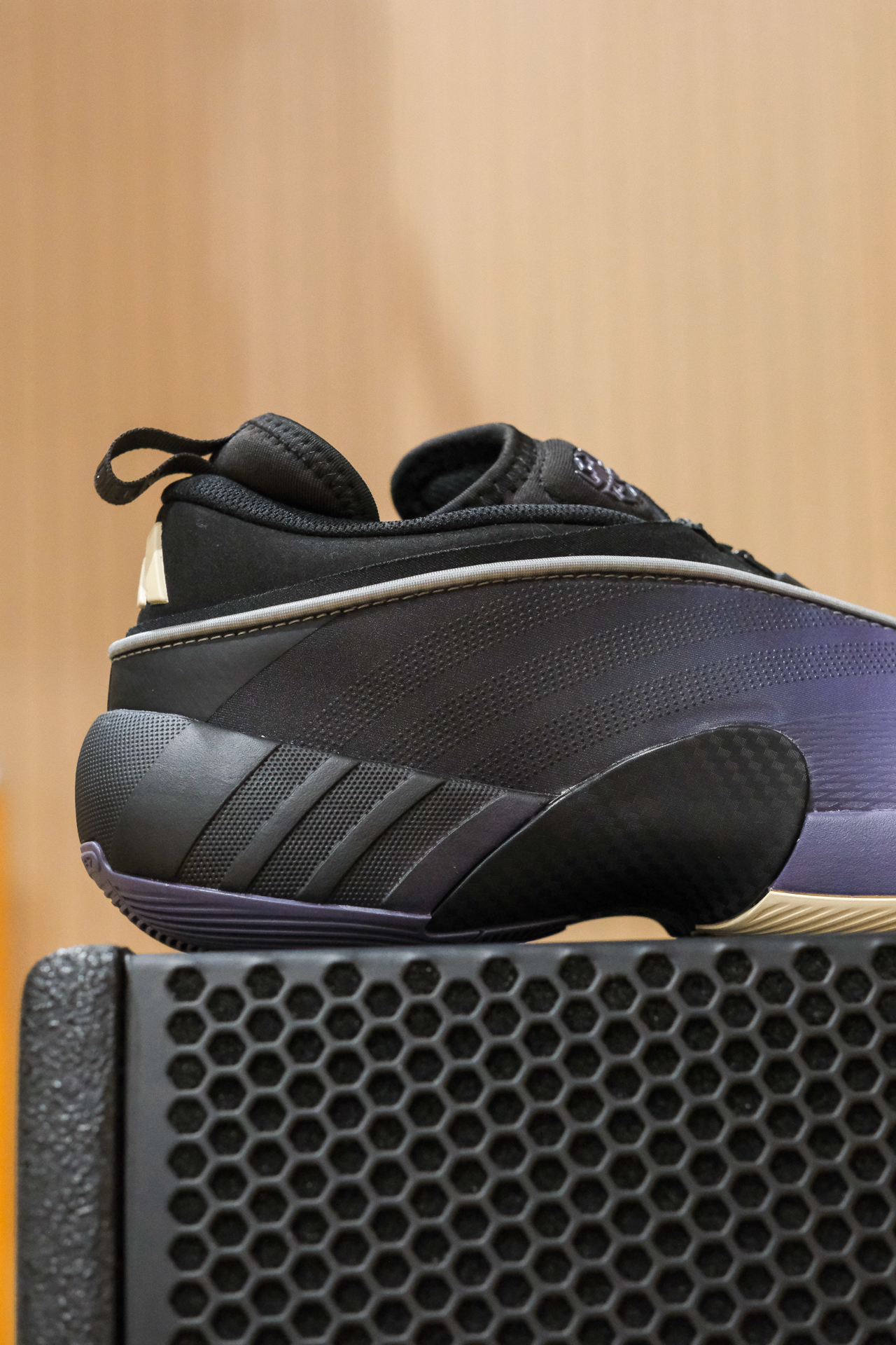 分享下米切尔7紫黑米配色,白紫黑三色渐变,左右脚的渐变还是相反的,蛮有意思的,小众又低调。 内靴式结构设计,上脚包裹感好,尤其是在外面增加了拉链式鞋带罩,锁定很好。透气的话就一般了,好在是冬天还挺保暖。中底前掌lightstrike pro减震反馈明显,像我这种喜欢前掌落地的就感觉蛮爽的。 低调好搭配,打球通勤皆可。尺码建议:买大半码! #被这双鞋帅到 #一人一双篮球鞋