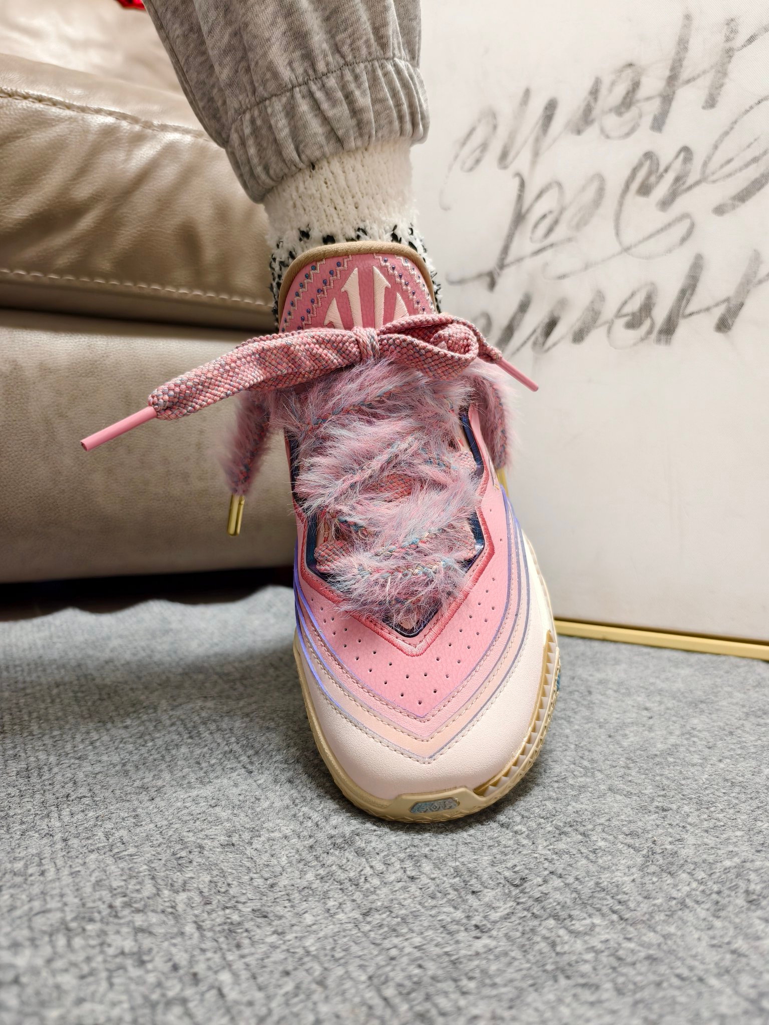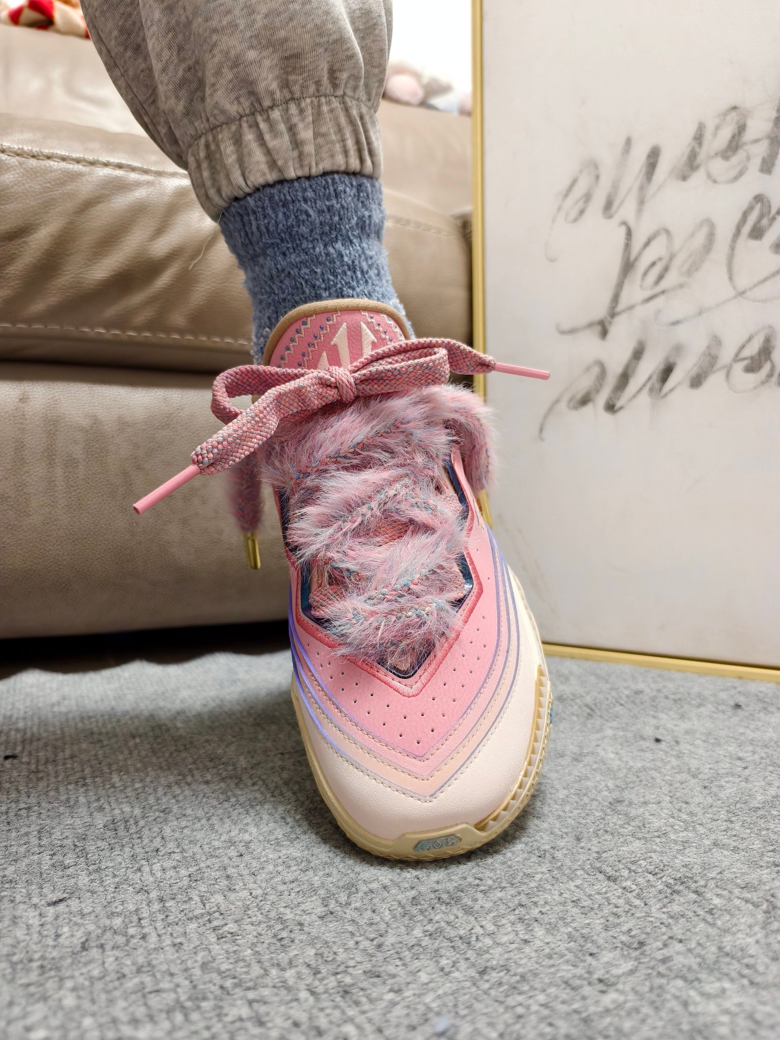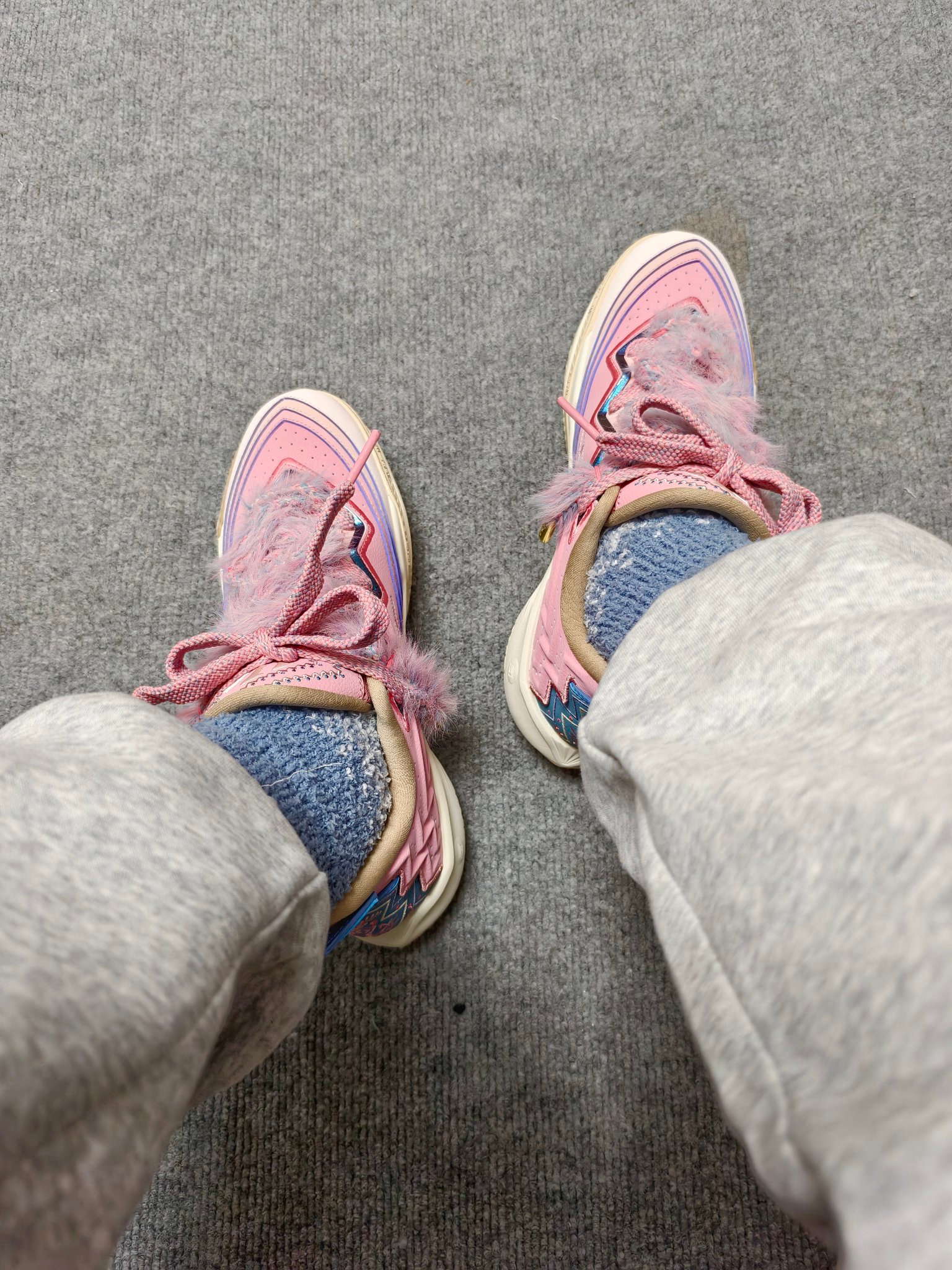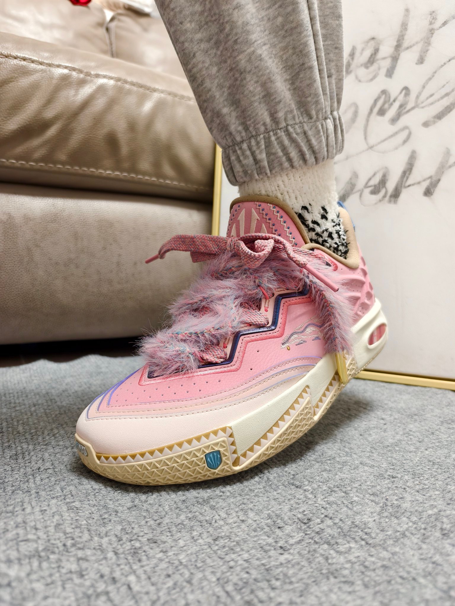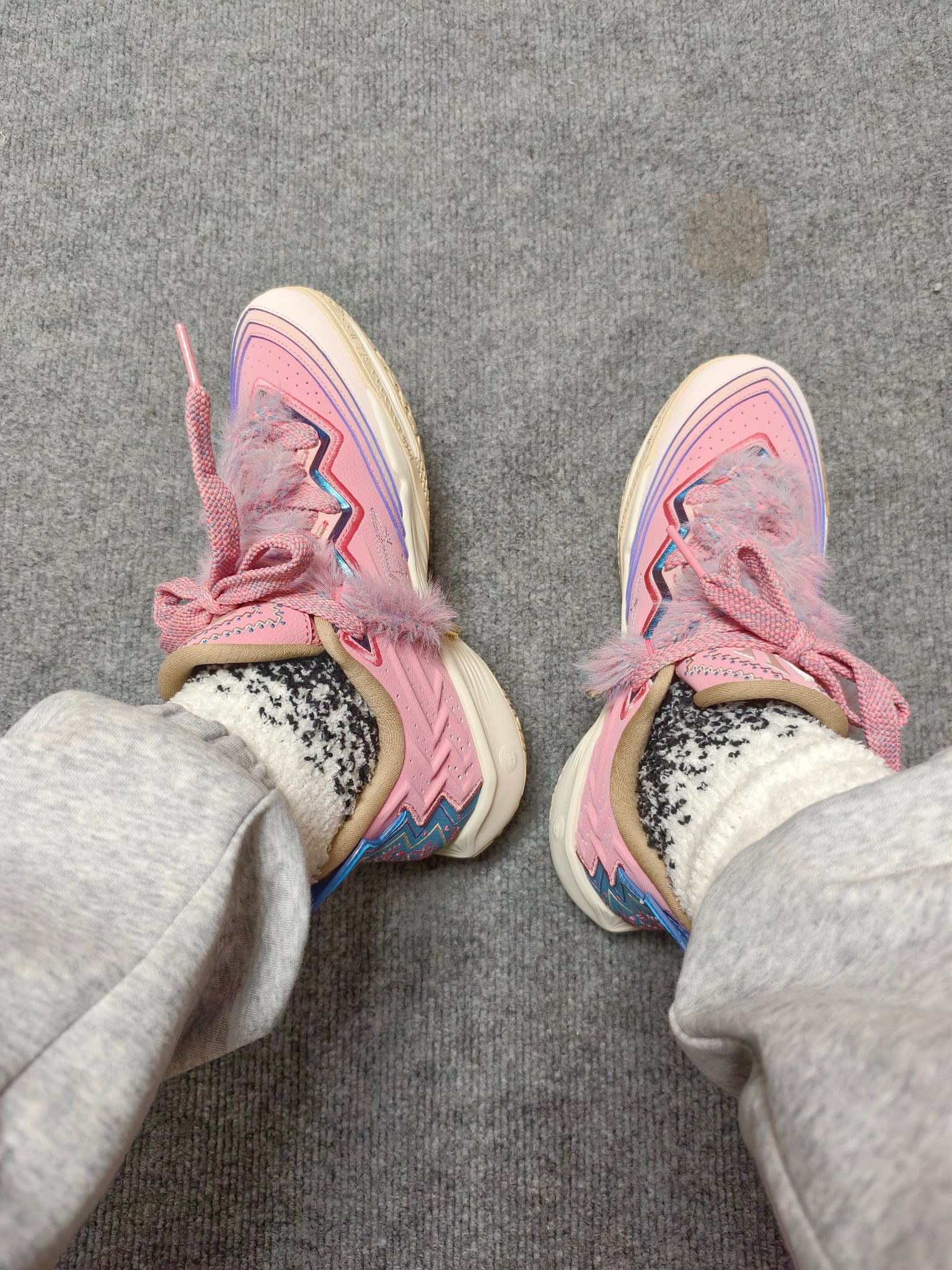 😈冬天似乎和毛绒绒多少要有点关系~ 最近新出的欧文2代“小公主”,确实有点可爱。 👀粉色系配色加上特有的鞋带设计很吸睛。 🤓这不,配上#佐印ZEROIN 这款珊瑚绒中筒袜,还有点意思。 👉加绒袜身本身带来了不错的保暖属性,意外的是确实绒毛很细腻,不刺激皮肤。 🤔轻度中帮的版型,不束缚脚踝,体感自由。 😀再配上本身低帮的毛绒绒👟,这一组...