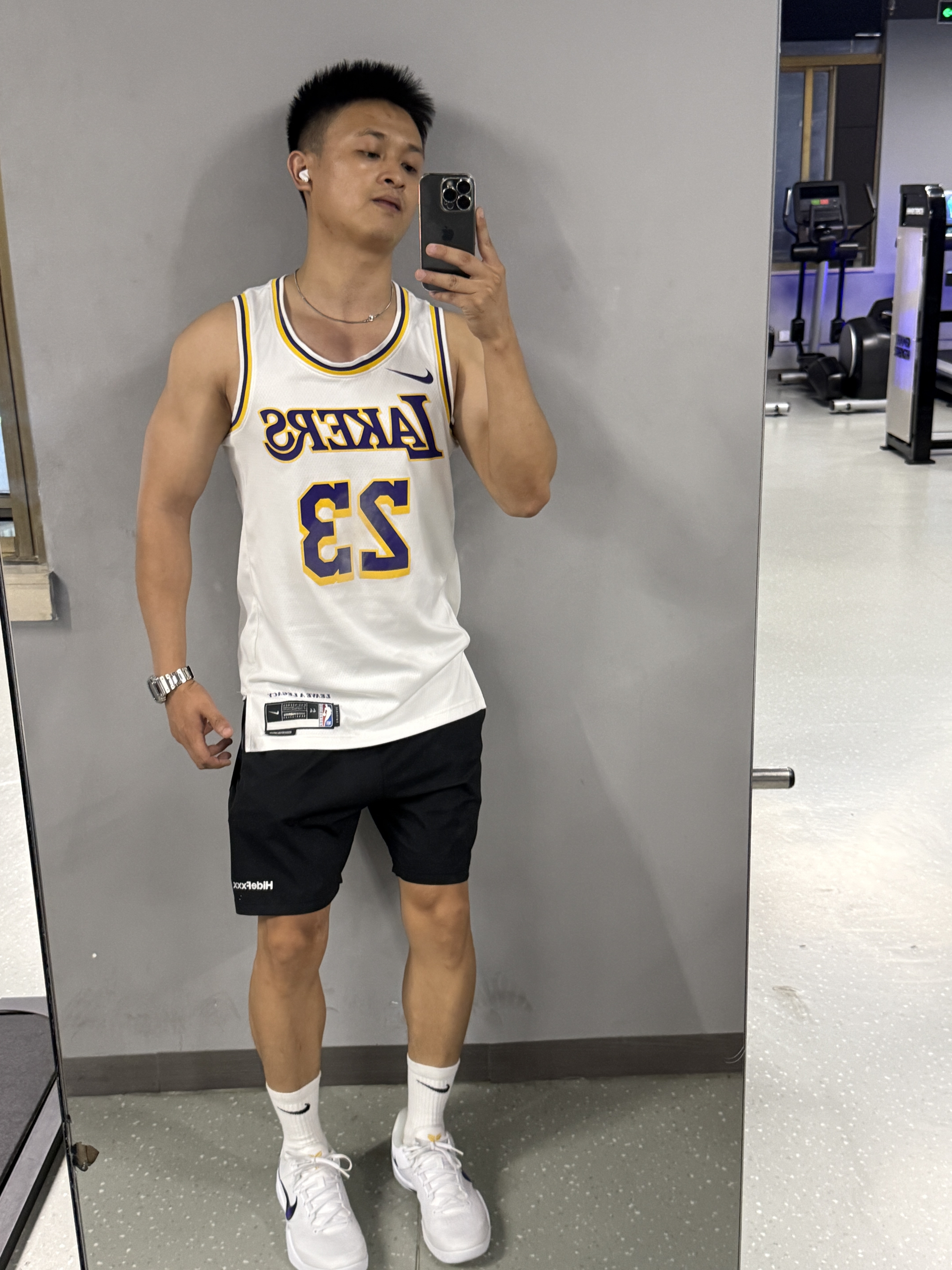 今天穿着老婆买的科比8健身好开心 脚感偏硬,但是包裹性很不错 可以偏大半码买 身高|体重:175/74 🧍♂️ 穿搭风格:运动健身 👔 上衣:nba湖人球衣 👖 下装:hidefxxx 👟 鞋子:科比8