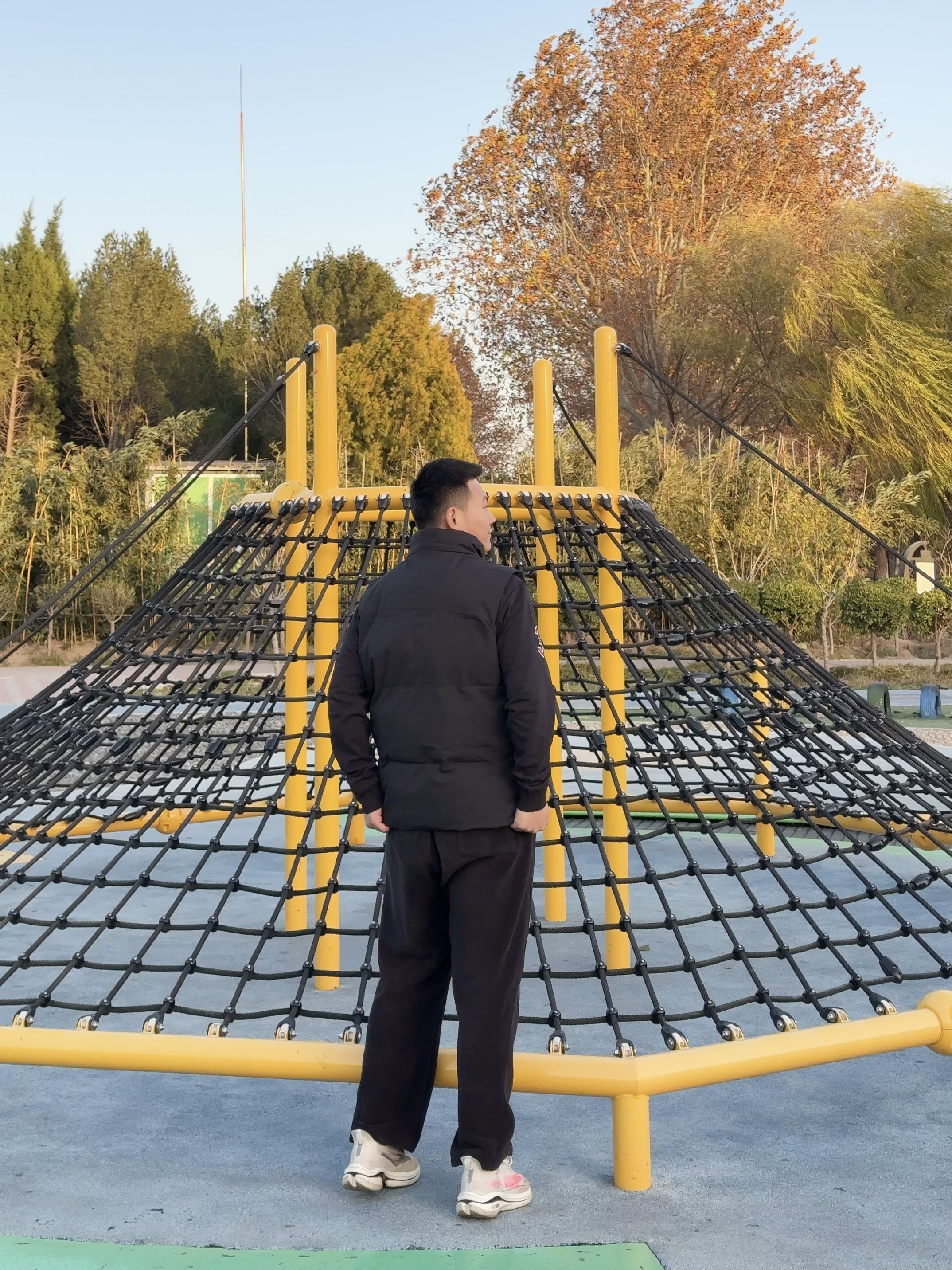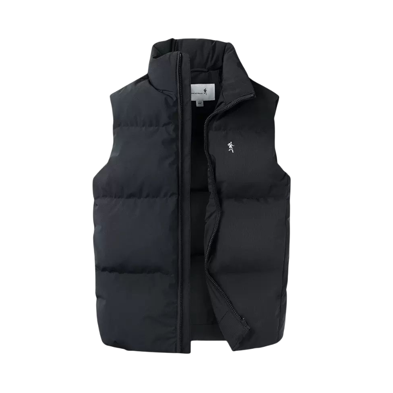 “兄弟们,刚在识货入的这件棉马甲,今天8度穿它,里面搭件卫衣,逛公园坐秋千都没冻着。 你们看这版型——短款刚好卡腰,我180/78kg穿2XL,套在卫衣外面一点不臃肿,抬手、坐网绳都不绷。面料是那种哑光的,摸着手感挺扎实,刚才蹭到网绳也没勾丝。 细节也到位!胸口小标不显眼但有质感,口袋是斜插的,揣手机刚好。现在秋冬当叠穿,开春单穿也合适,比羽绒服轻还比外套暖。