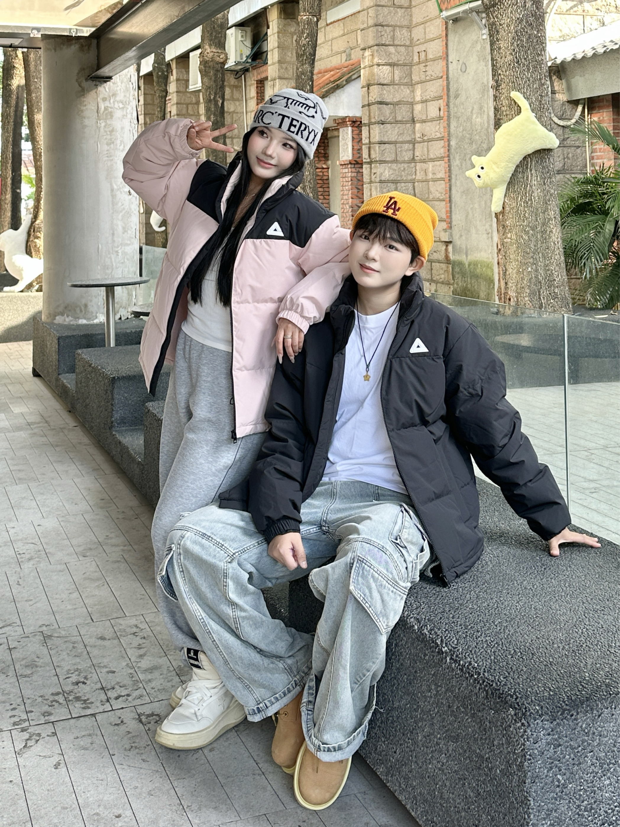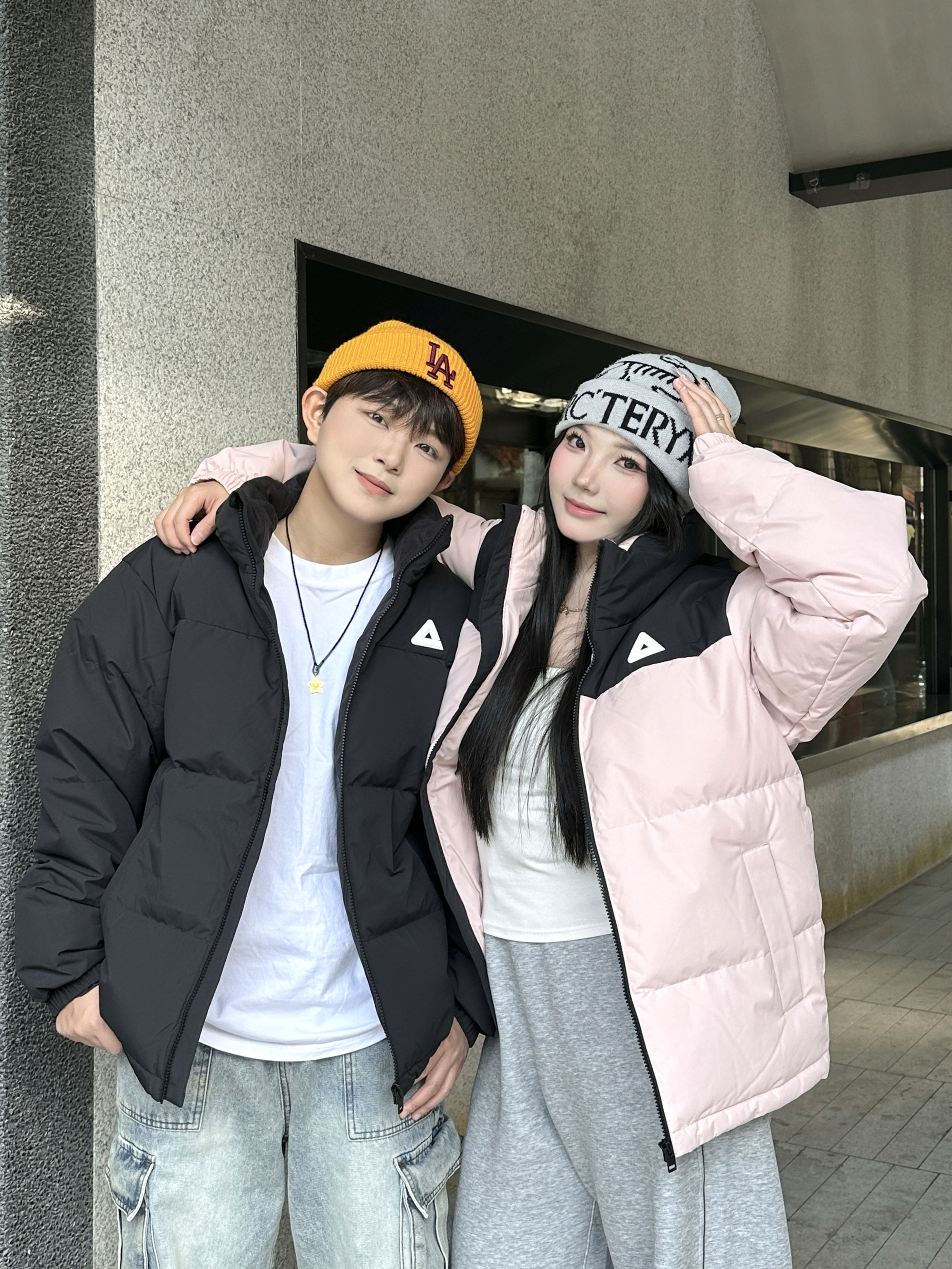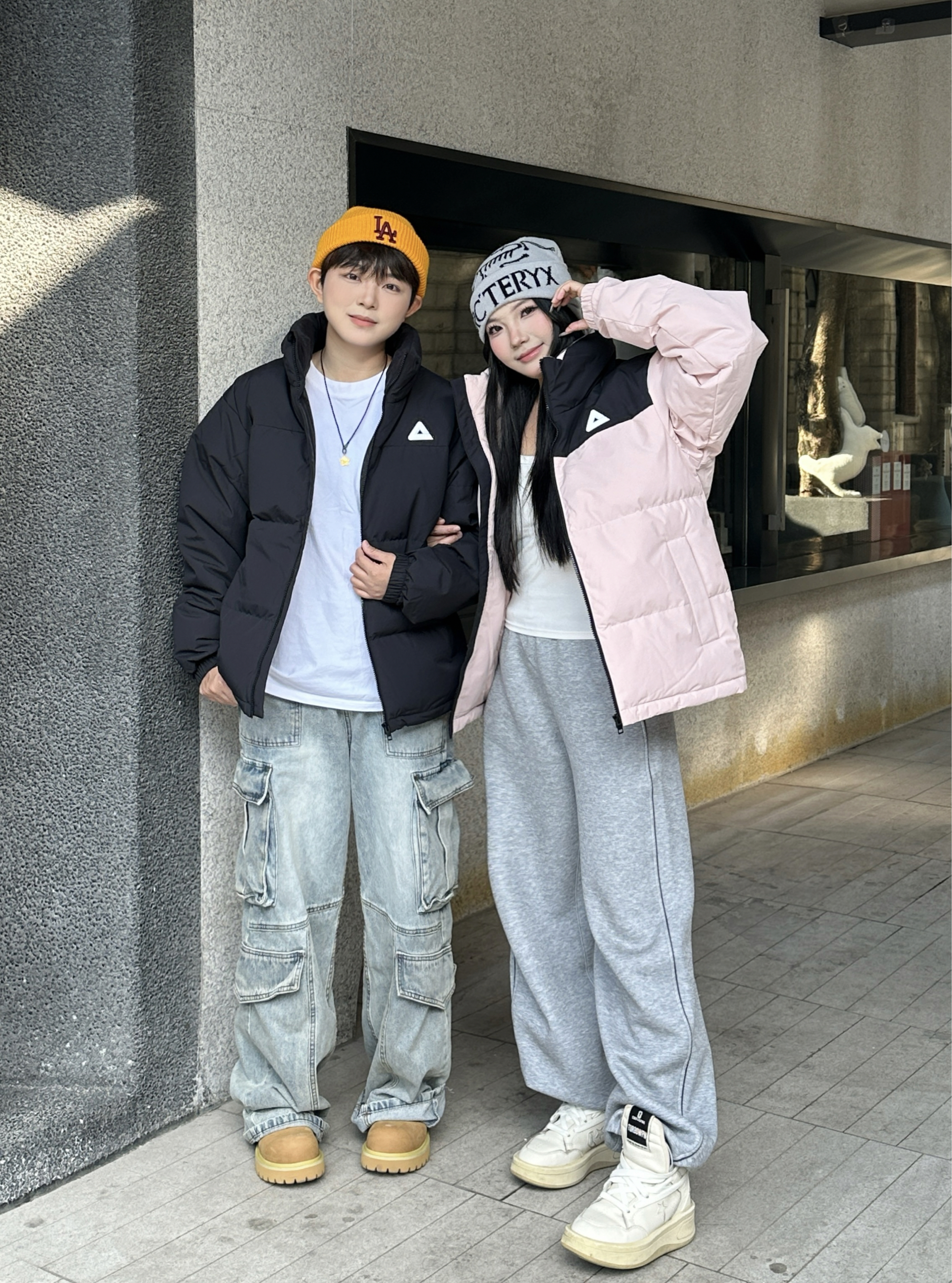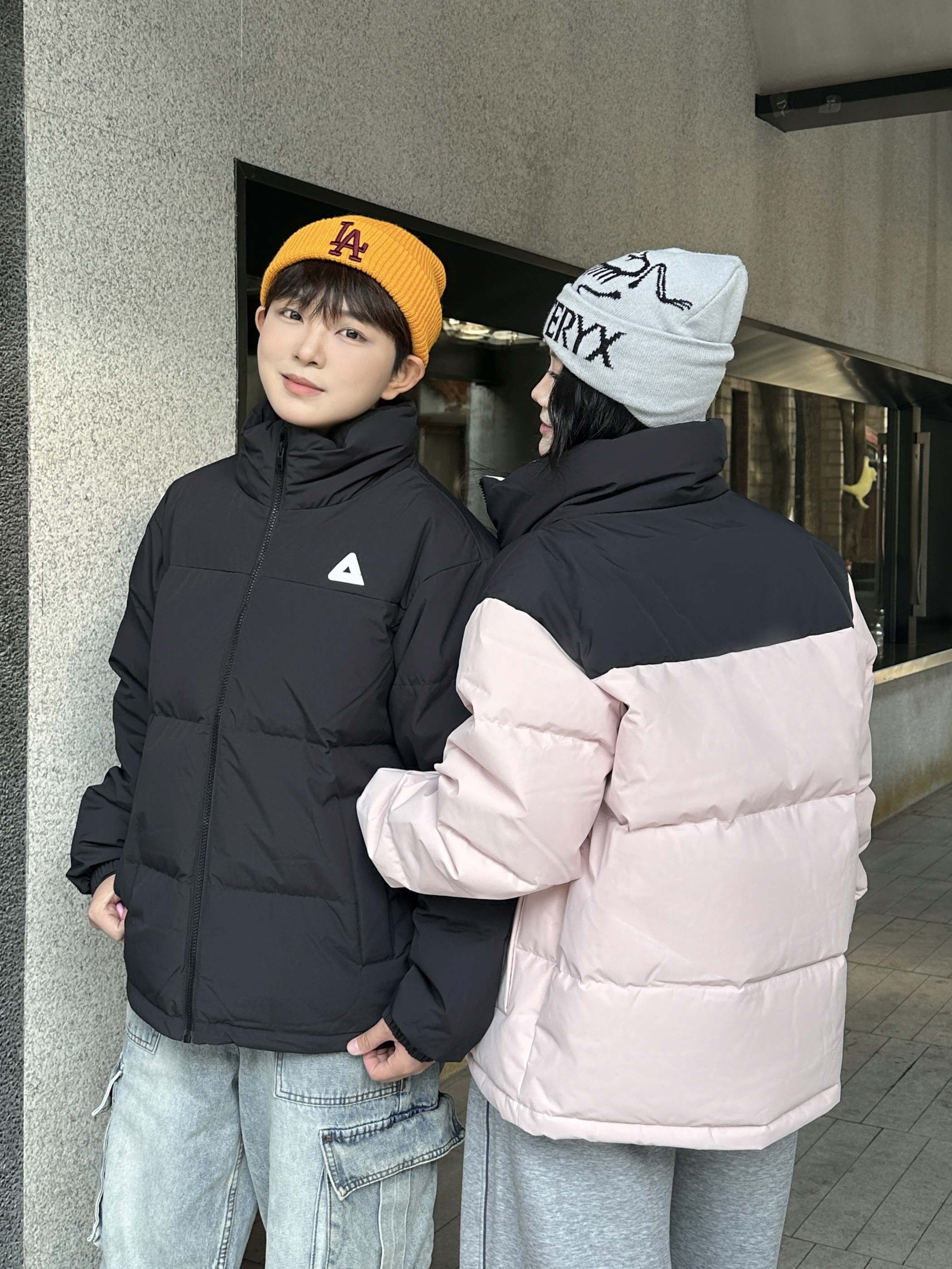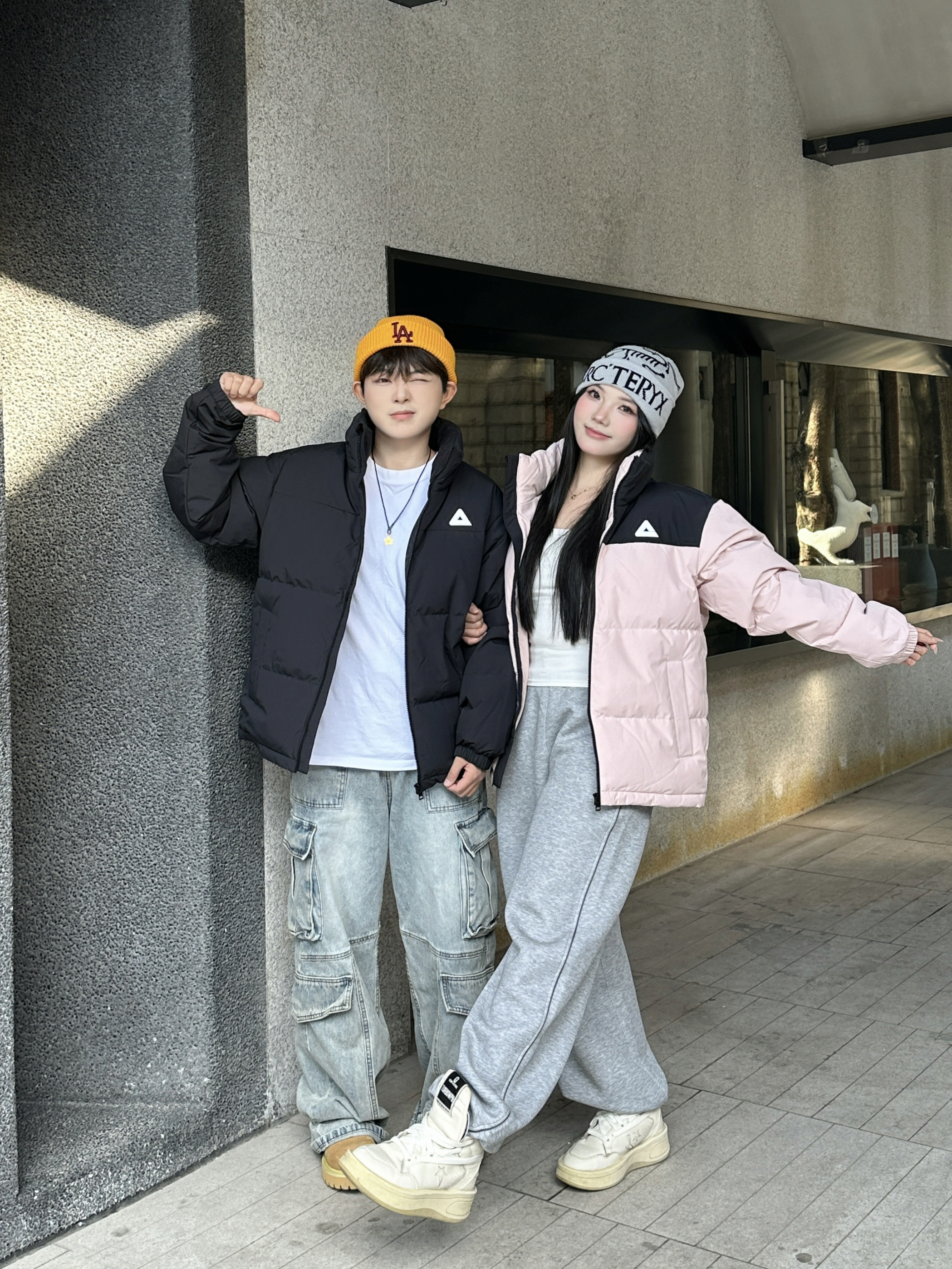 今年冬天的年度最佳情侣搭子穿搭直接被这一身锁死了!❄️ 黑+粉撞色羽绒服是我俩今年挖到的宝——男生穿黑款酷得刚好,女生穿粉款甜而不腻,连小标都暗戳戳呼应,暖乎乎还不臃肿~ 下装一整个“舒服到不想脱”:工装牛子能装零碎,灰卫裤软到裹腿,踩厚底鞋出门逛一天都不累👟 这一套是我们年度衣橱里的“懒人王炸组合”,从初冬穿到现在,出门随便一搭就是“不用费脑但超配”的氛围感~😎