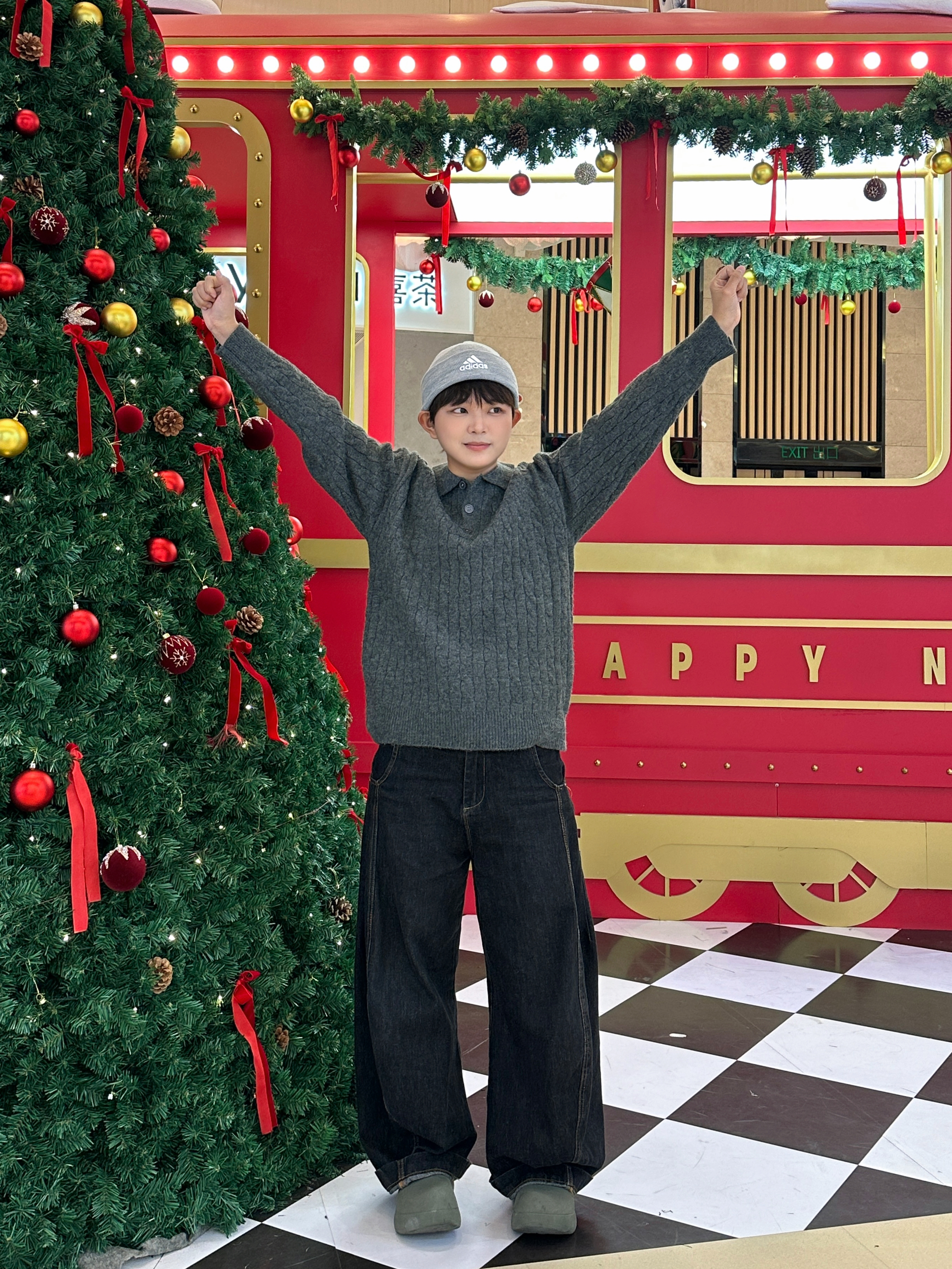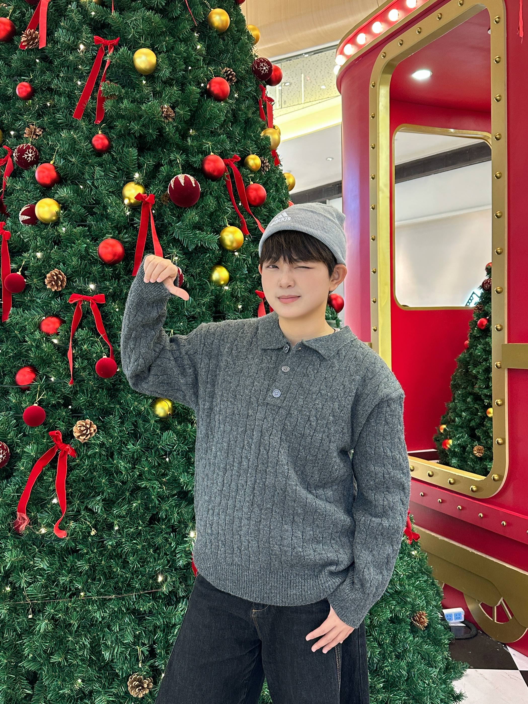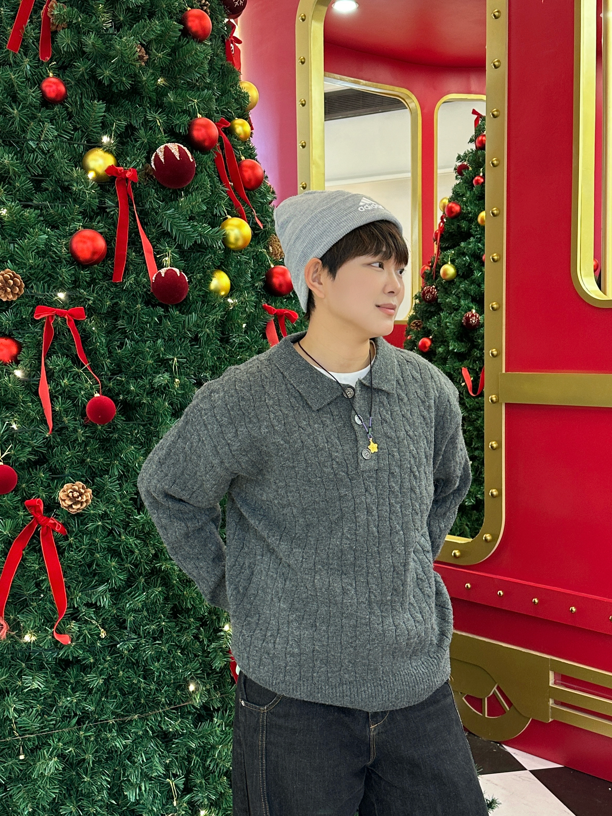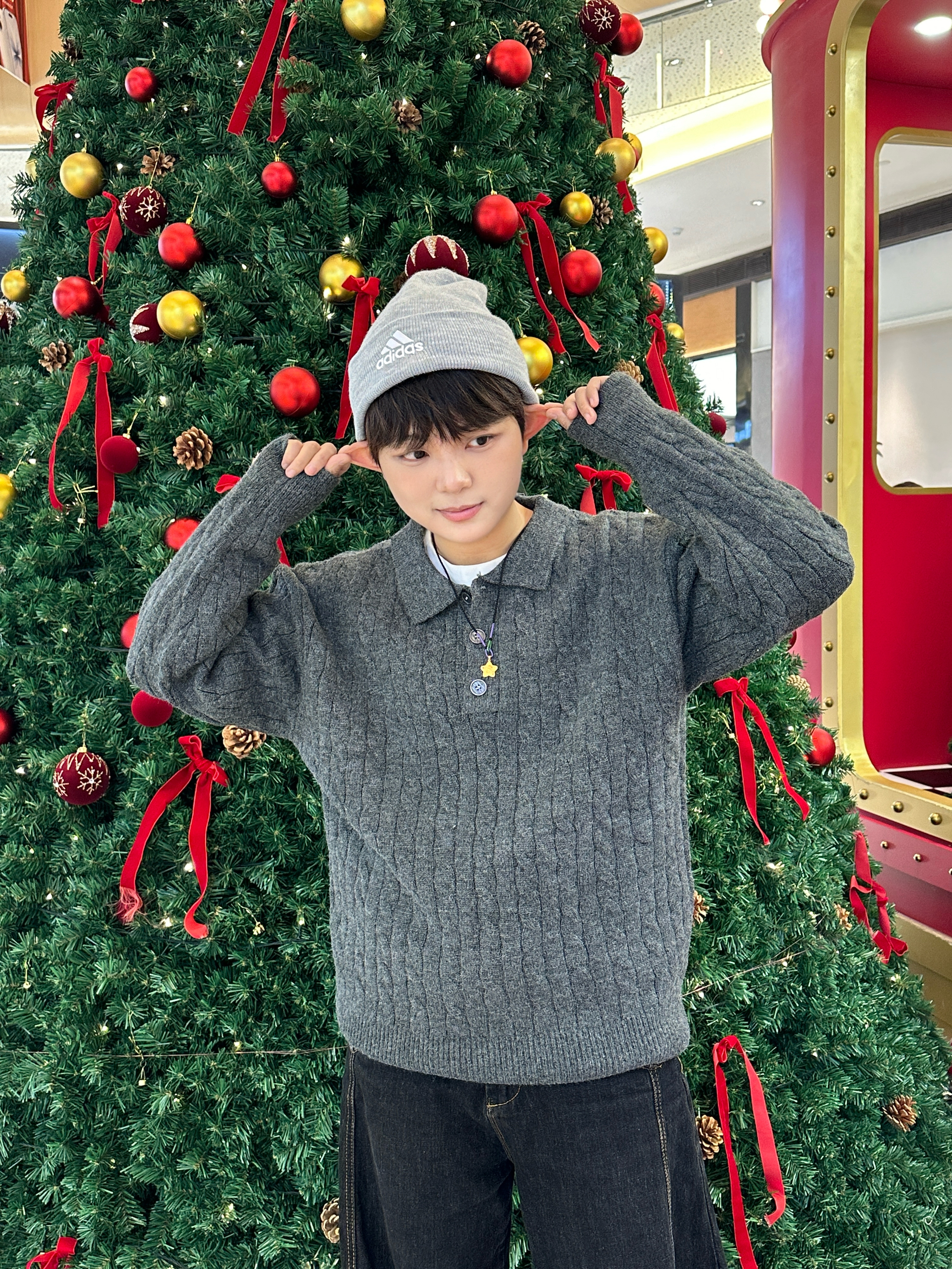 今年冬天的年度“暖糯感”穿搭直接被这一身锁死了!🎄 这件灰毛衣是我年度衣橱的“温柔担当”——坑条纹理软乎乎的,贴身穿暖到心坎里,翻领+纽扣设计随便搭都有松弛感~ 黑阔腿裤是我的年度舒适标配,松垮版型裹着超自在,配同色系帽子直接把冬日氛围感拉满☁️ 这一套是我今年翻牌最多的“不费力温柔搭子”,逛商场偶遇圣诞树,随手拍都像自带滤镜~