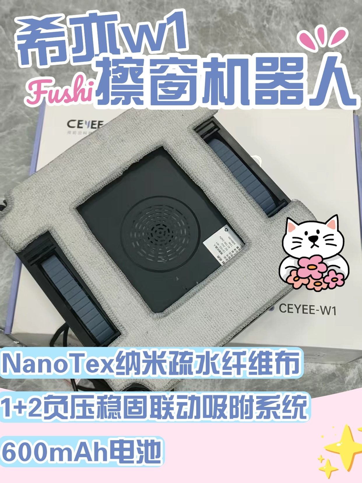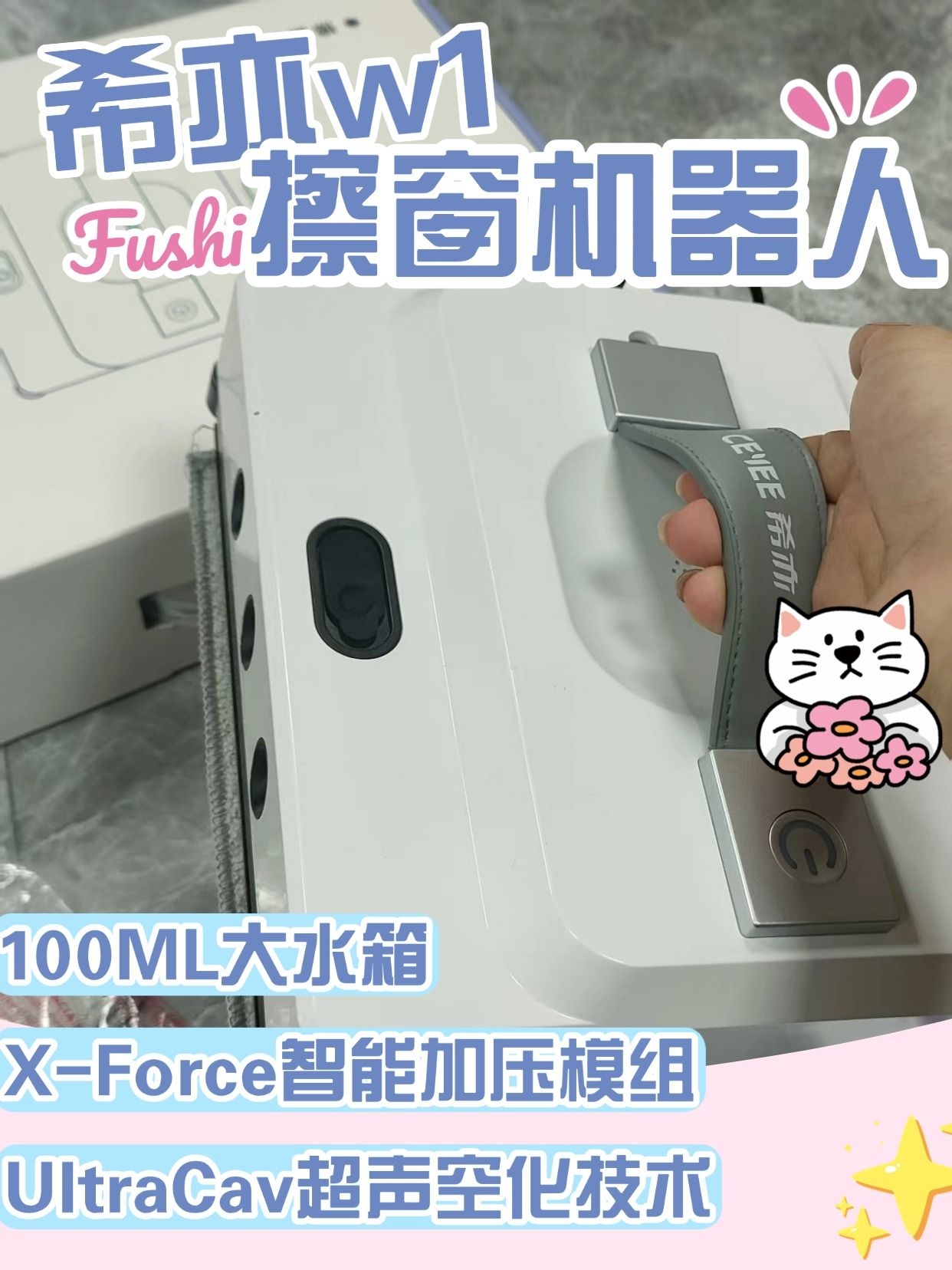 一款提高生活品质的清洁神器 家里窗户又小又多,还有飘窗、窄窗,传统擦窗工具根本施展不开,擦起来又费劲又擦不干净,一直想找个适配小户型的擦窗神器,直到遇到希亦 W1,简直是为小户型量身定做的! 它的机身小巧轻便,1.21kg 的重量,单手就能举着换窗户,窄窗、飘窗、卫生间小窗户都能轻松适配,不会因为窗户小就漏擦、卡壳。吸附力也超靠谱,就算是小户型的薄玻璃,吸得也牢牢的,移动起来灵活自如,不会磕碰到窗...