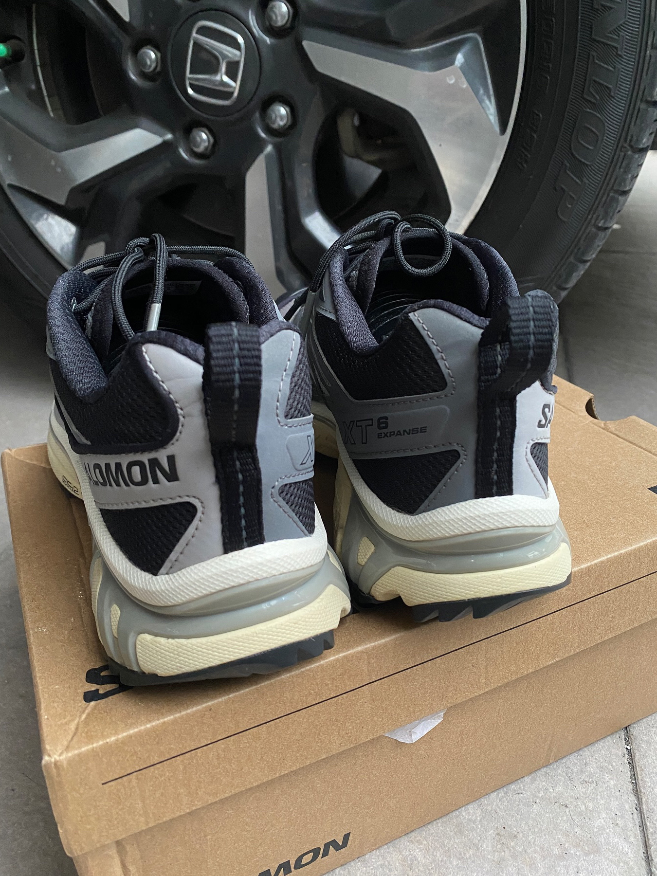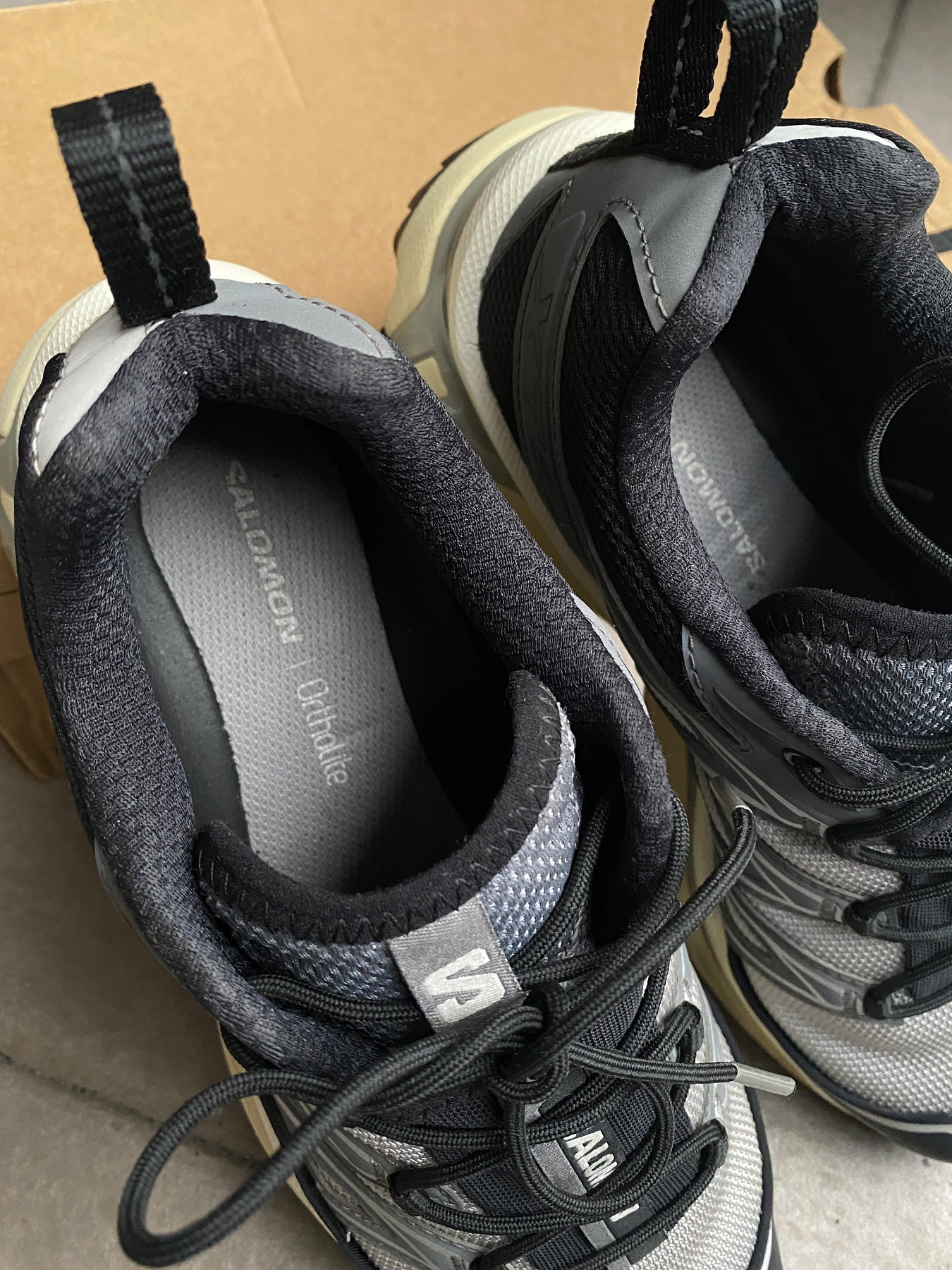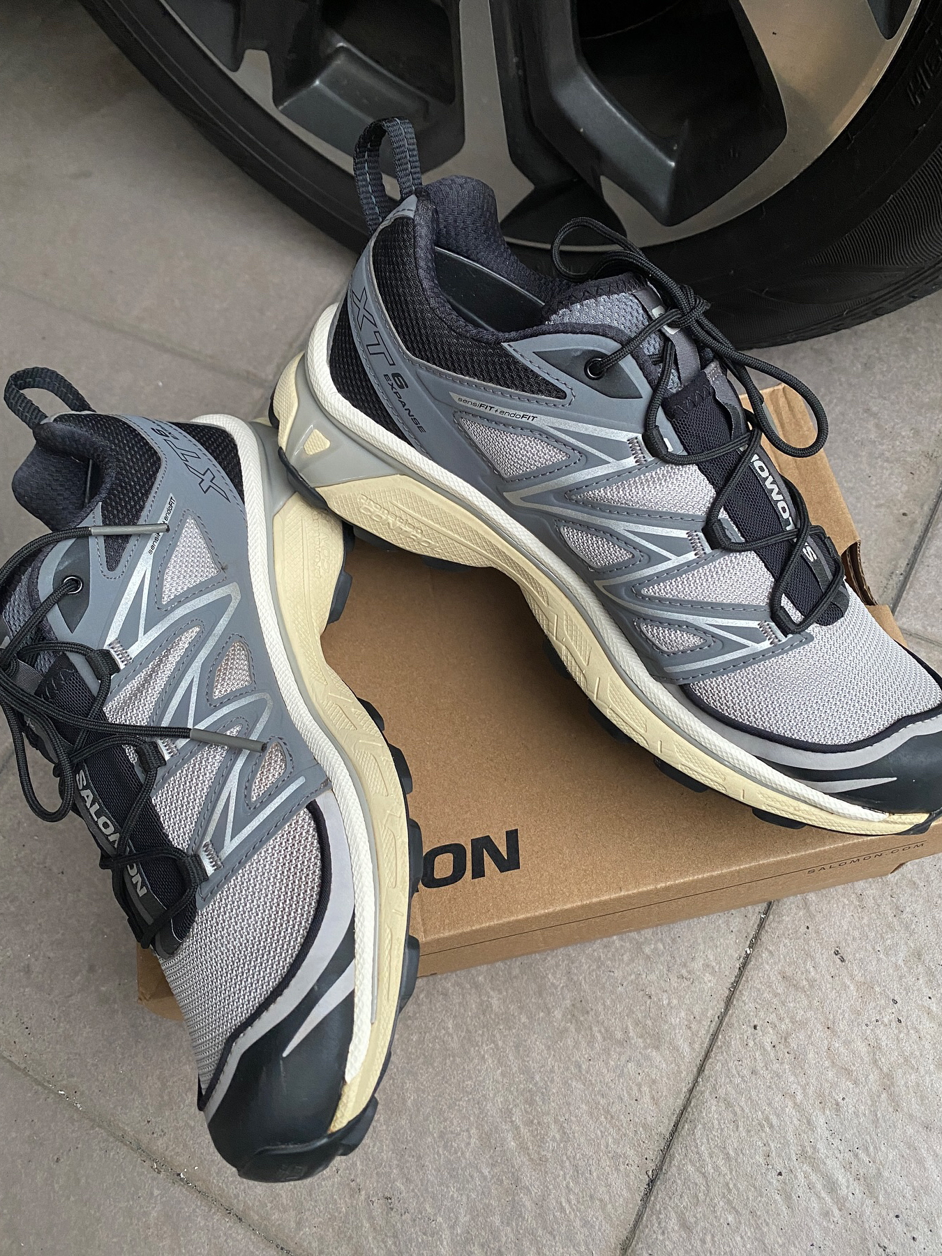 这双Salomon XT-6我穿了大半年 说它是‘万能鞋’真不夸张 第一次穿觉得鞋底硬得像板砖 但跑山路反而稳得住 脚踝不晃悠 后来才知道是它底盘那个什么ACS系统在发力 鞋带一拉就紧 不用弯腰系 遛狗赶地铁特省事 就是鞋头有点窄 宽脚兄弟得买大一码 夏天穿有点闷 秋冬配卫衣牛仔裤 机能风直接拉满 还被路人问过链接 要说缺点 溢价确实高 但穿了半年连鞋带都没松过——这鞋可以
