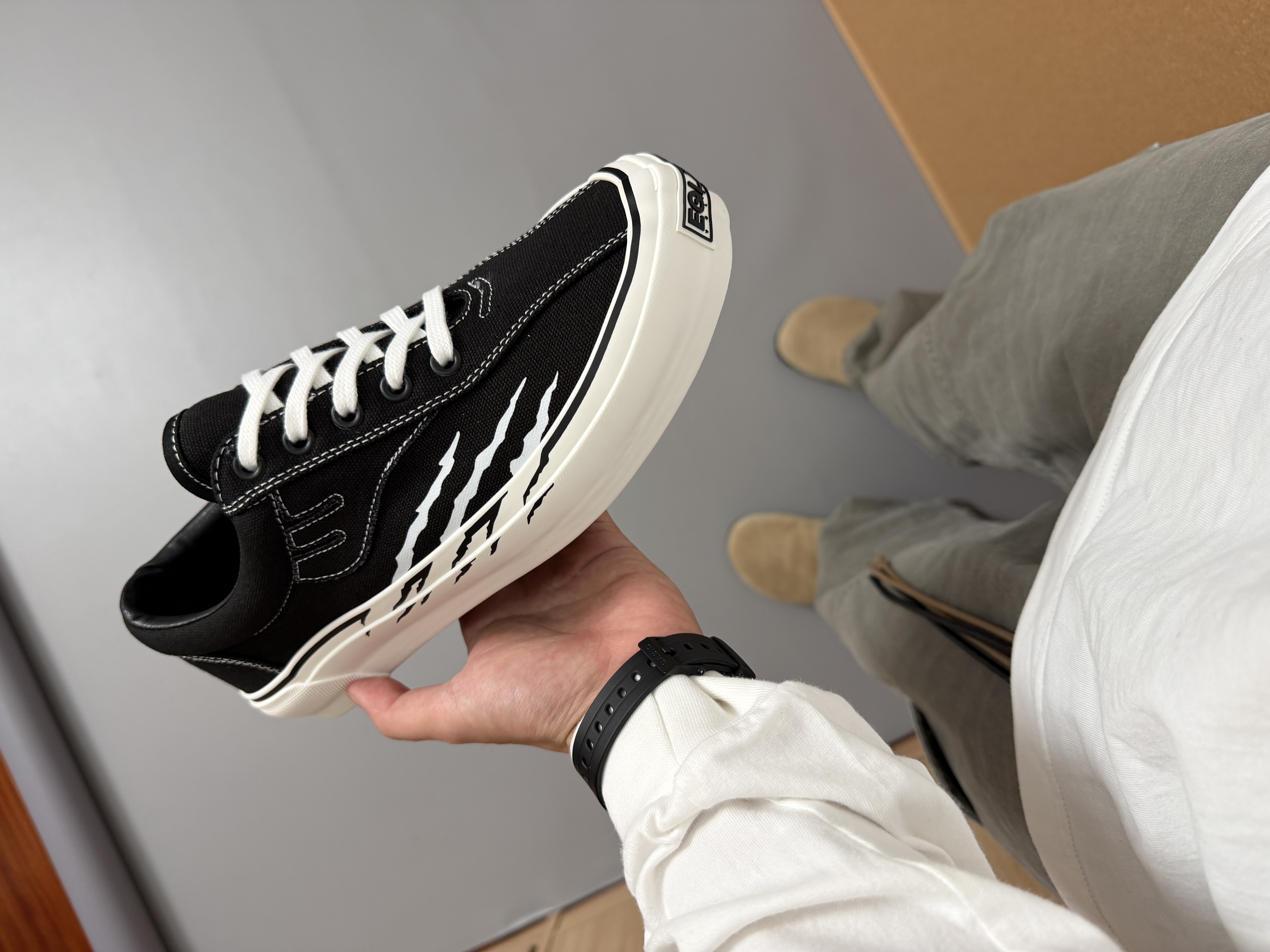 一双板鞋就拿捏秋冬氛围感!🔥 谁会拒绝经典黑白配带来的高级穿搭! ➡️第一眼是被这双联名抓痕给吸引! ✅穿过帆布的鞋面和硅胶中底,抓人眼球👀 ✅上脚舒适透气,这个冬季打算焊脚上了~ 尺码参考:170/120 穿着41 码正好的‼️ @App #板鞋拿捏秋冬氛围感 #新鞋零时差 #入秋新鞋零时差 #板鞋控DNA动了 #EQLZ板鞋