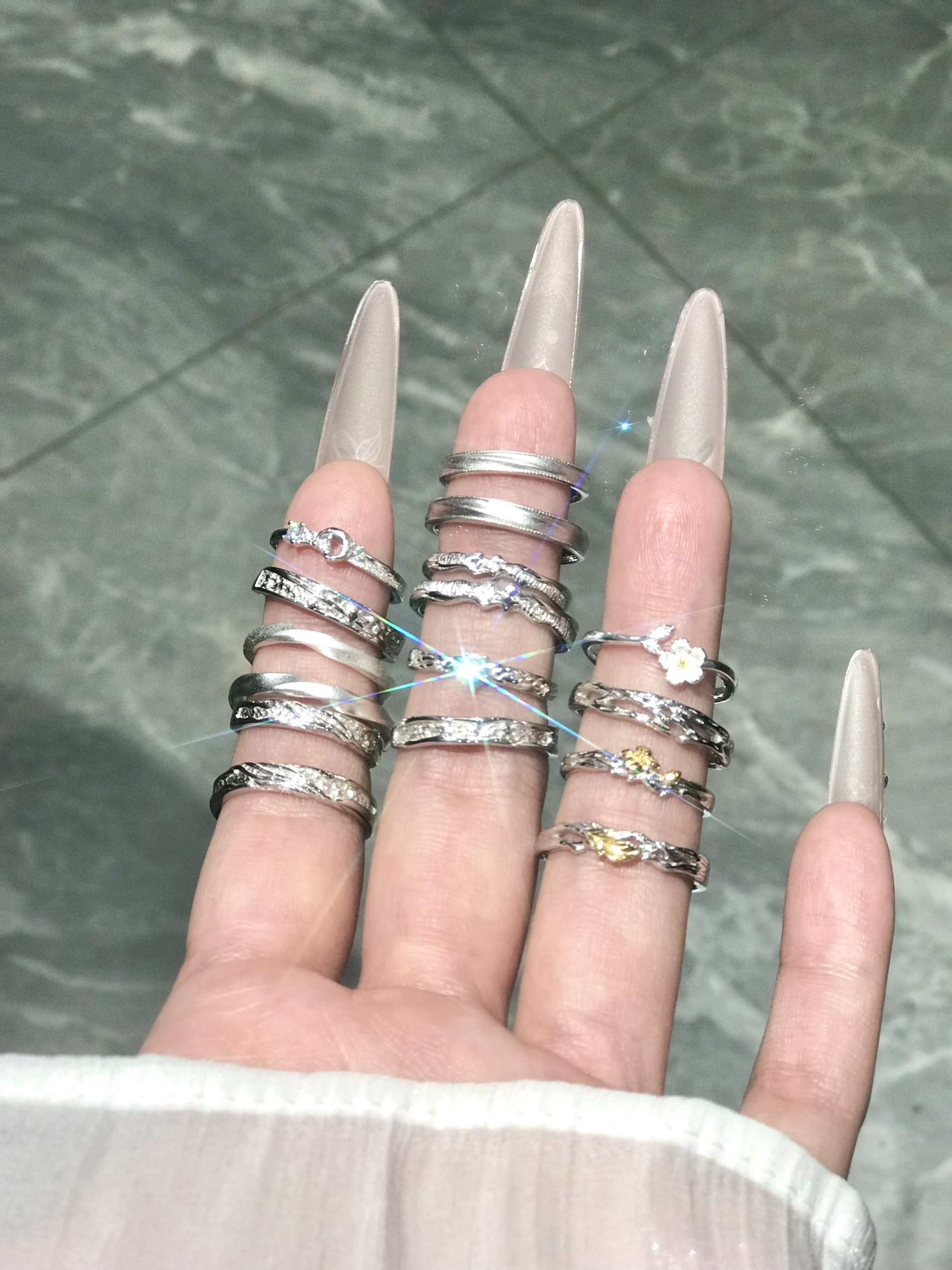 我真嘟拒绝不了piu亮的戒指耶.... 都是我选了hin久哒戒指 宝恋家哒 s999银 戴上去也不会过敏硌手 戒指还是活口的 不用担心戴不上 现在秋冬搭配毛衣不错哒 蛮吸睛😎