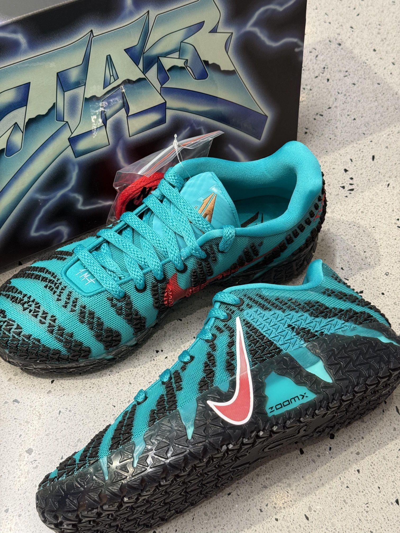 ✅ 核心亮点: 1️⃣ 复古配色灵感:湖水蓝+黑色撞色,致敬2000年代孟菲斯灰熊队经典球衣 2️⃣ 实战性能升级: · 轻质网眼鞋面+立体橡胶颗粒,透气与支撑兼具 · 全掌ZoomX泡棉,急停变向回弹反馈明显 · 爪痕外底纹路,内外场抓地力稳如磐石 3️⃣ 专属细节:鞋舌莫兰特Logo,揭幕战同款身份认证 👉 穿搭推荐: • 配灰熊复古球衣+运动短裤:球场焦点 • 搭工装裤+...