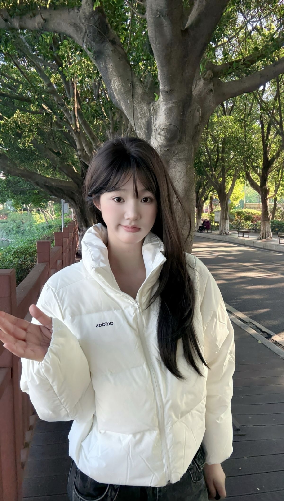 今日上身阿迪达斯羽绒服,上身很轻便,保暖却不厚重。短款版型巨显高,奶白色很温柔好搭配,配牛仔裤、小裙子都很搭,日常出街随手一穿就很有活力,冬天的甜酷感被它拿捏住了~