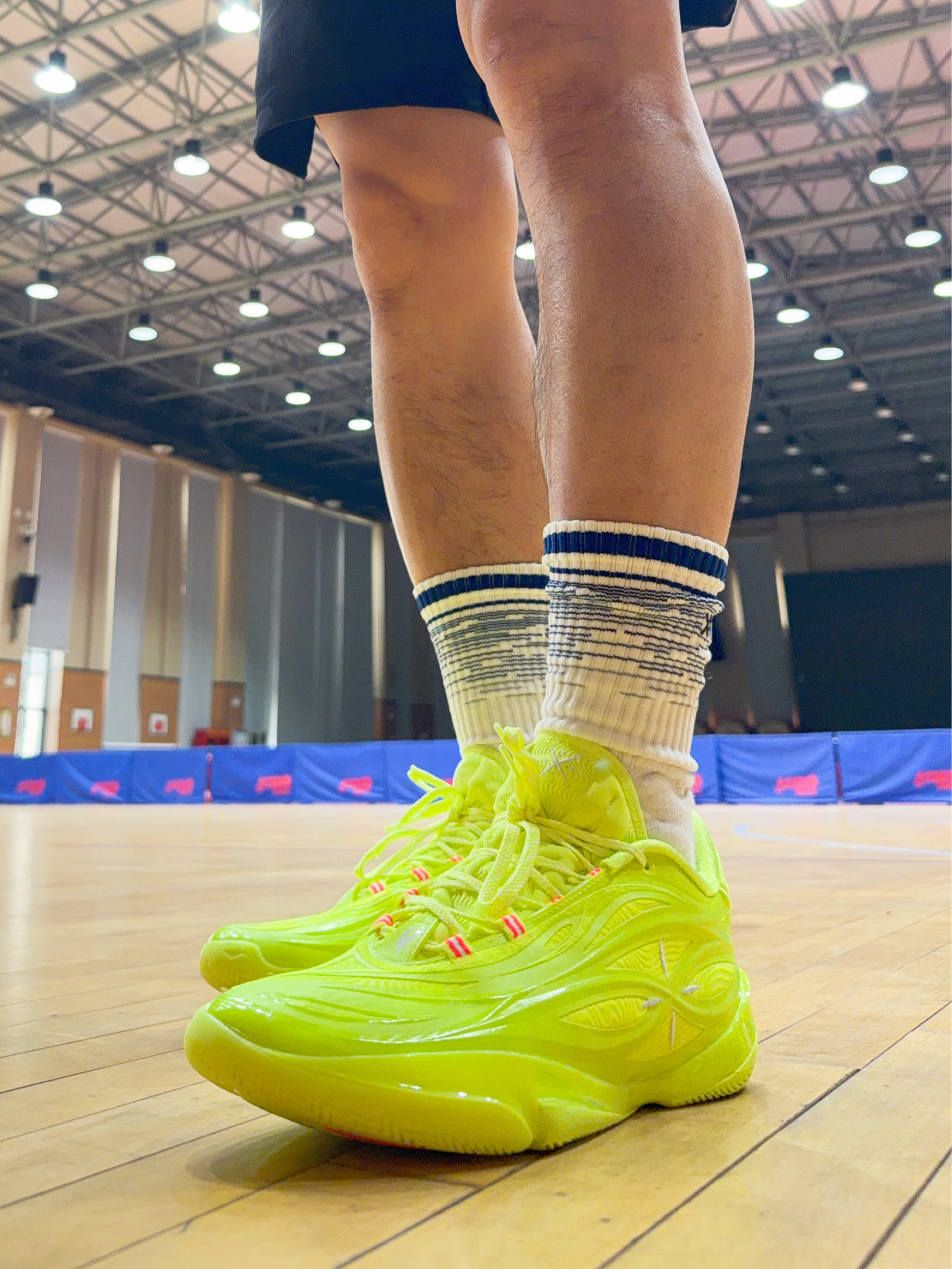 最近特别喜欢荧光色的球鞋 比如这双808五代Ultra V2的荧光色 颜值很棒 相比于普通版本鞋面也更加丰富 最近兄弟们入手了哪些帅气球鞋❓这双球鞋脚感非常软 不是太适合我这种喜欢突破蹬地第一步反馈的球员 更加适合需要软弹缓震的球员 还有❗️一定要去试穿 这个球鞋偏大 像我一样 穿帅气球鞋 打帅气篮球🏀兄弟们❗️