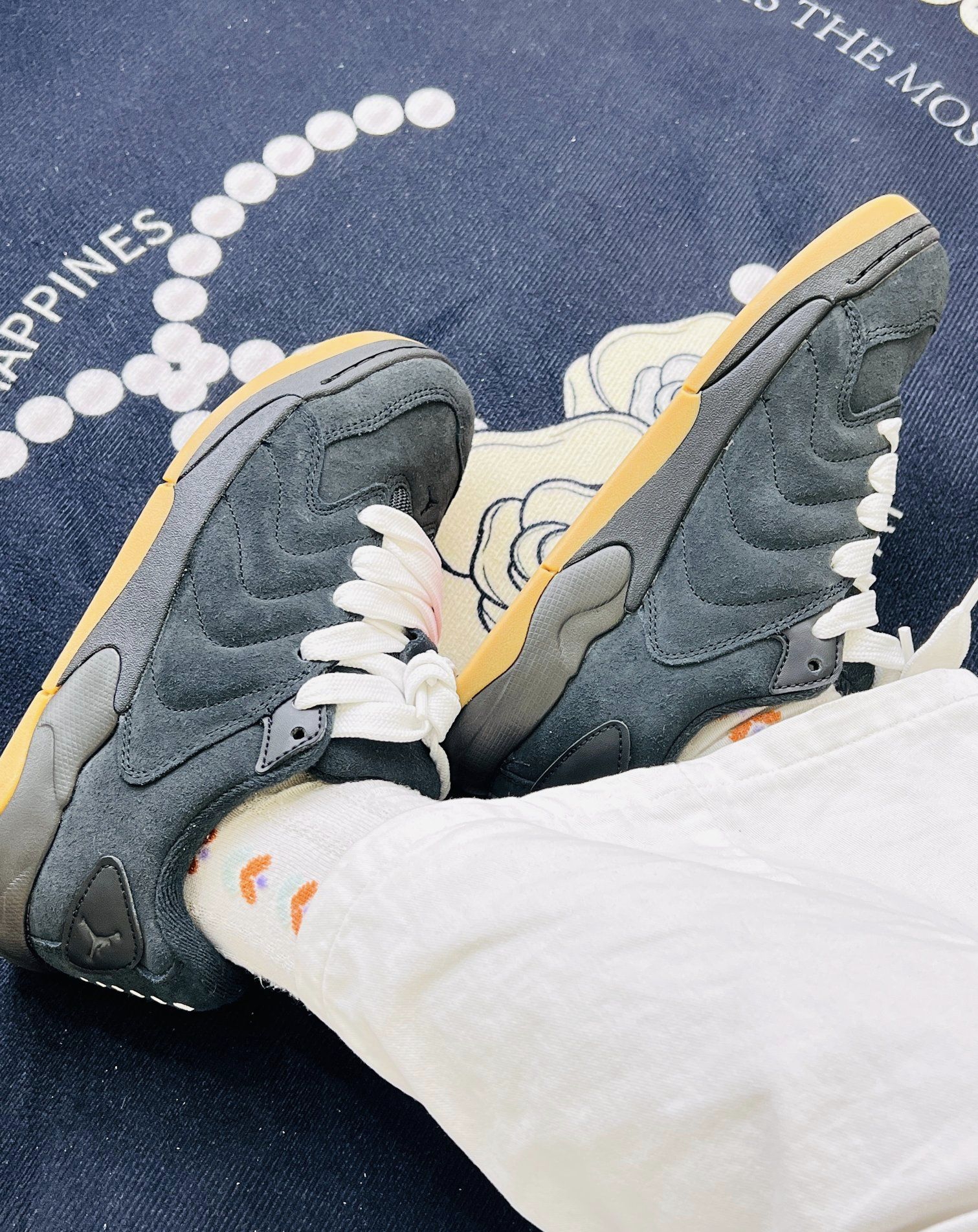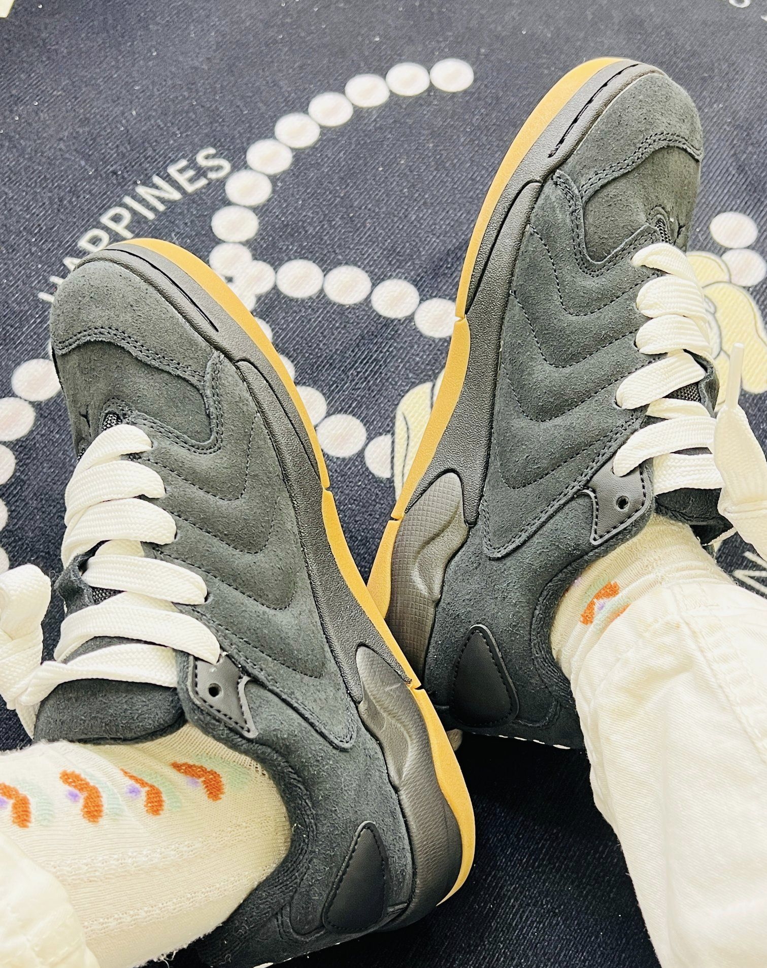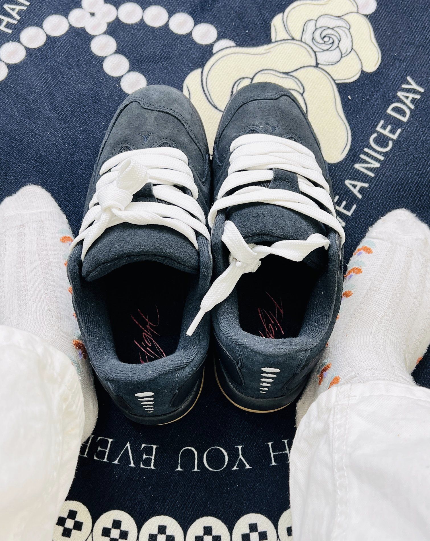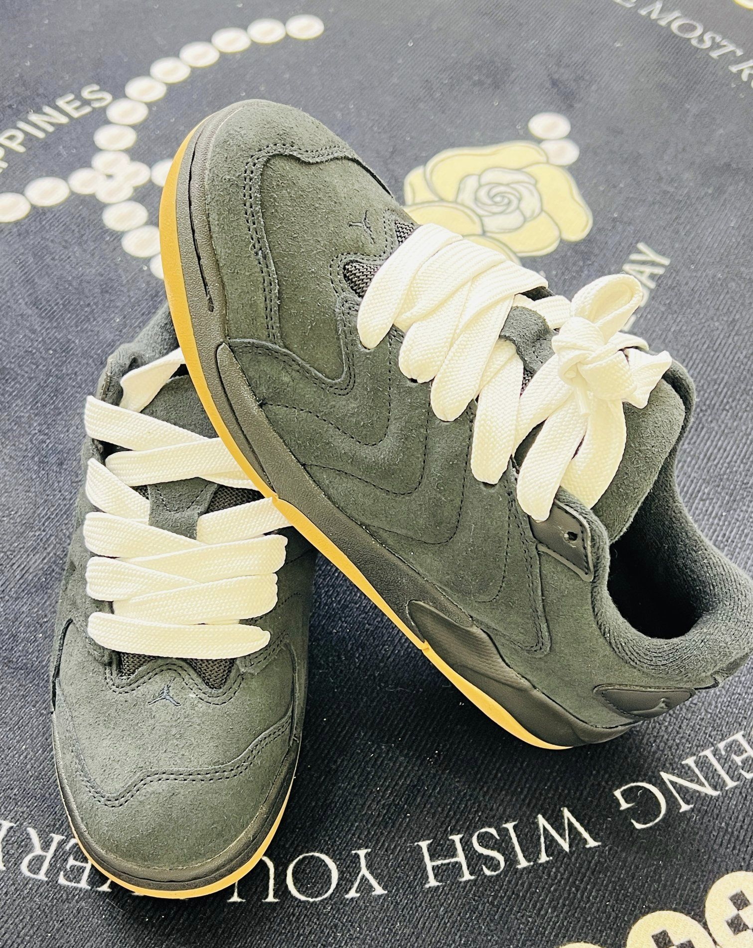 今日份的快乐,是这双灰调+生胶底给的,软乎乎的绒面和奶白鞋带,踩在地毯上都觉得脚步轻了半分。