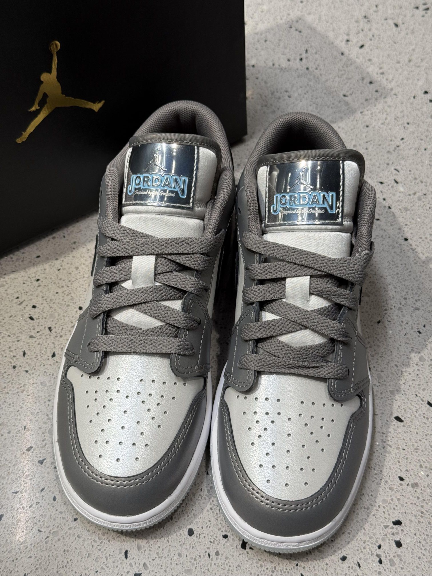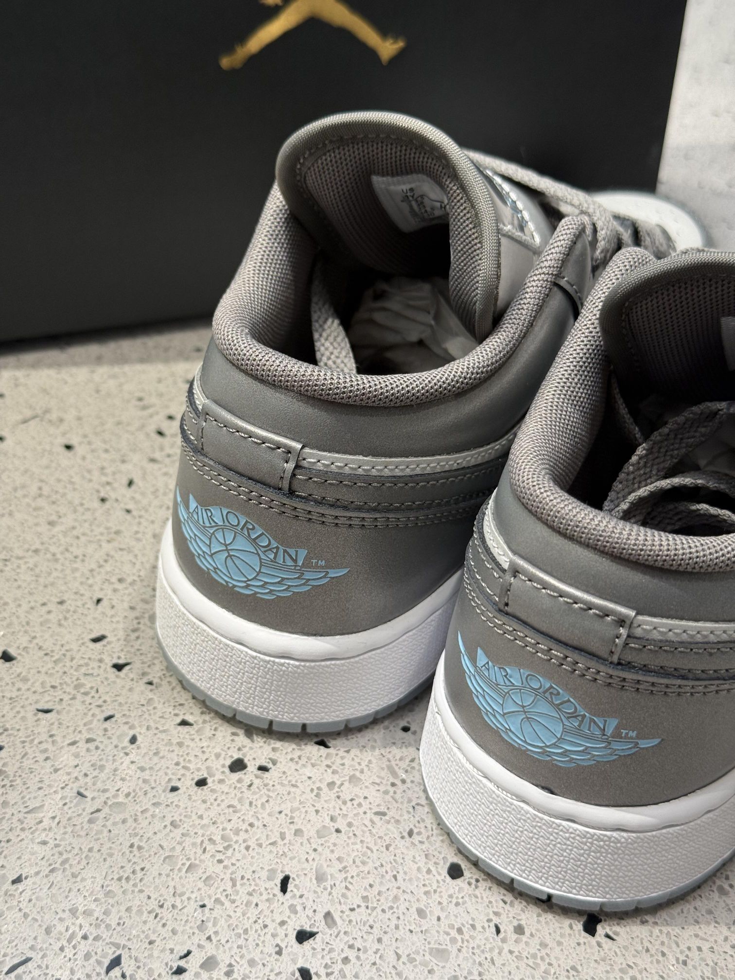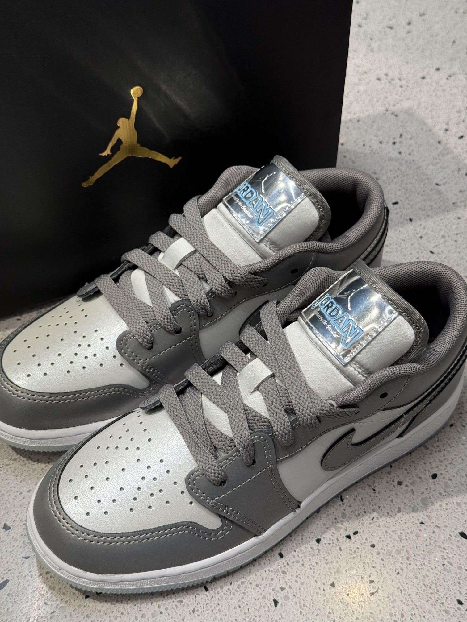 ✅ 核心亮点: 1️⃣ 高级灰配色:深浅灰色皮革拼接,低调中彰显质感 2️⃣ 细节品质: · 优质头层牛皮鞋面,柔软耐穿 · 透明飞人Logo鞋舌+金属后跟标,精致不浮夸 · 透气孔设计,提升穿着舒适度 3️⃣ 实用设计: · 耐磨橡胶外底,抓地力强 · 低帮款式,四季皆宜 👉 穿搭推荐: • 搭配黑色束脚裤+连帽卫衣:街头潮人风 • 搭配卡其休闲裤+衬衫:简约商务...
