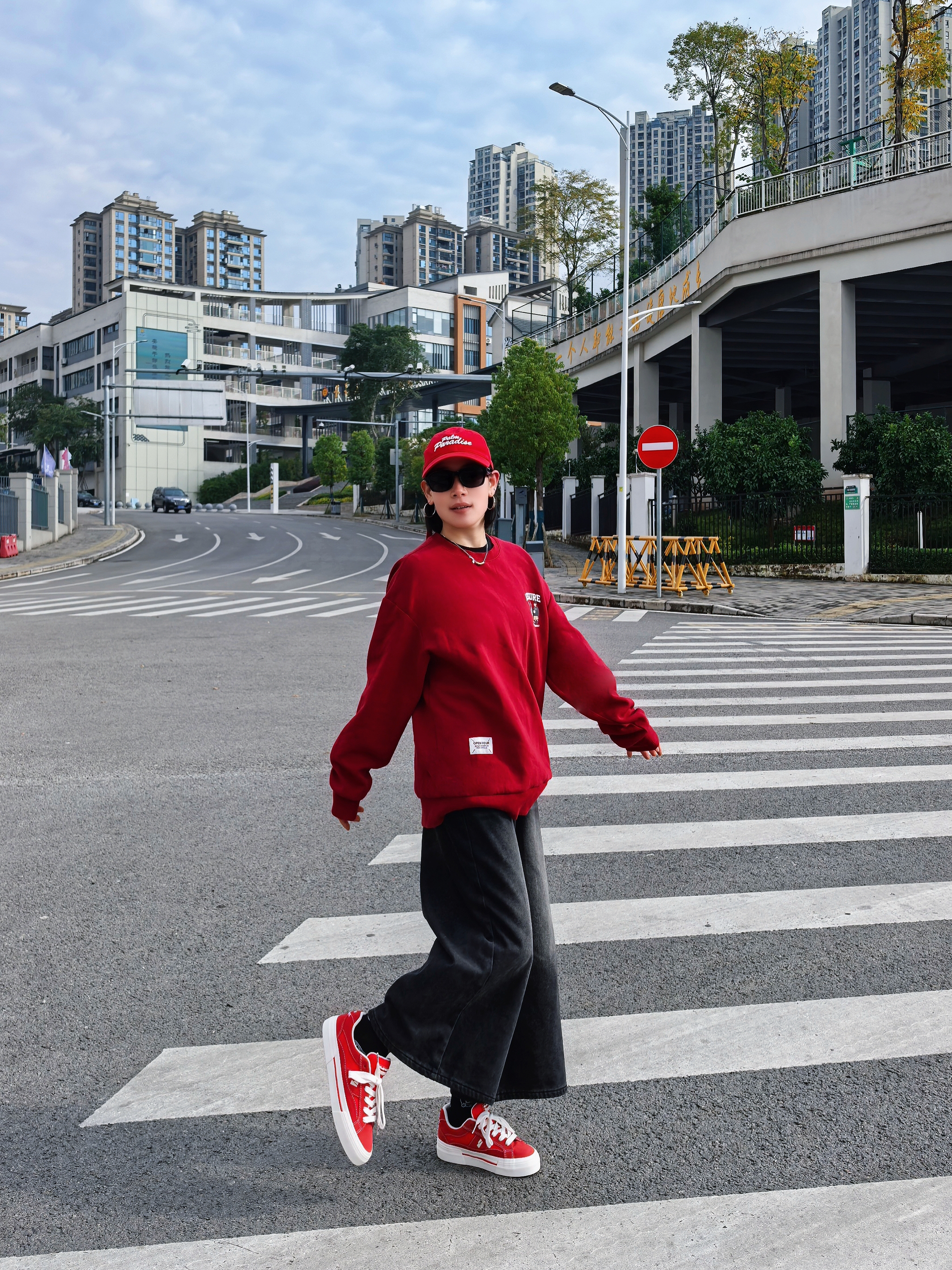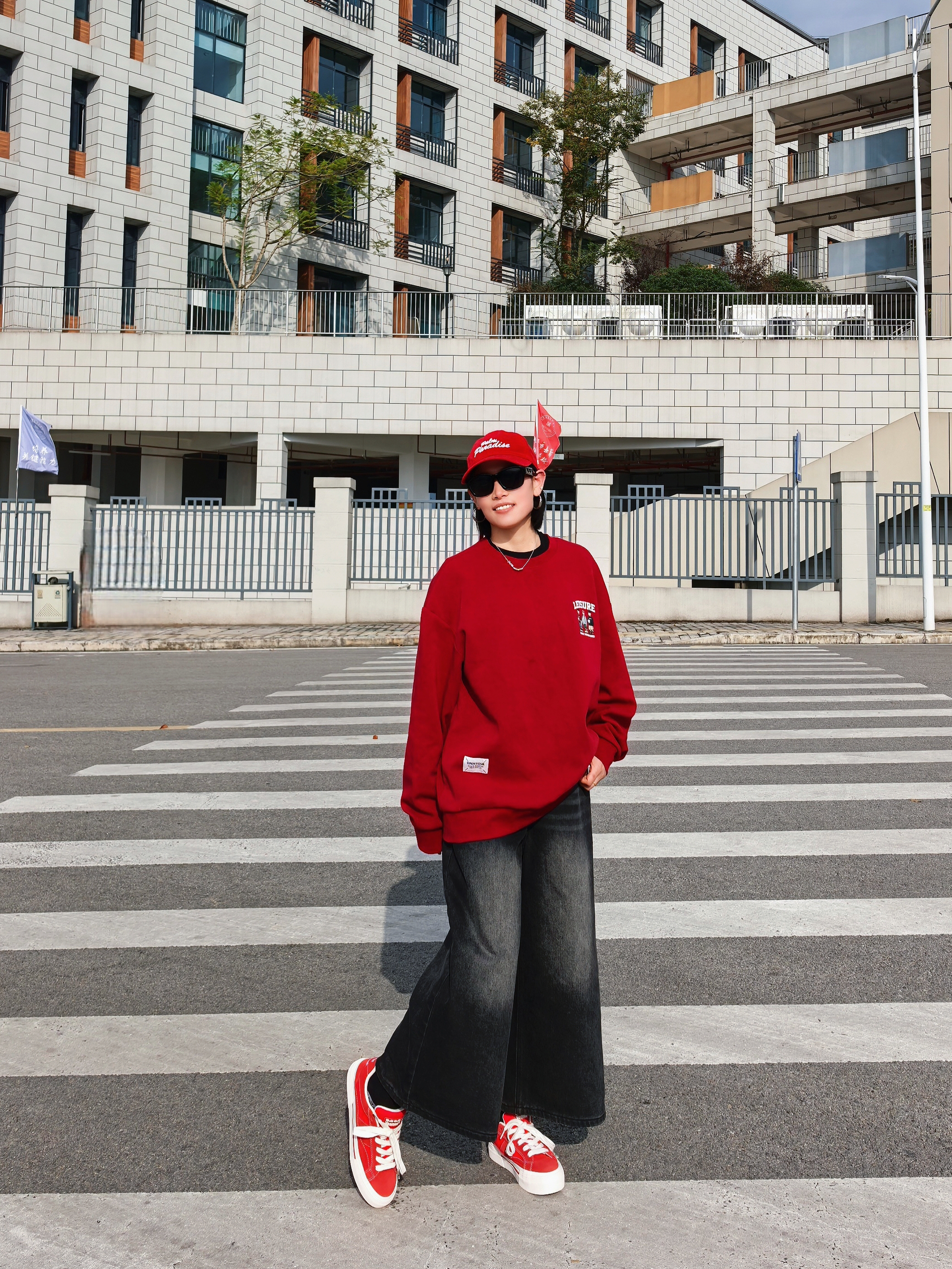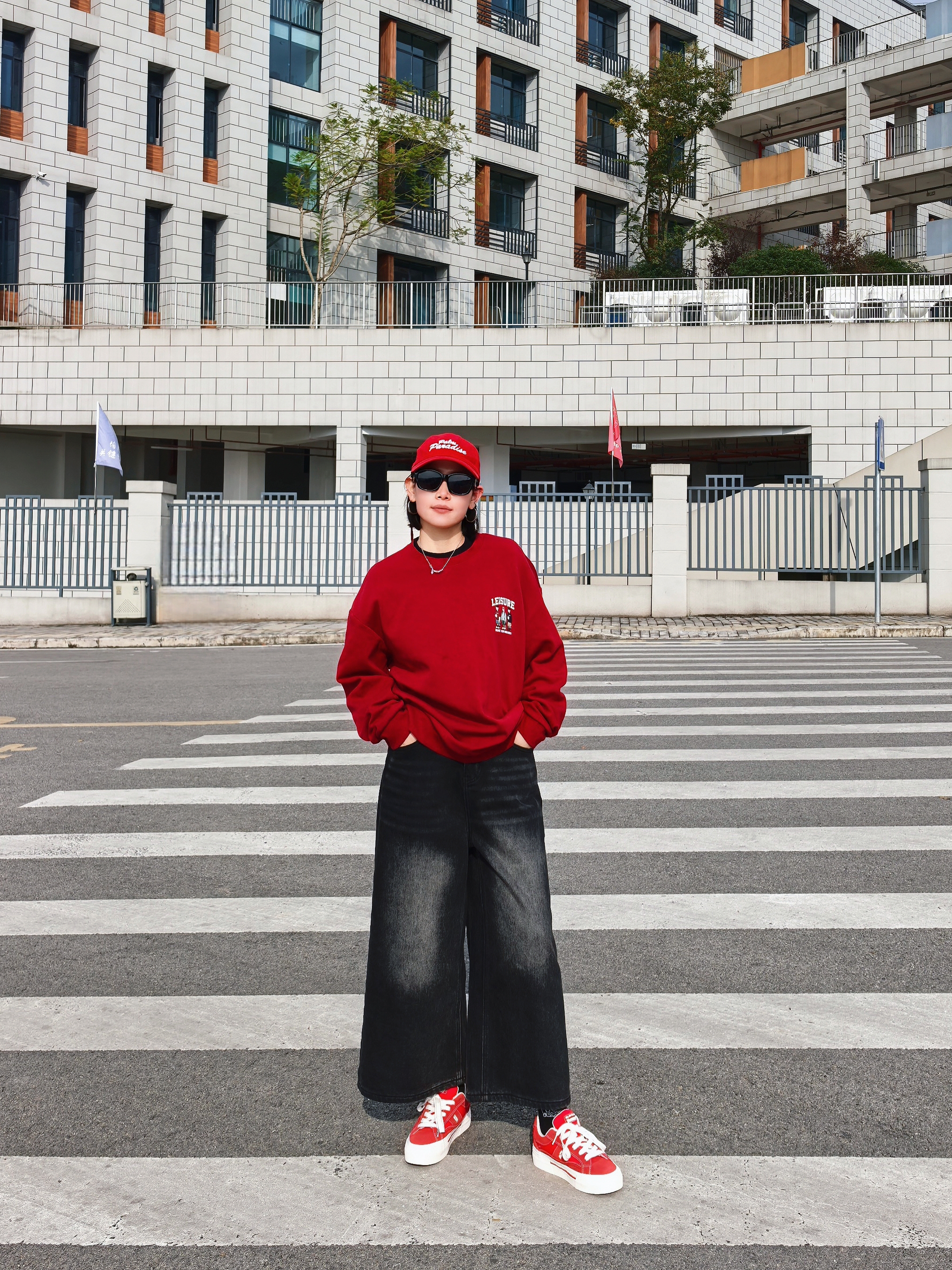 谁懂啊家人们~一身红黑look直接把街头氛围感拉满💥 红白厚底板鞋:复古运动风戳中少女心!厚底悄悄增高,踩屎感脚感暴走一万步也不累👟 整套搭起来,从早秋街头到周末探店,怎么拍都出片📸 想要一键解锁「懒人潮酷」的宝子,这套配色+单品组合闭眼抄!