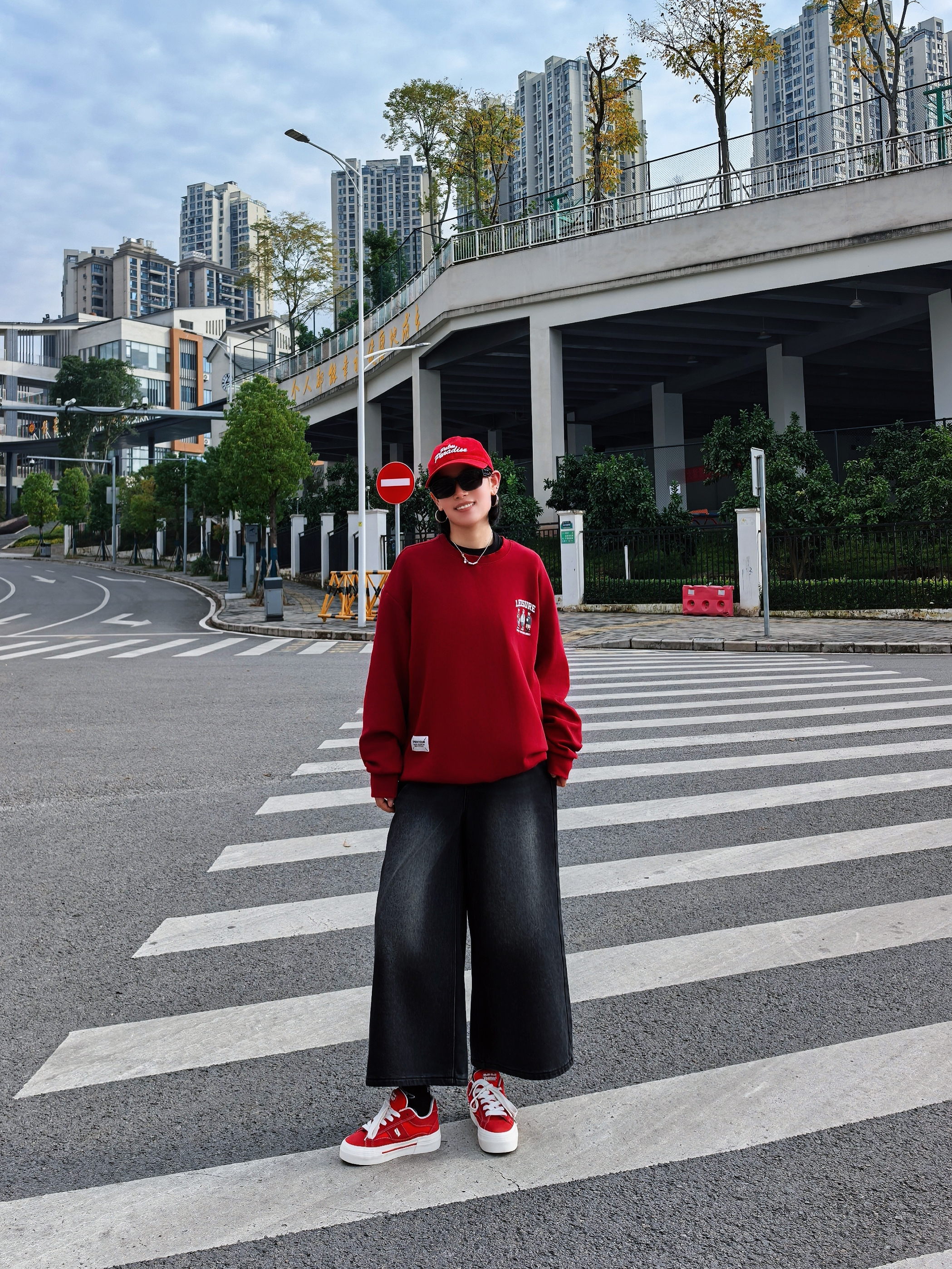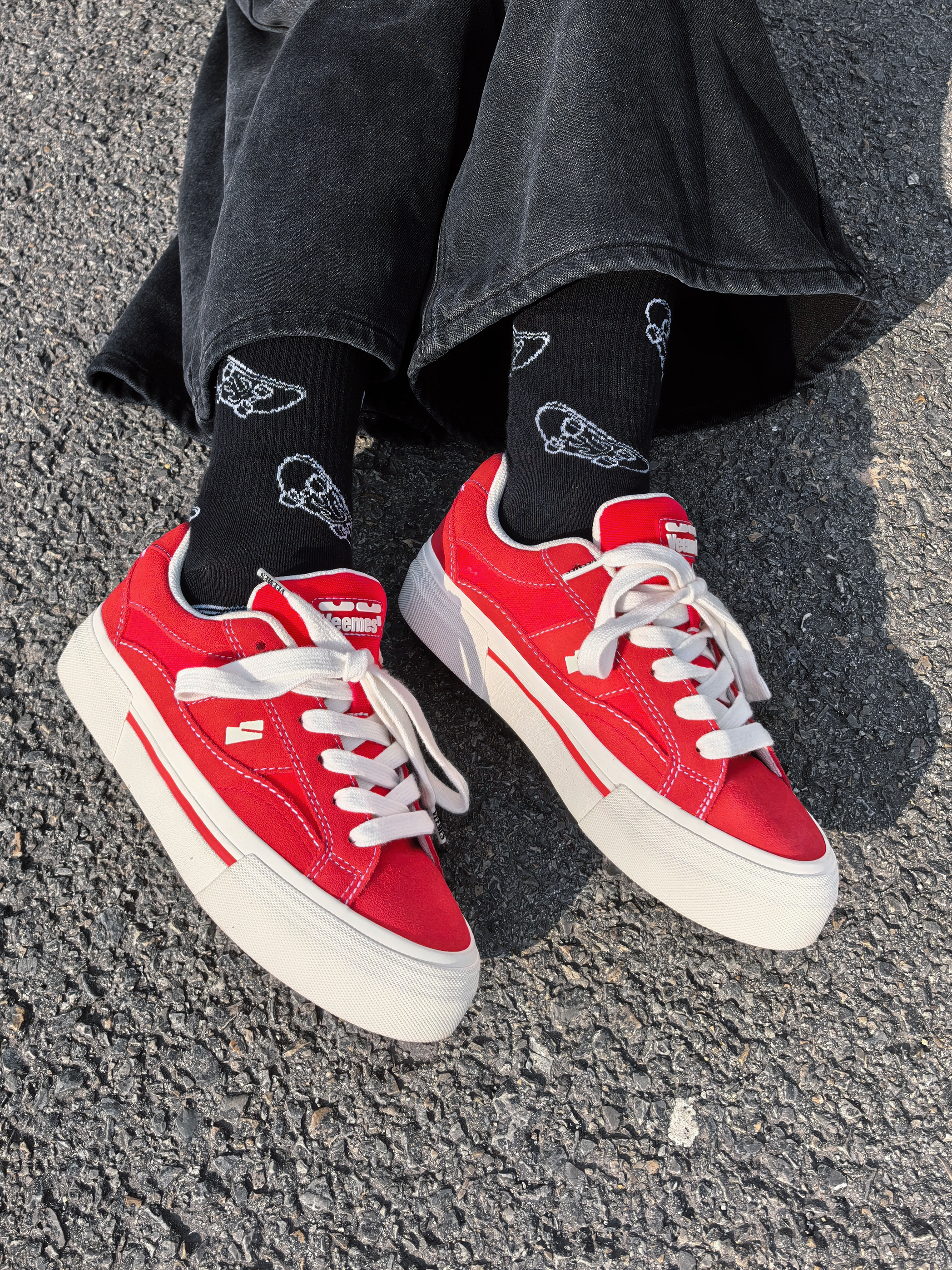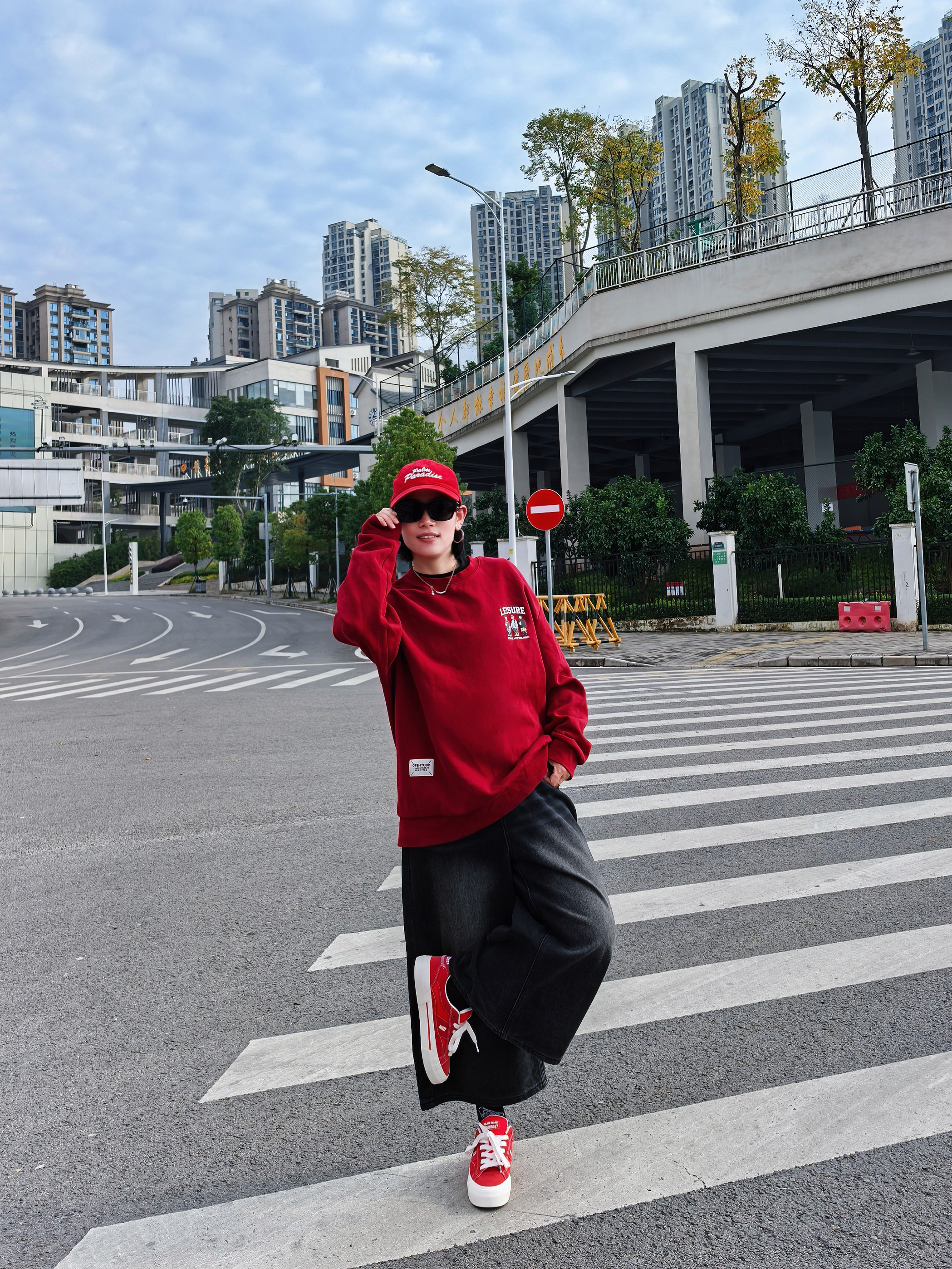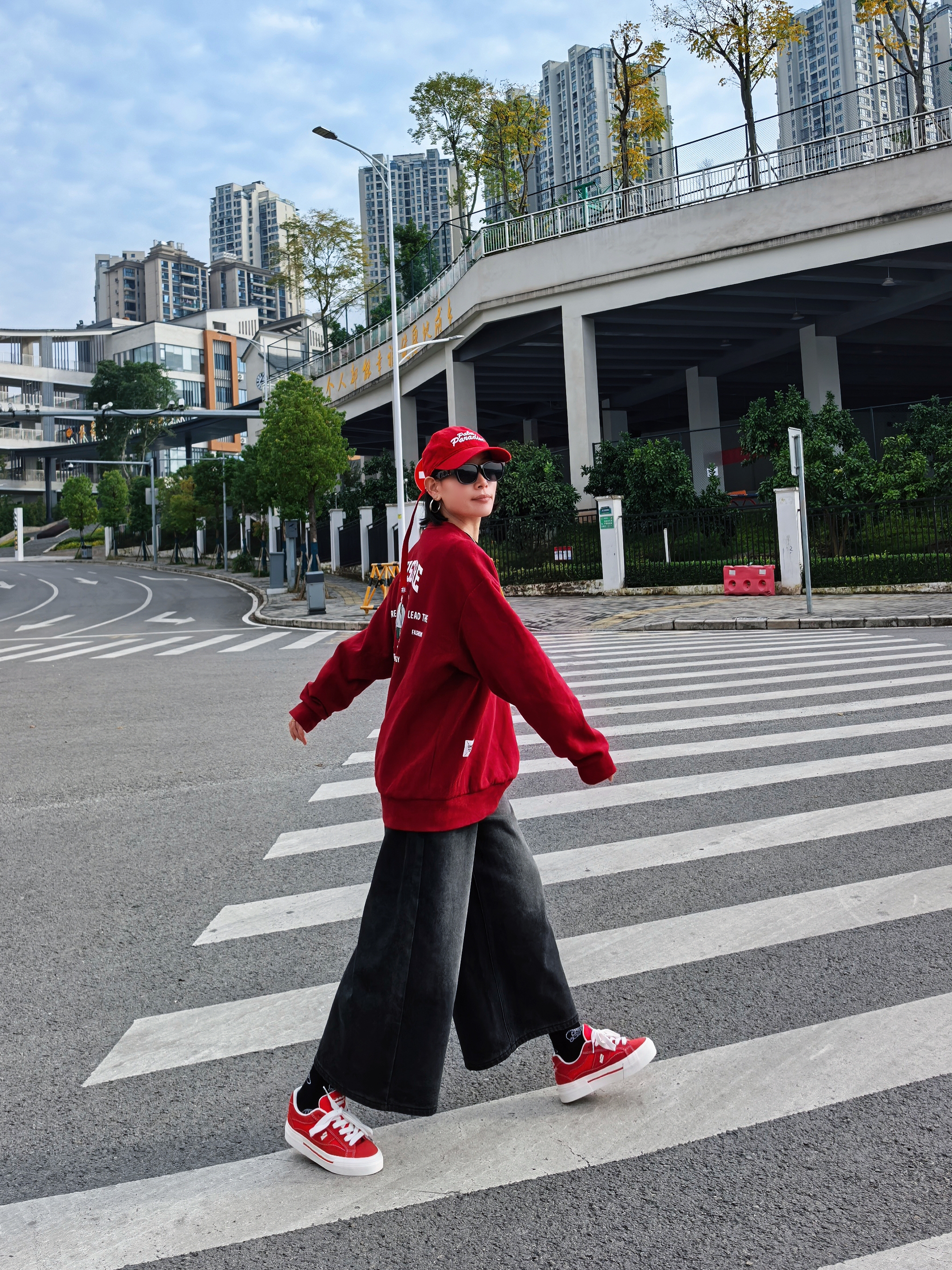 谁懂啊家人们~一身红黑look直接把街头氛围感拉满💥 红白厚底板鞋:复古运动风戳中少女心!厚底悄悄增高,踩屎感脚感暴走一万步也不累👟 整套搭起来,从早秋街头到周末探店,怎么拍都出片📸 想要一键解锁「懒人潮酷」的宝子,这套配色+单品组合闭眼抄!