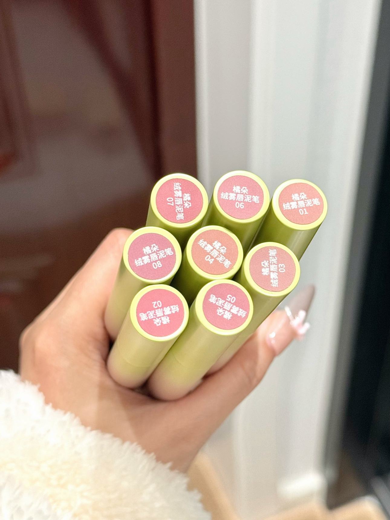 真的又想狠狠夸朵子了 这次滴新品是按压式唇泥 没想到会这么丝滑~ 用多少按多少 干净又不会浪费 重点 每只颜色都美出特色! 每个色系氛围感都拿捏住了 是日常随便涂都好看的颜色哇