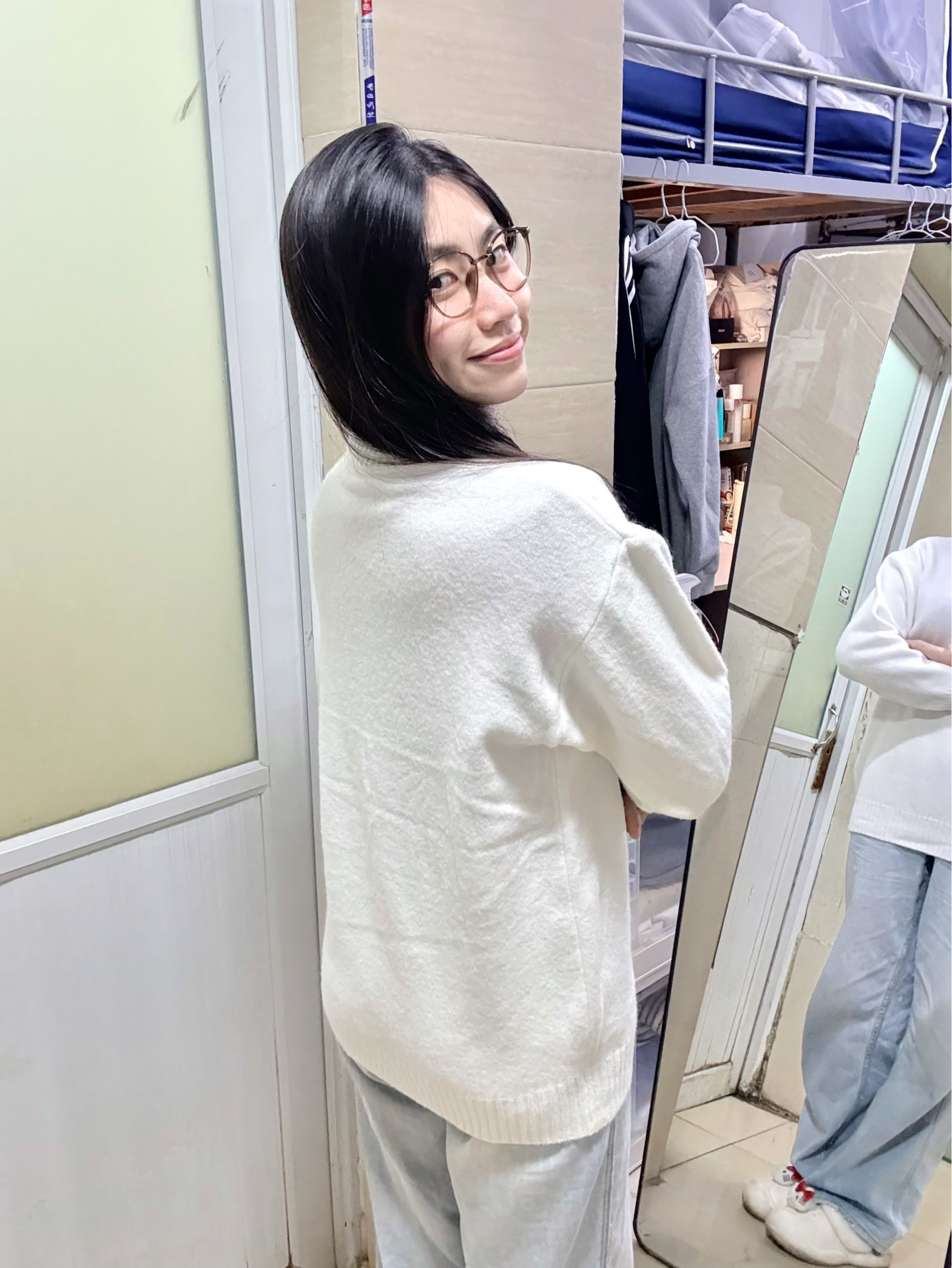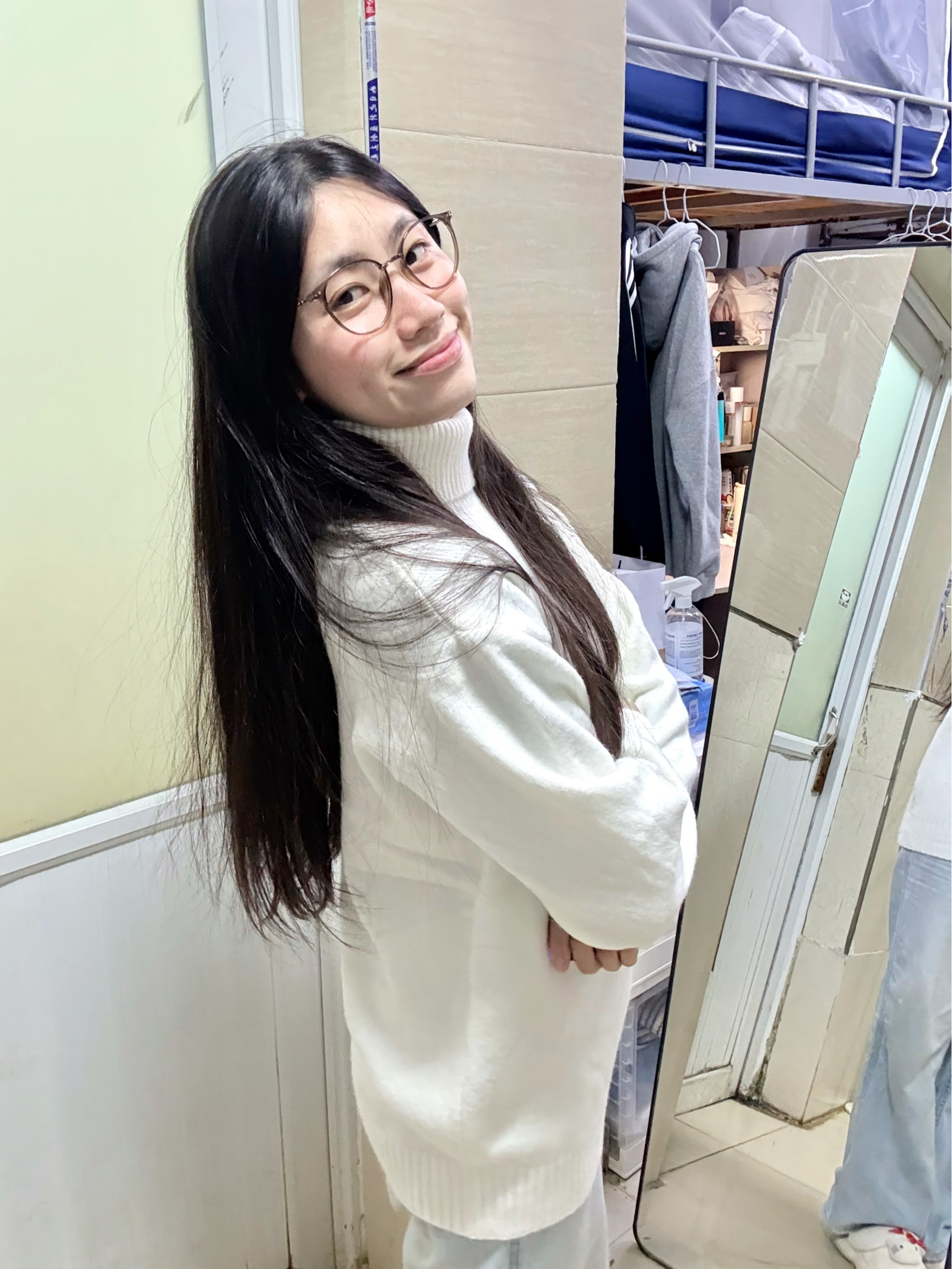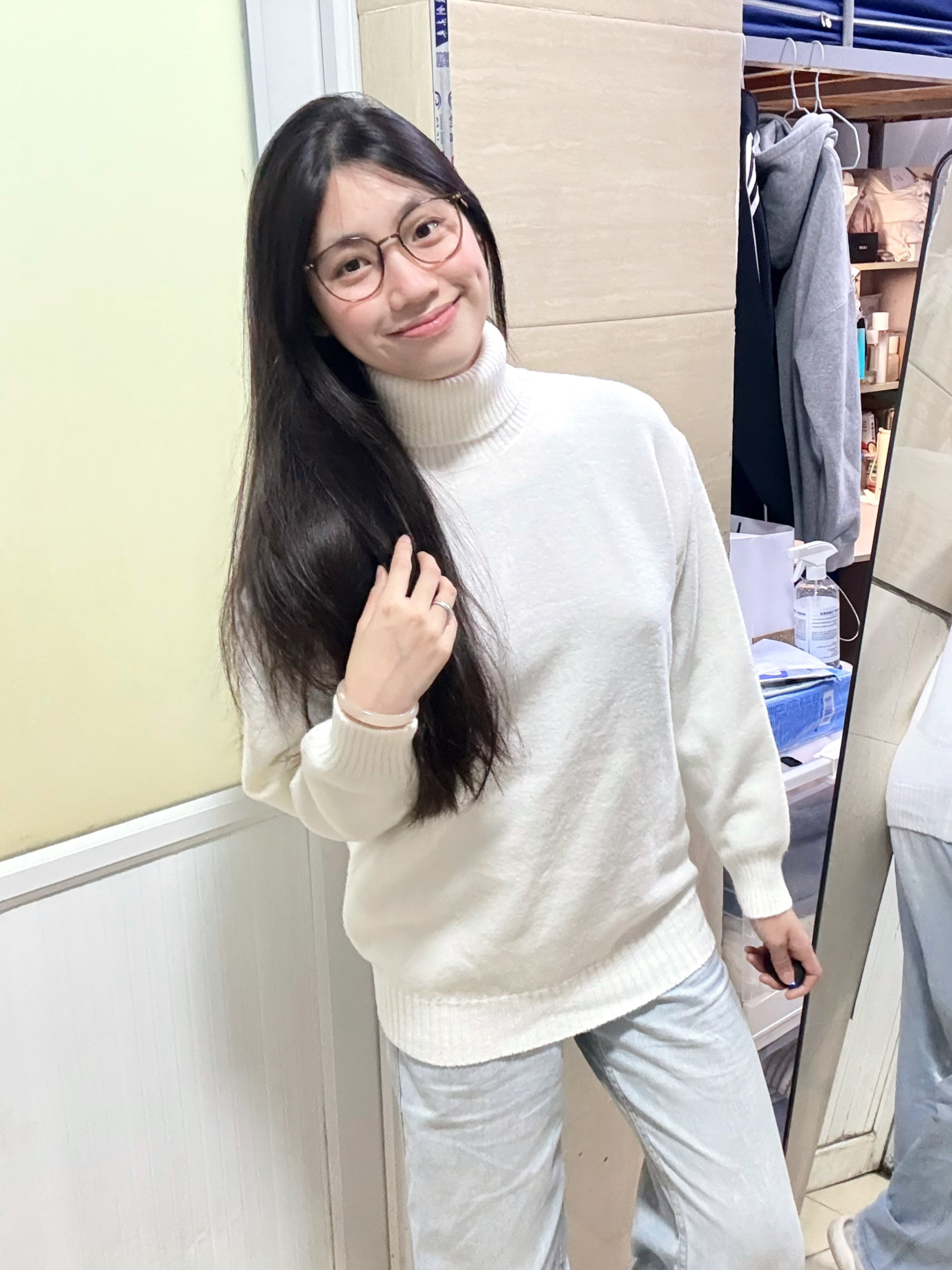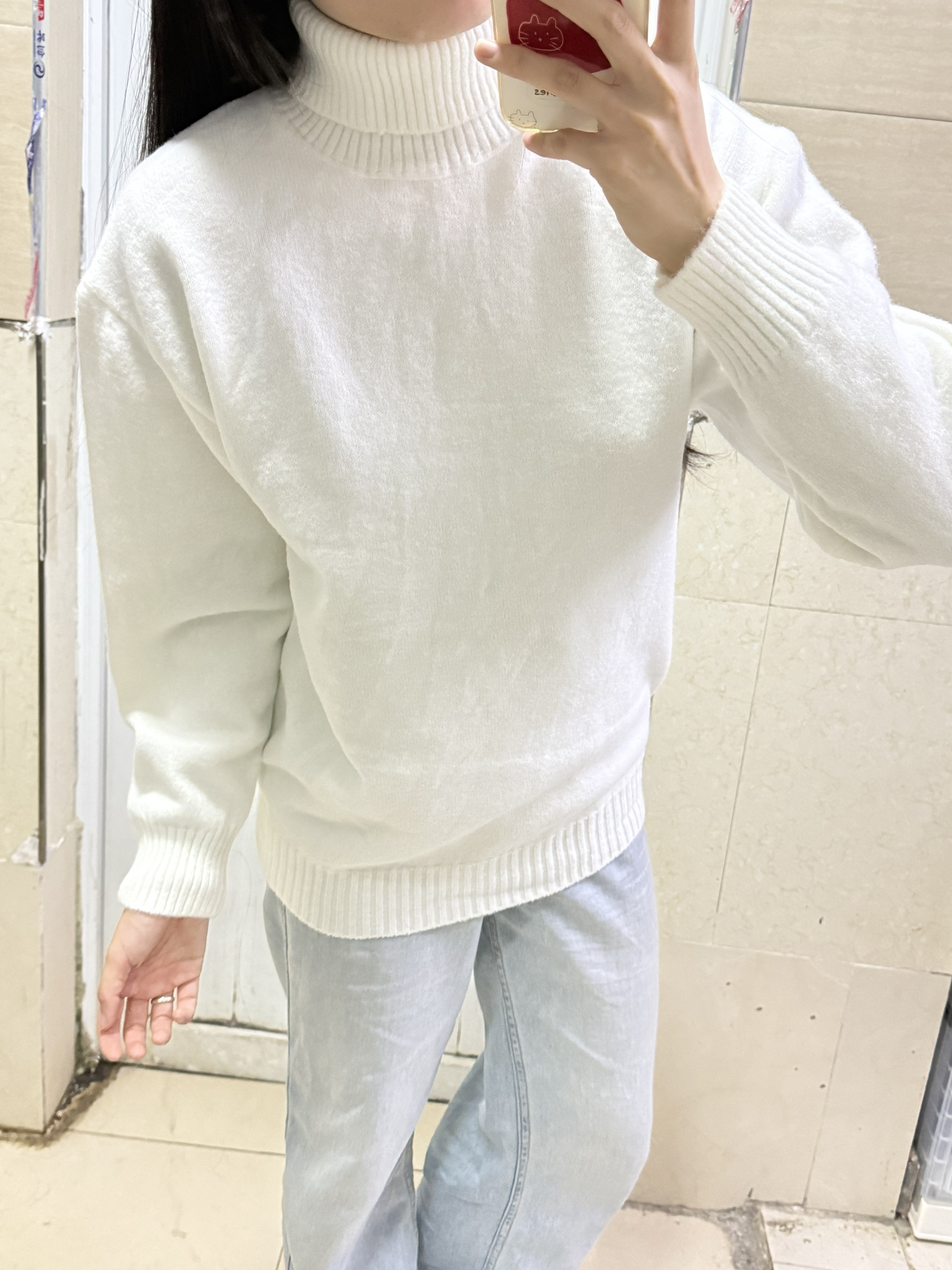 166 102穿的是L码 毛衣摸起来软乎乎的 是高领的哦 这样冬天也不怕脖子冷了 日常出门搭配牛仔裤穿就很简约了 喜欢的宝宝可以参考一下哦