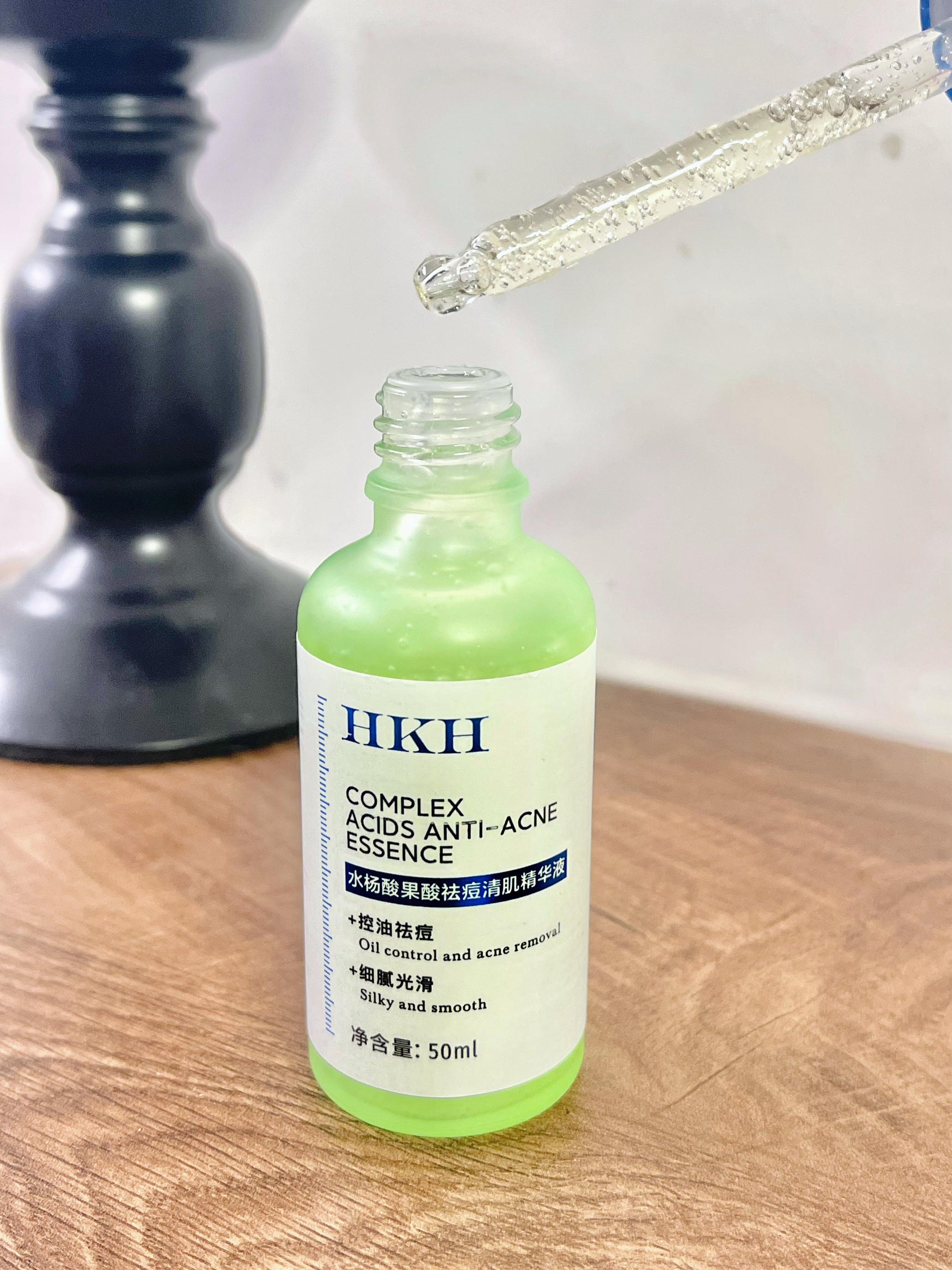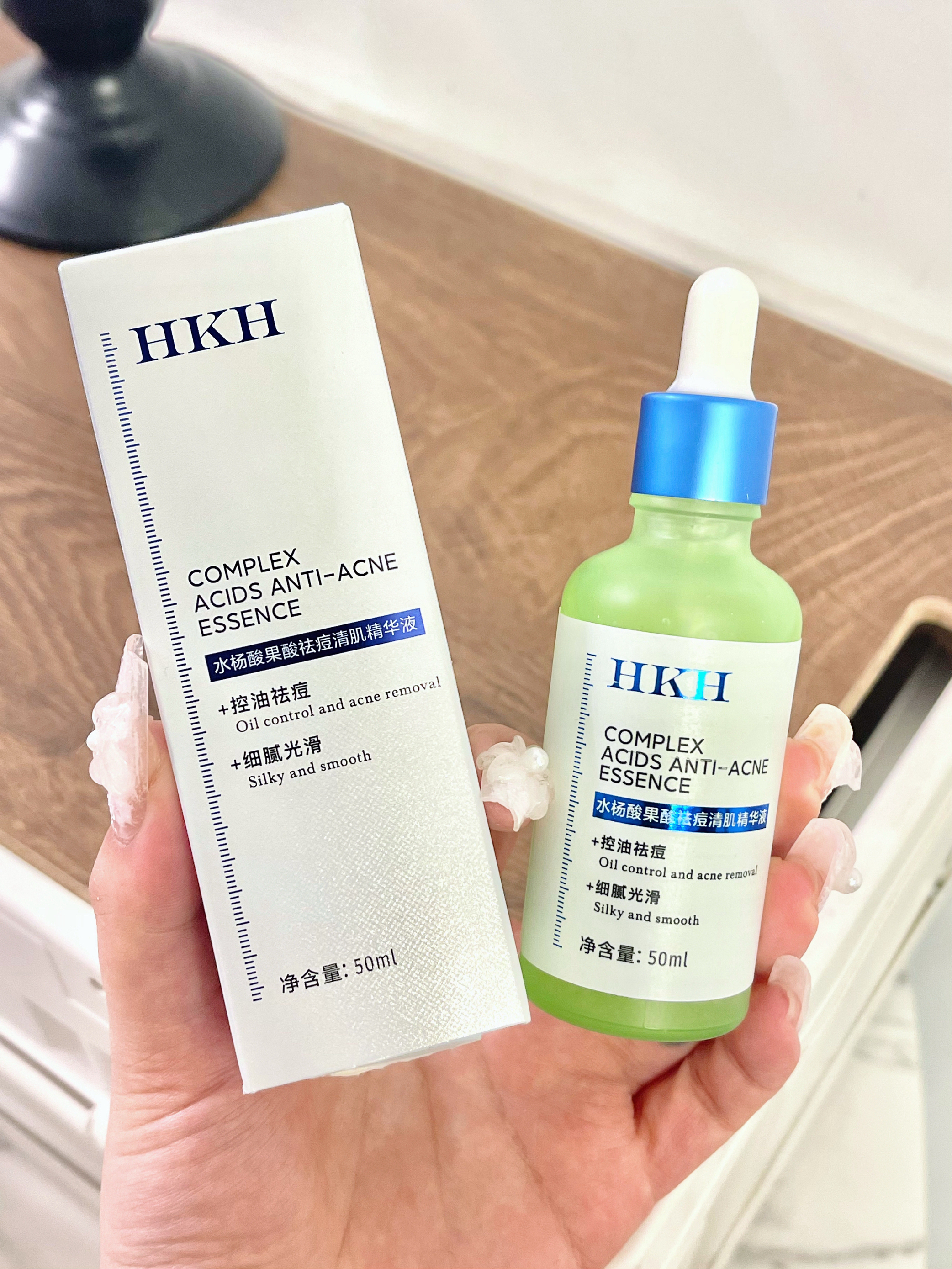 前段时间经常熬夜加班💻 额头起了好多痘痘 一直没消下去 真的很烦人😡 就试了试这款HKH水杨酸精华 ta是绿色的精华液 胶头滴管设计 取量方便 涂上脸冰冰凉凉的很舒服 好推开 吸收也快清爽不粘腻 里面还添加了澳洲茶树精油 像我这样的敏敏肌也可以放心大胆的使用~ 坚持用了一段时间 感觉痘痘真的有扁下去 面颊红红的痘坑也有在慢慢地淡化 有痘痘困扰的姐妹真的可以试一试🎉