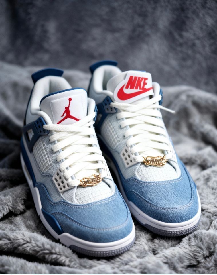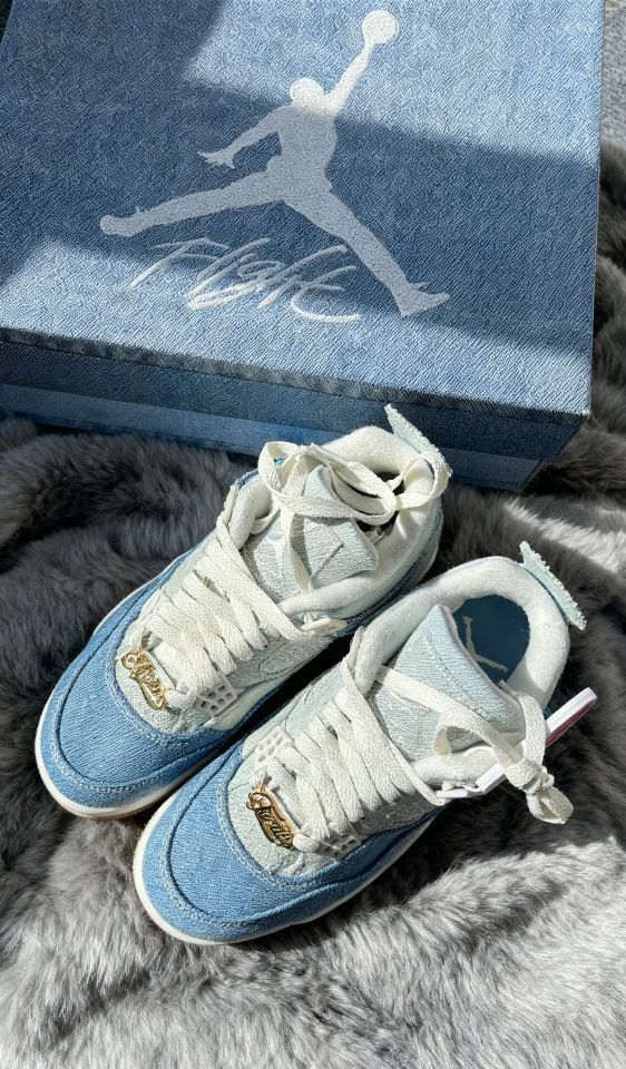 白蓝牛仔AJ4终于有了温柔归处!踩着它走路超舒服,日常出街回头率超高,往软fufu的灰毛毯上一摆,牛仔布的复古肌理和浅色调直接被衬得更戳心巴~这松弛感谁看了不说句‘好会搭’🤍