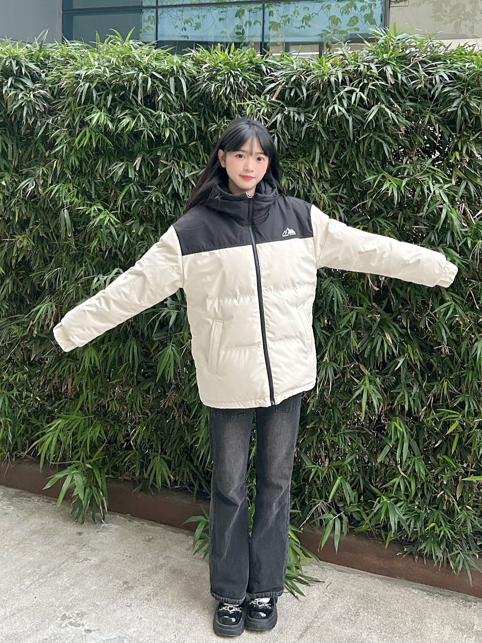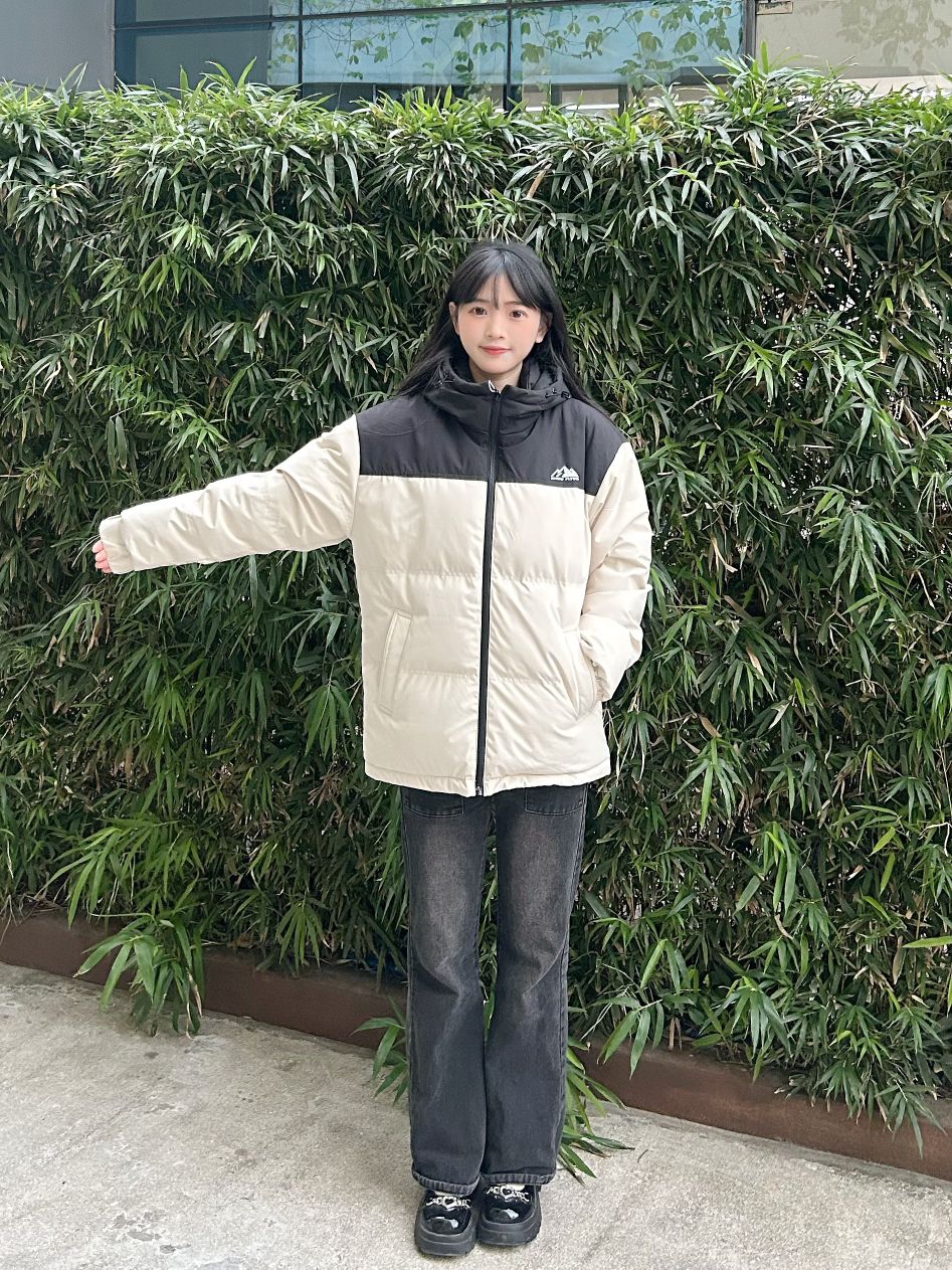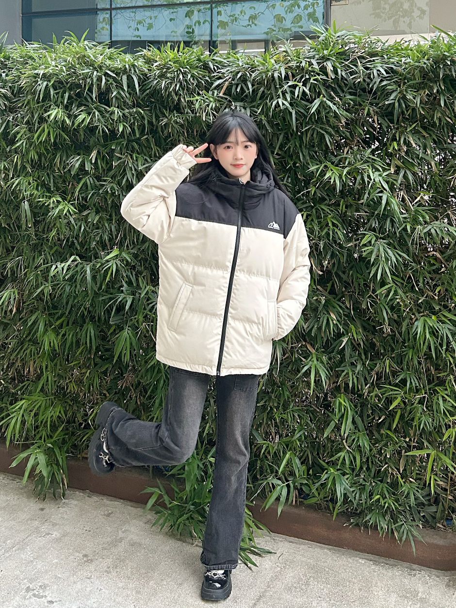 哈喽,家人们,今天的穿搭分享来啦,是一套年度冬天撞色面包羽绒服穿搭分享~ 撞色山峰logo面包羽绒服+黑色直筒牛仔裤+黑色百搭鞋子 一整套年度冬天撞色面包羽绒服穿搭get~ 尺码参考: 身高、体重:160、90 衣服:m 裤子:m 鞋子:36