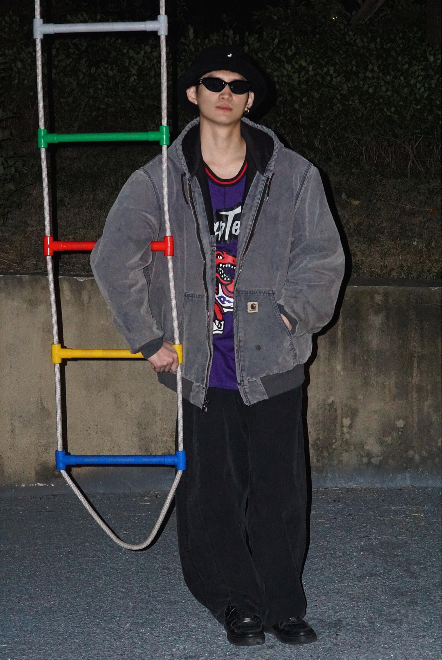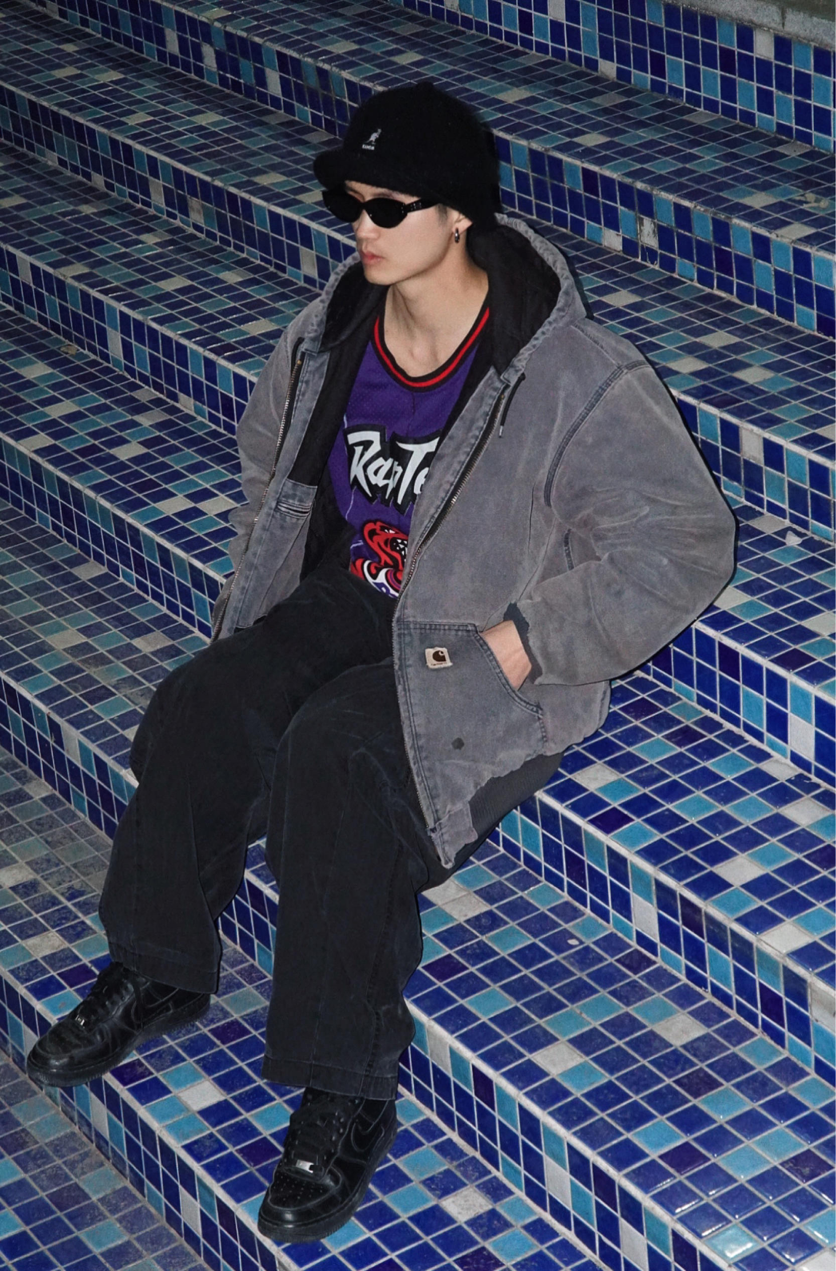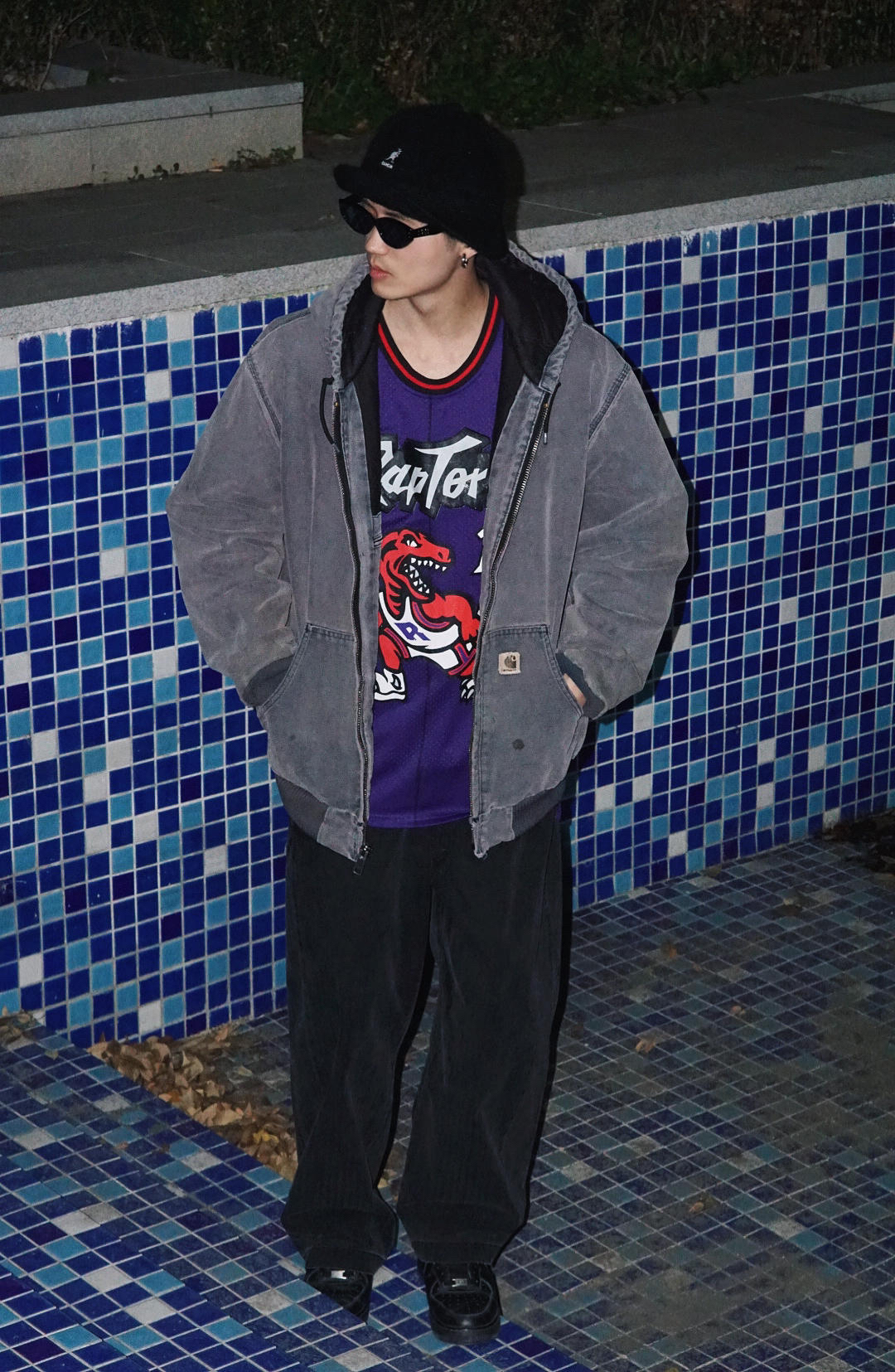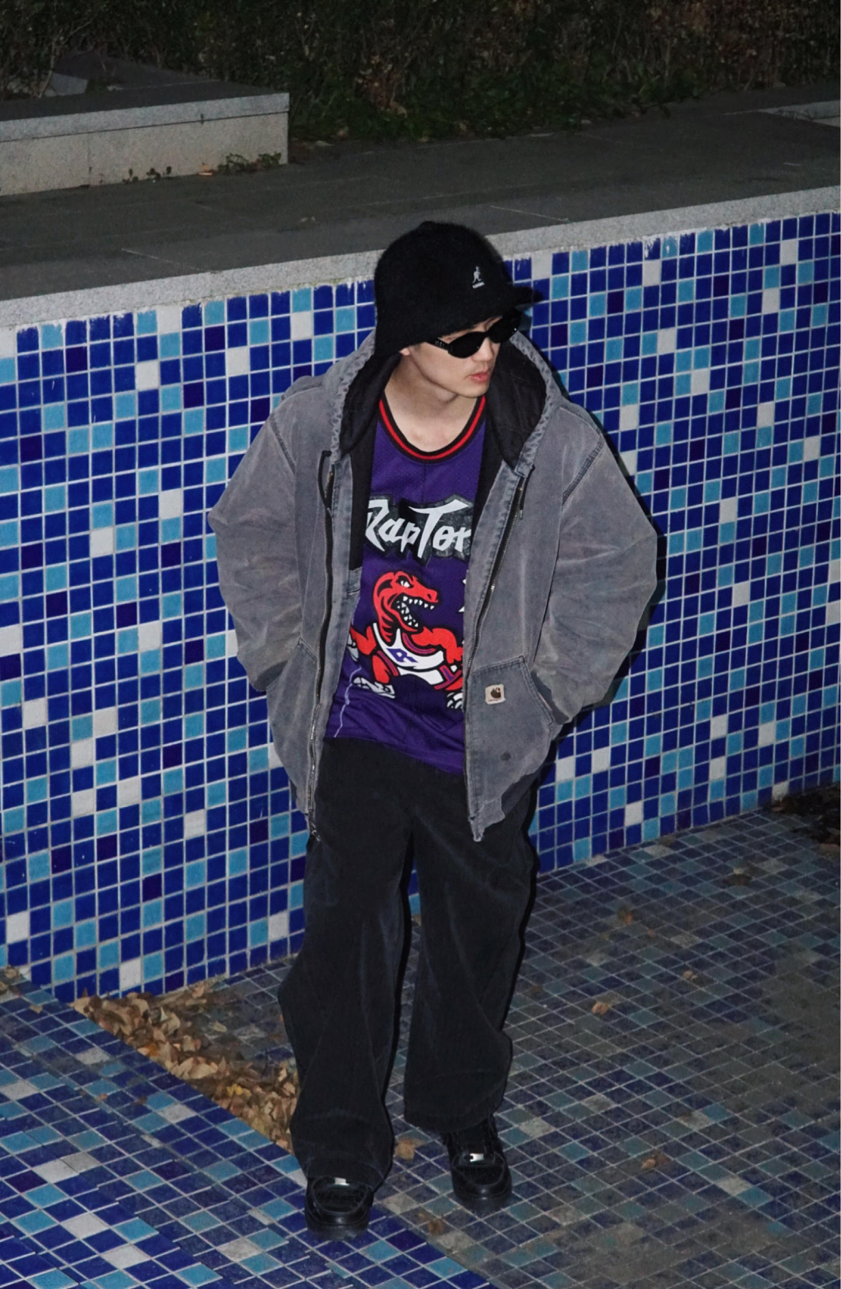 今天是千禧年纽约街头的卡哈特男孩,经典的猛龙队复古球衣搭配自然做旧的紫色J130,用卡特+卡哈特的“双卡”组合致敬那个街头文化鼎盛的00年代~