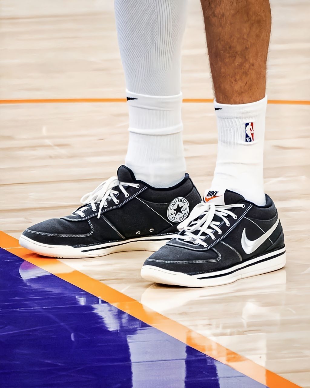 关注布克的兄弟应该都知道,他可是NBA头号匡威死忠!赛前入场穿搭,几乎被匡威全线承包,绝对是真爱粉无疑。 没想到,他最近直接圆梦,达成了“穿匡威打NBA”的成就!当然,上脚的不是普通的Chuck 70,而是这双诚意满满的Converse致敬配色Book 1。 这配色真是懂的人自然懂!整体造型,尤其是中底,完全还原了匡威经典的硫化鞋外观,连鞋内侧的标志性圆标都悉数带回,情怀直接拉满。在NBA赛场...