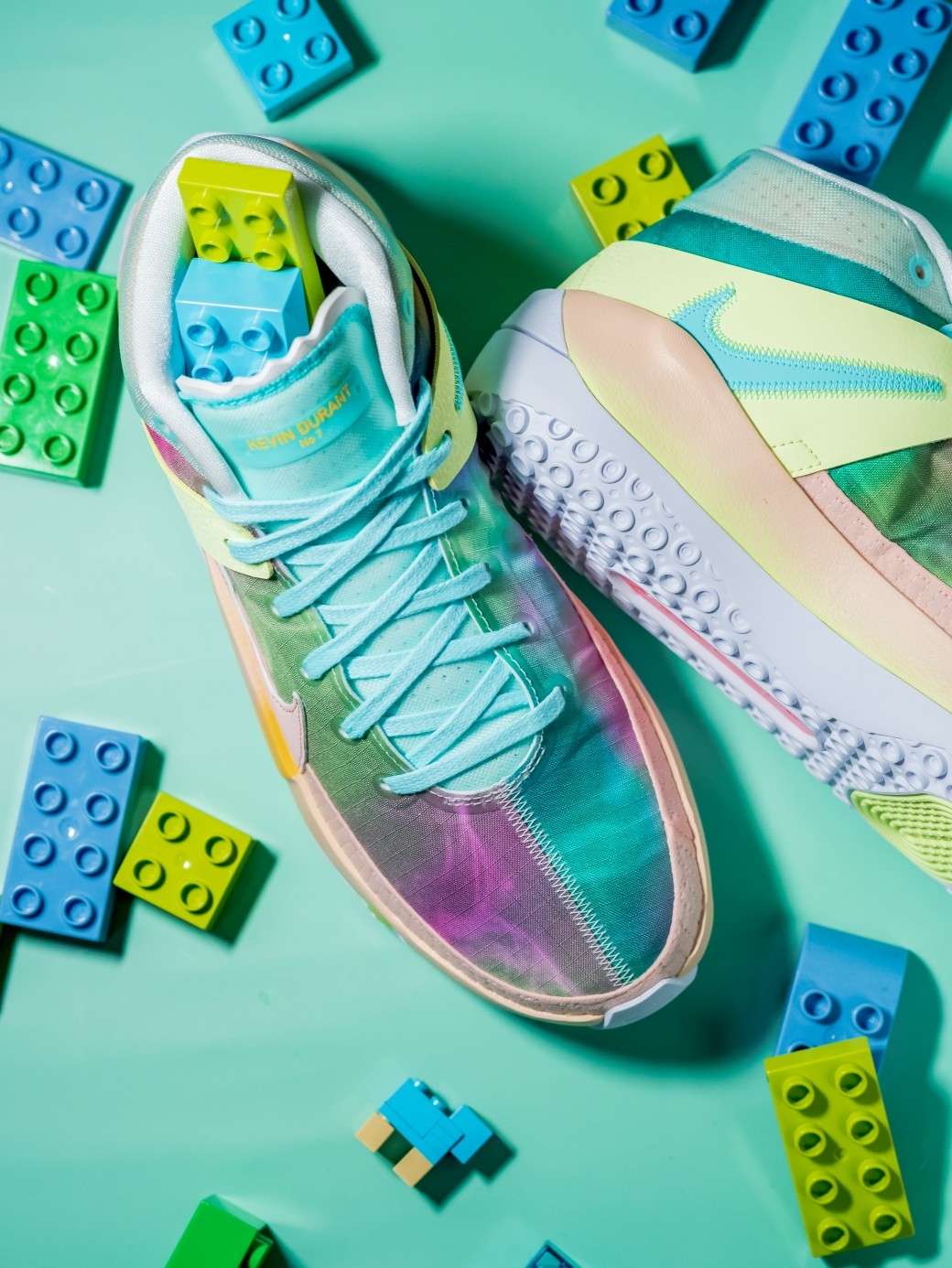 扎染+糖果色+透气鞋面,妥妥的又一双适合夏天的实战鞋,实战性能见仁见智吧,但颜值真的没话说。跟乐高在一起也很配。
