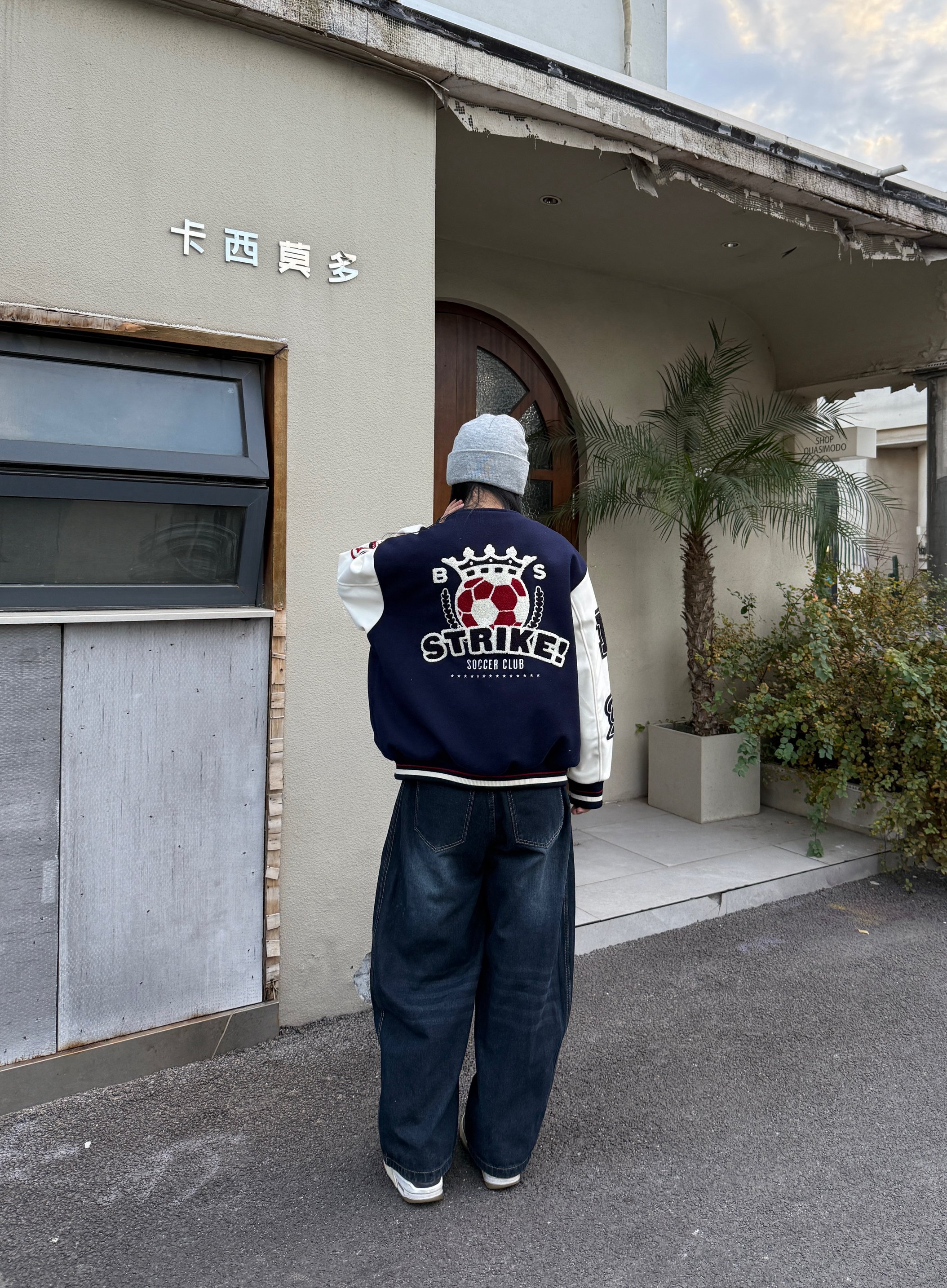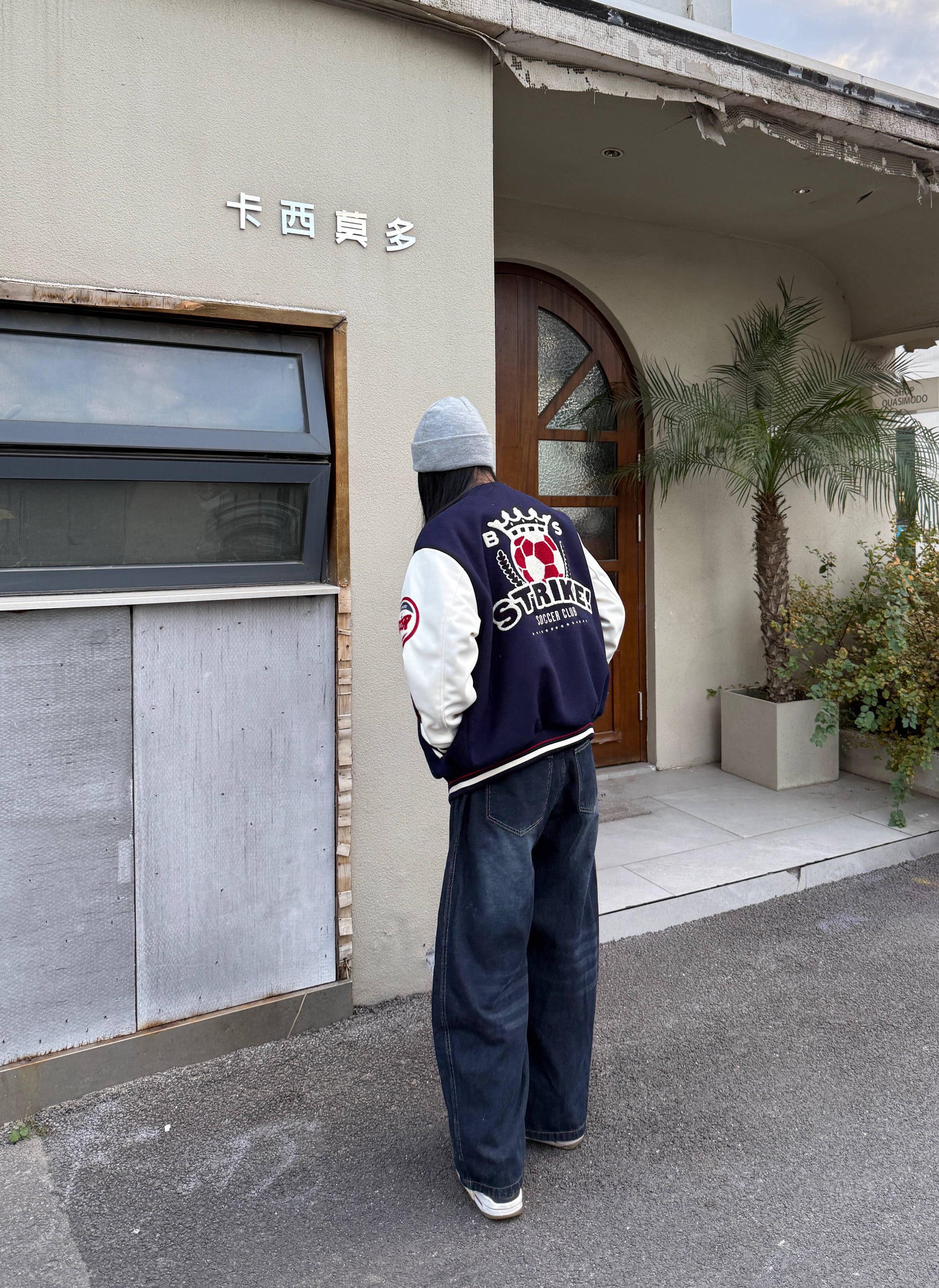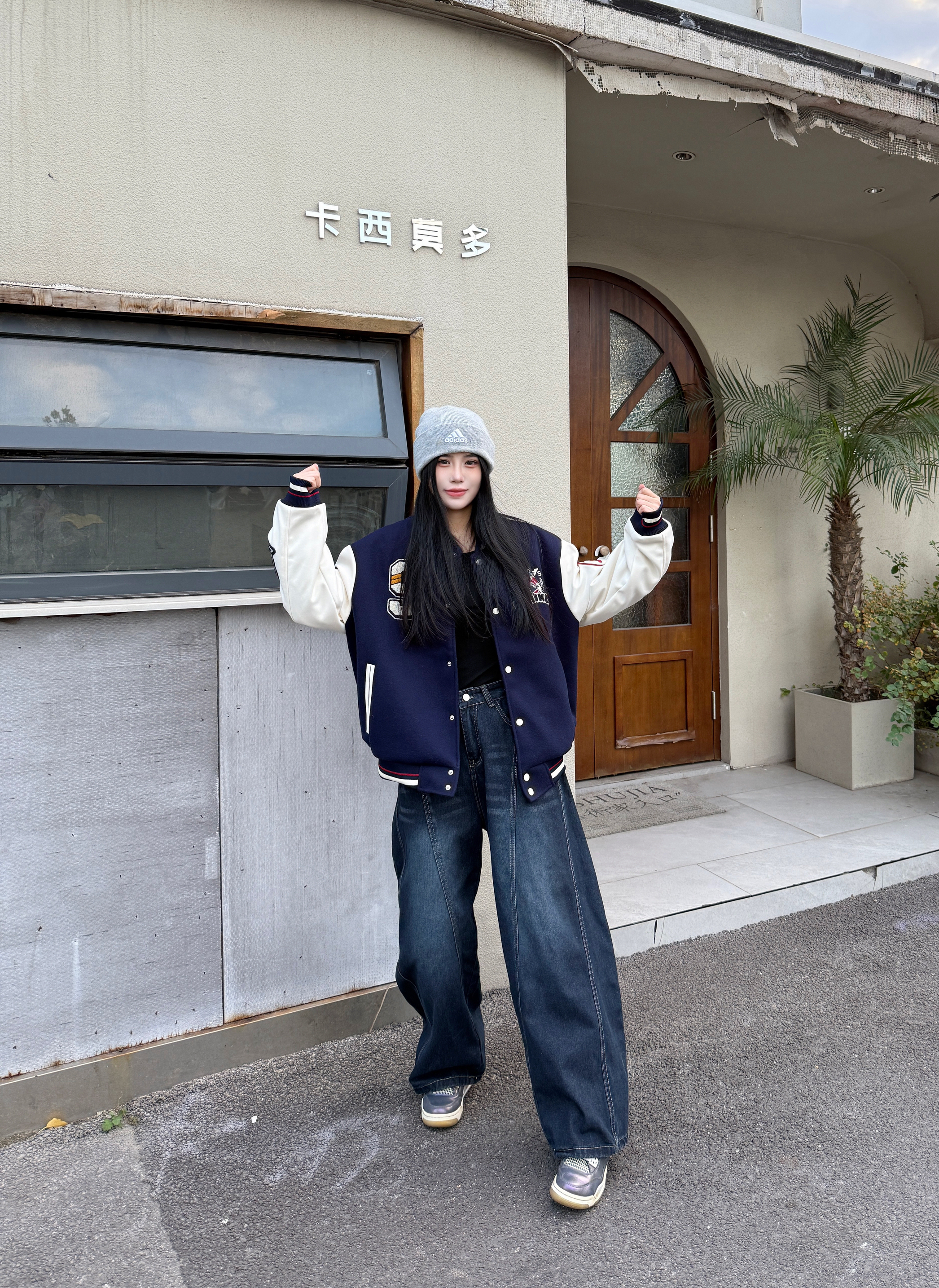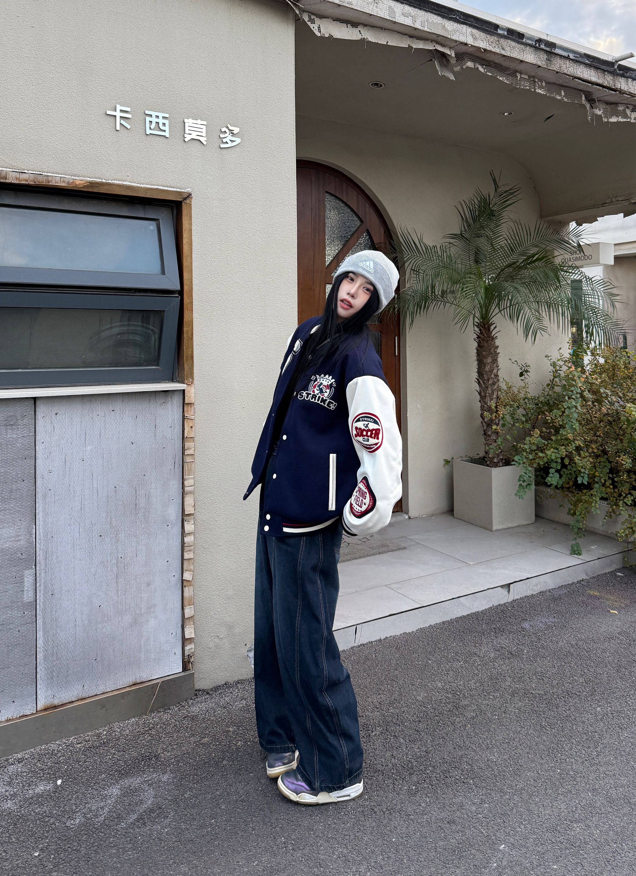 今天是帅帅的街头穿搭公式 藏蓝色棒球服经典时尚 刺绣印花🪡高级感满满 搭配一条牛仔裤酷酷的 最后戴一个冷帽增加氛围感 这一套look你学会了吗