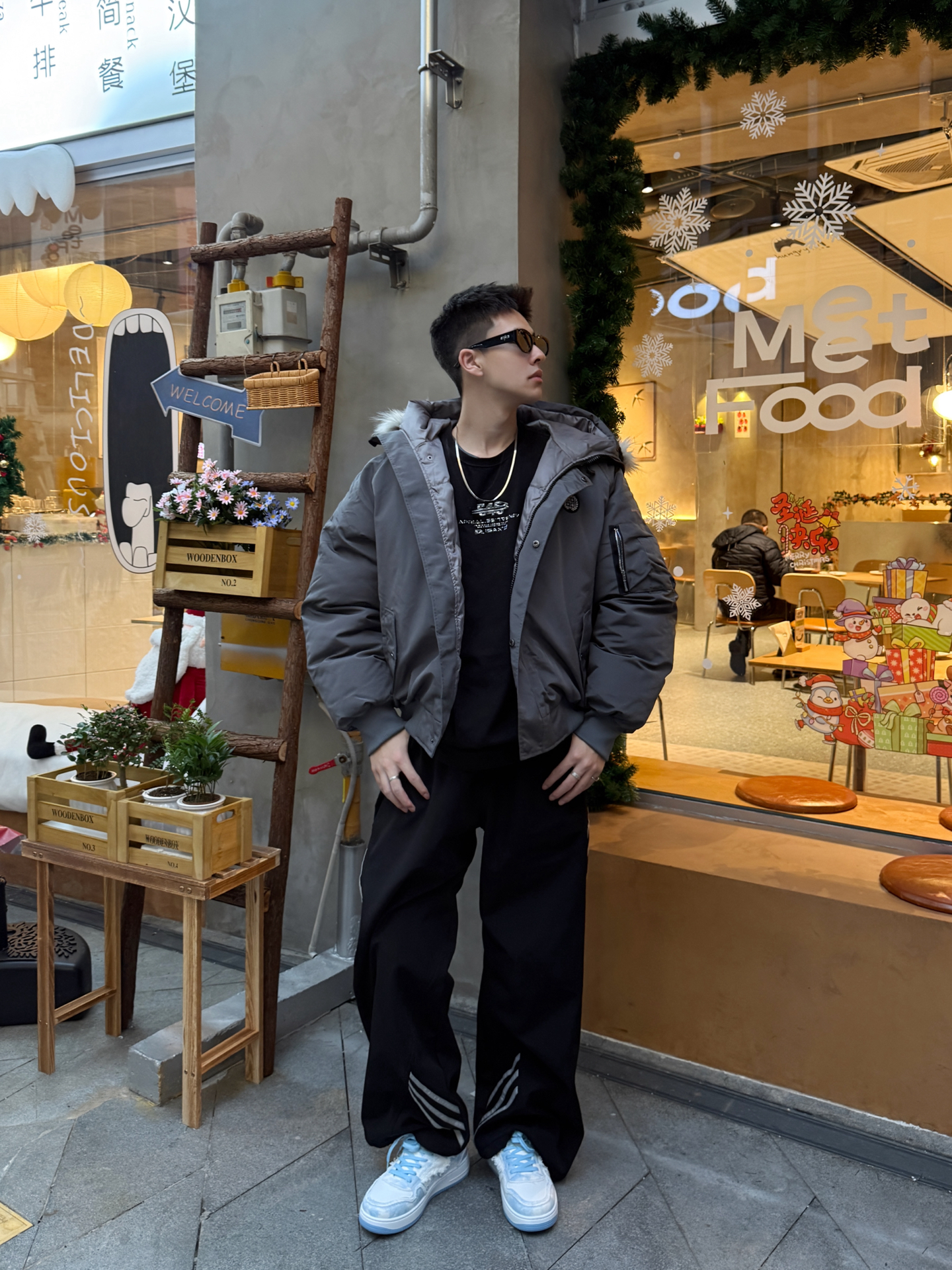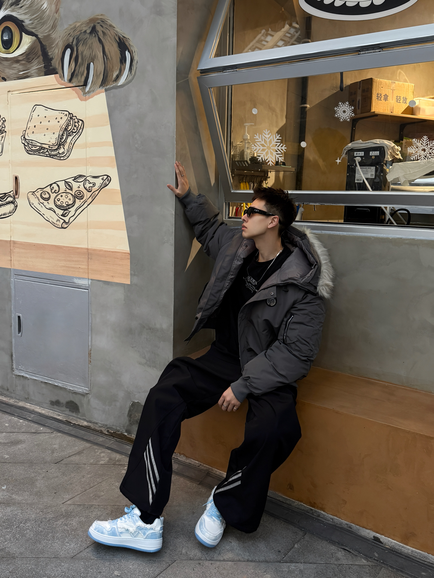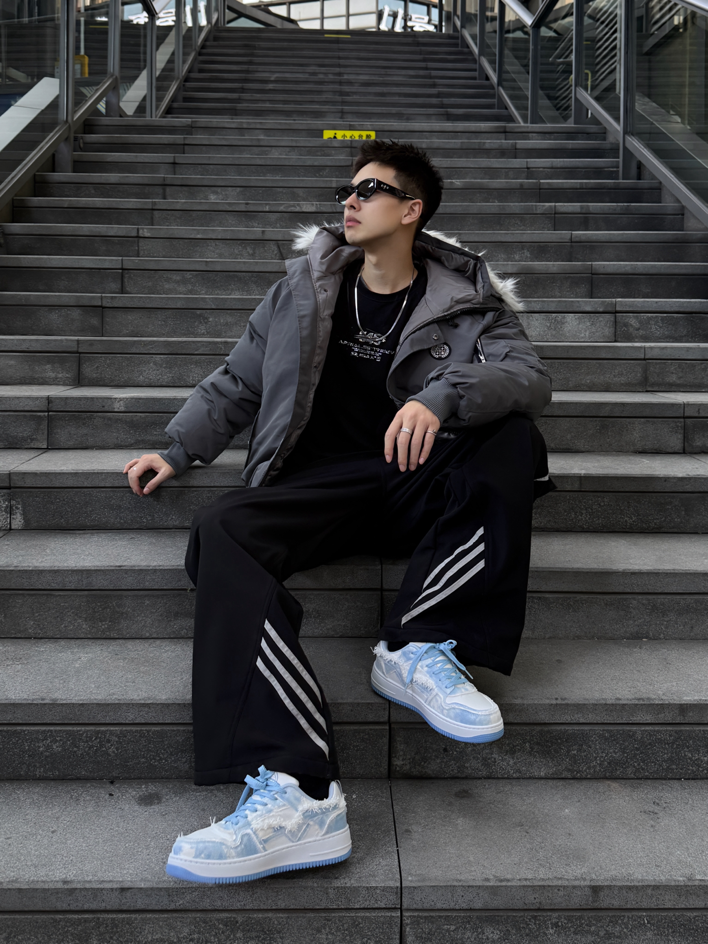 谁懂啊!冬天穿“低调高级感”居然能这么帅!灰调羽绒服+黑阔腿裤+哆啦A梦蓝白鞋,轻松拿捏冬日氛围感~😎 这件灰色羽绒服质感绝了!雾面灰调自带高级感,连帽设计防风又休闲,蓬松度刚好不会显臃肿,上身软乎乎的超保暖,日常穿既抗冻又能撑得起穿搭质感~ 搭配的黑色阔腿裤侧边带条纹装饰,简约中藏着小心机,裤型垂顺显腿直,和羽绒服搭在一起,松弛感直接拉满,不管是逛店还是约会都合适~ 重点夸夸这双哆啦A梦蓝...