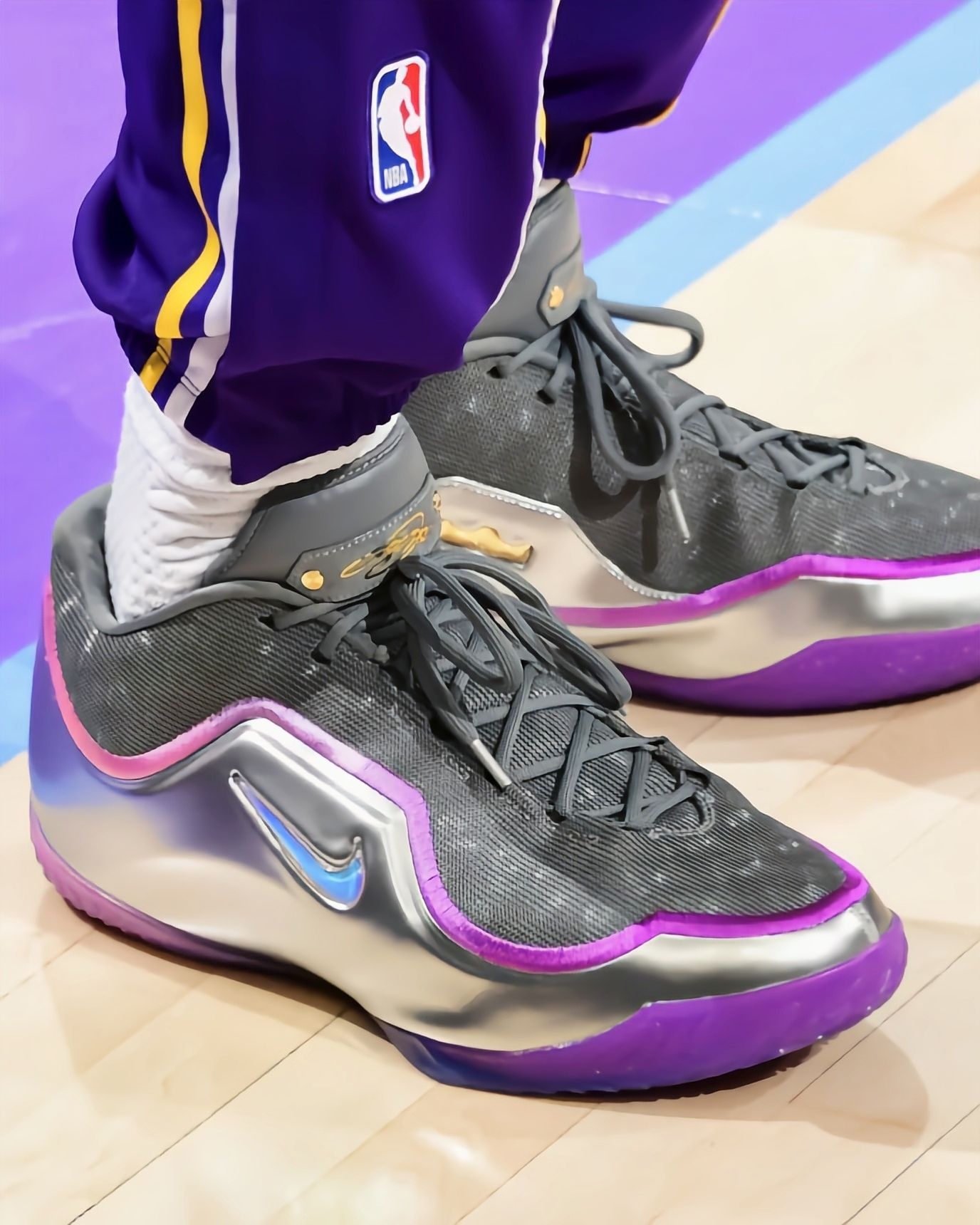 兄弟们,今天湖人险胜爵士这场都看了吗?最后几分钟真是手心冒汗!老詹虽然手感不算最热,但关键时刻的控场和那几个助攻真是稳。他今天上脚的这双LeBron 23 "Bubble Boy"——园区冠军配色,感觉自带Buff啊! 这双鞋的“故事感”先拉满:熟悉的淡蓝水晶底+黑白鞋身,后跟那个冠军金细节,一看就让人想起2020年在隔离园区夺冠的记忆,属于老詹和湖人的经典回忆杀了。 说回实战,结合今天比赛老...