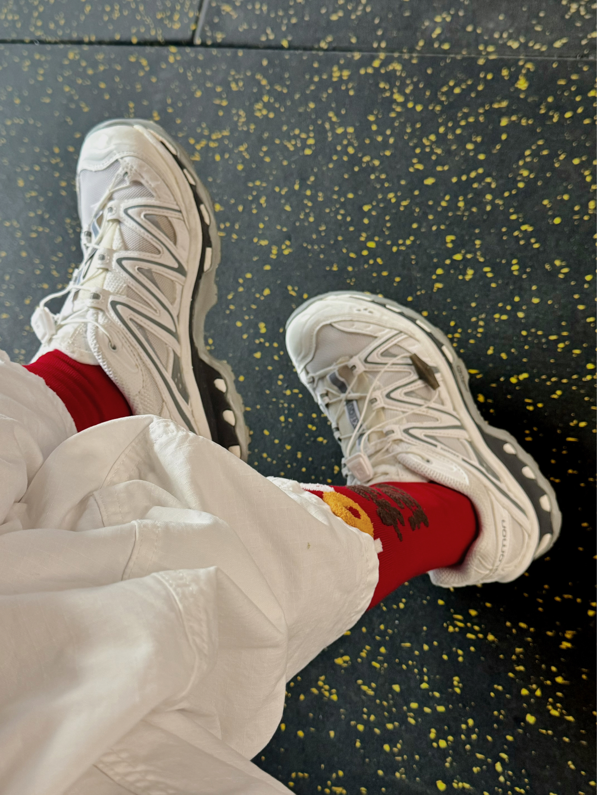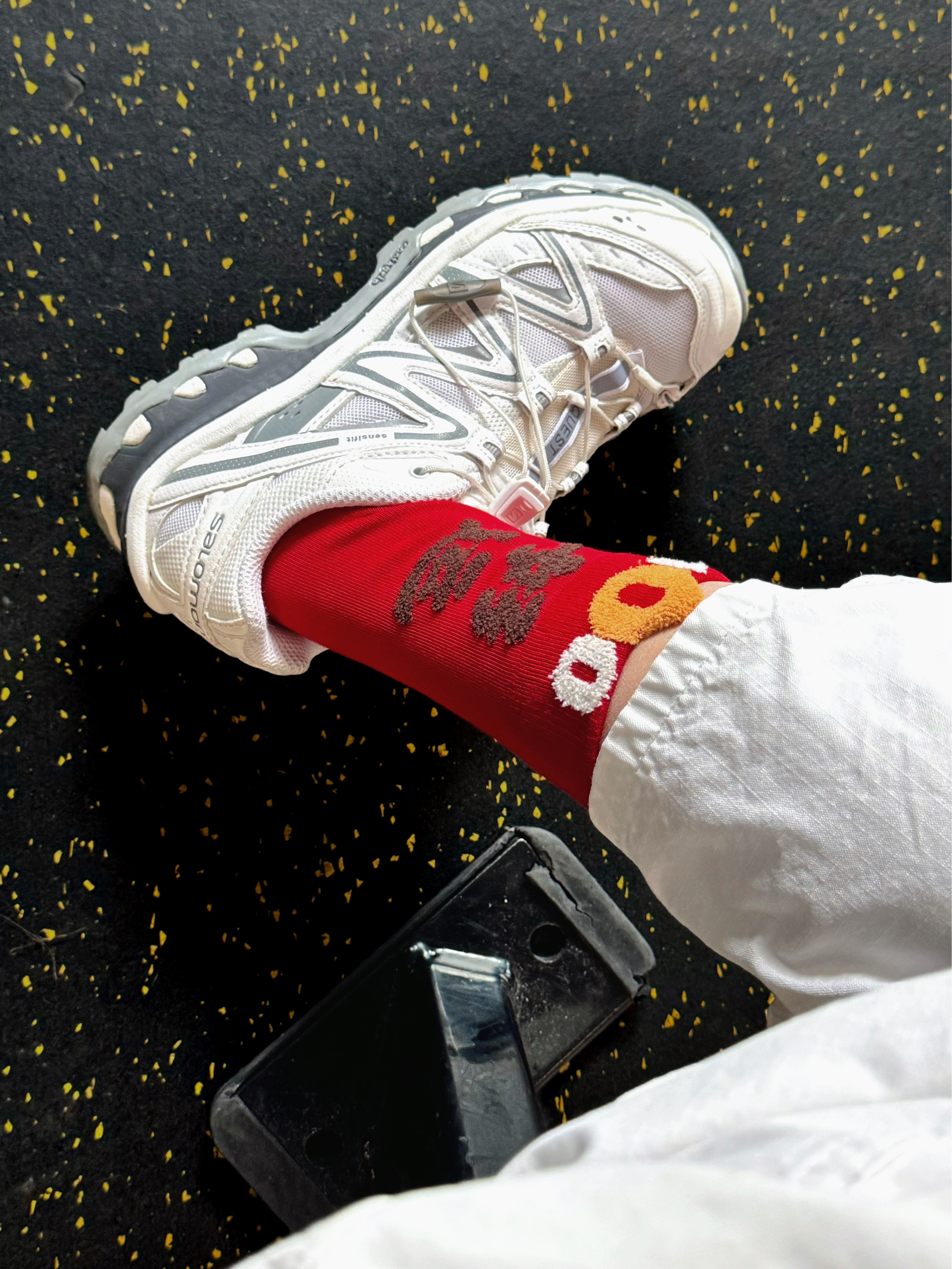 很有意寓的小红袜 拆完快递扛开包装就喜欢上了 正红色和新年祝福好喜庆啊 棉竹屋 这组太乖了 今天穿“💯好运”配萨洛蒙 也给到自己一个很好的心理暗示 舒适不闷脚 早上两小时运动拿担 抗菌防臭对运动超友好的呢 搭配白裤子白鞋,新年氛围感就上来了 礼盒包装准备再入点送给本命年的贝贝们!🎁