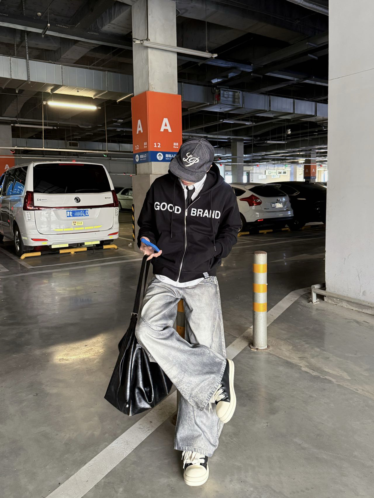 黑白搭配真的永远穿不腻! ⬆️Goodbrand 珍珠点缀太有感觉了! 短宽版型 修饰身材比例没得说 太顶啦 面料也是很扎实的 穿上也不会感到厚重💫 ⬇️搭配街头弯刀牛仔裤 增加街头氛围感✨ 内里叠穿衬衣 打领带 戴一顶原牛帽子 这样穿美式街头 很随性的一套 ❤️❤️身高178 110 ❤️❤️上身尺码:M