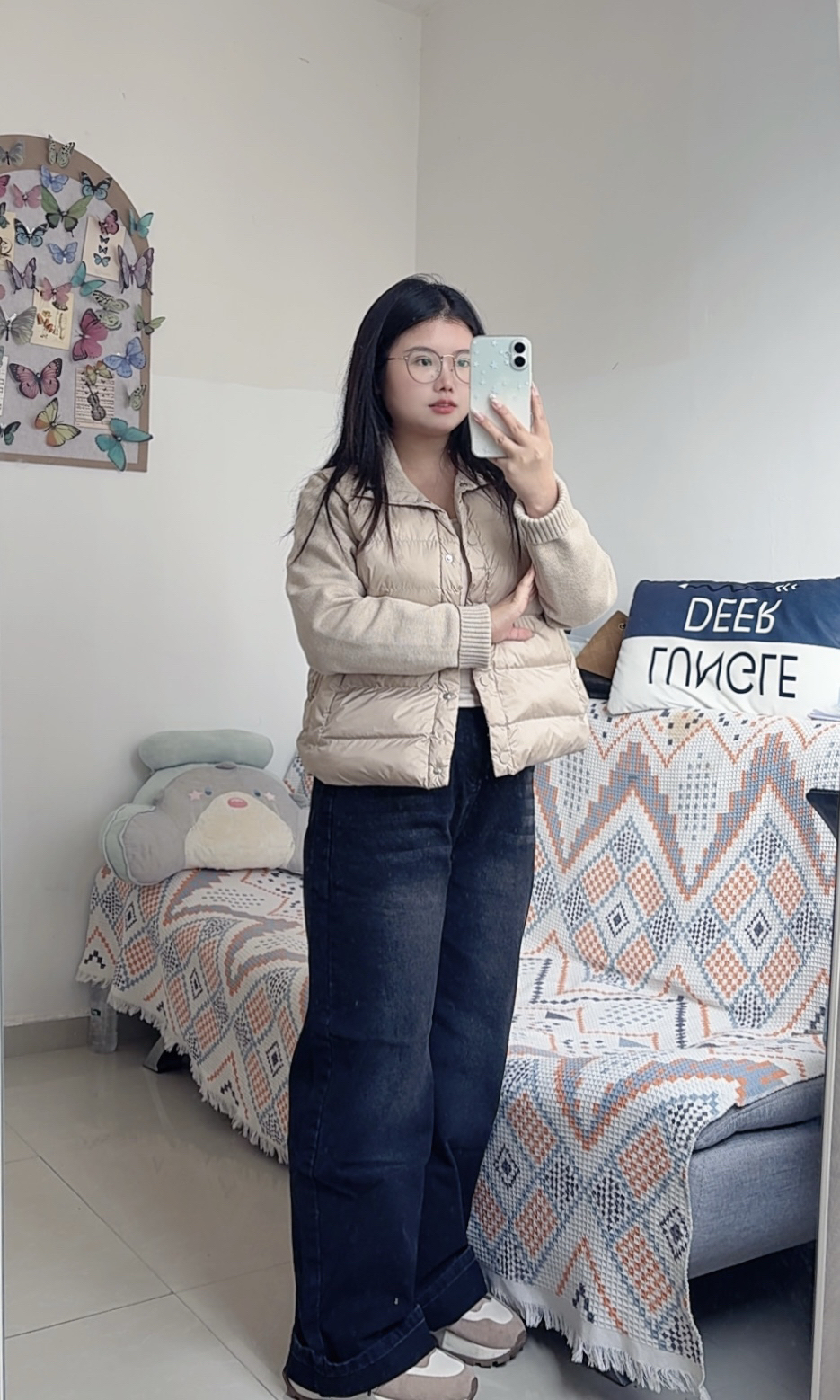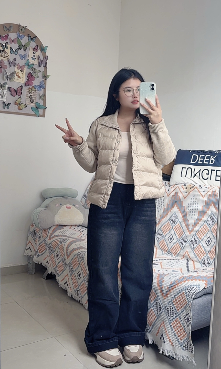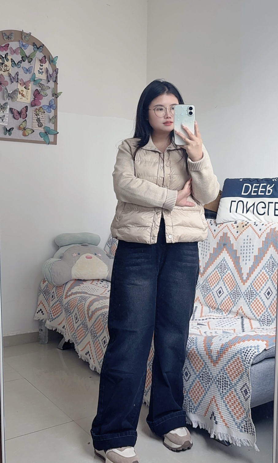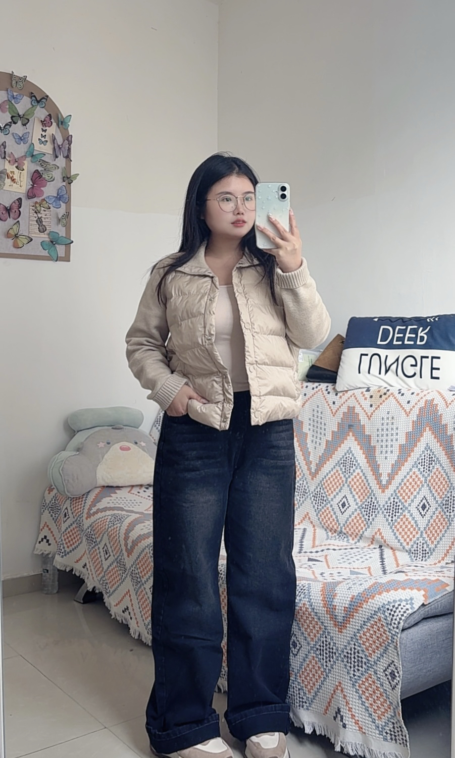 今天的穿搭自带一种复古色彩~ 阔腿牛仔裤搭配短外套好好看 好喜欢这种窄版阔腿牛仔裤 刚好修饰腿型,不会显得很宽大 面料是柔软的,没有厚重感 深色系牛仔裤很适合秋冬 休闲又好看~