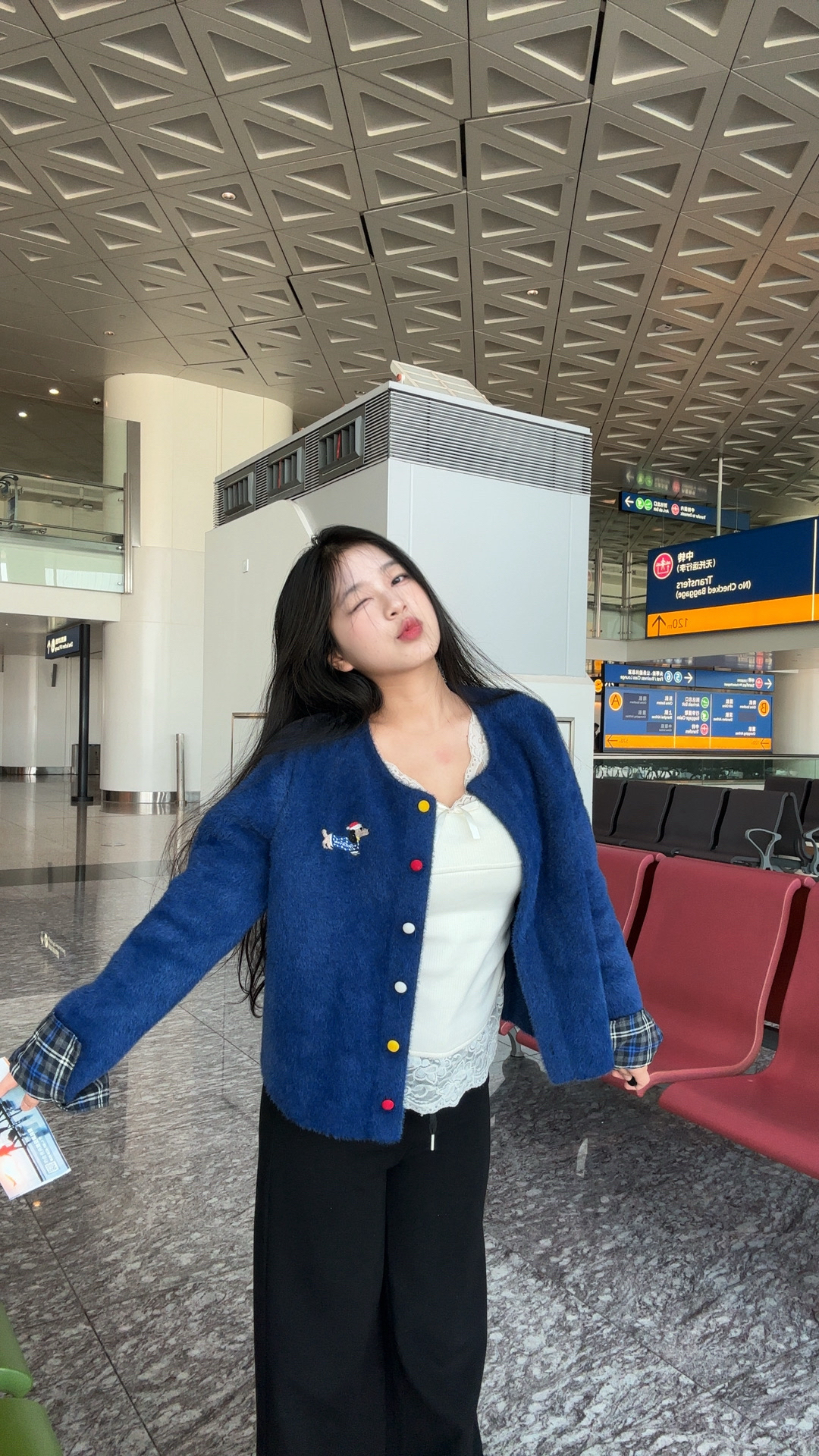 宝子们!谁懂啊😭 这件克莱因蓝毛绒开衫真的把“软萌甜妹”焊在身上了! 软乎乎的毛绒面料贴身穿巨亲肤,一点不扎,彩色小纽扣戳中所有少女心~圆领版型超藏肉,不管搭吊带还是内搭T恤都好看,显白到素颜都能直接出片,穿上它走在机场被问了800遍链接,糯叽叽的质感冬天穿又暖又甜,谁穿谁是元气小甜豆✨