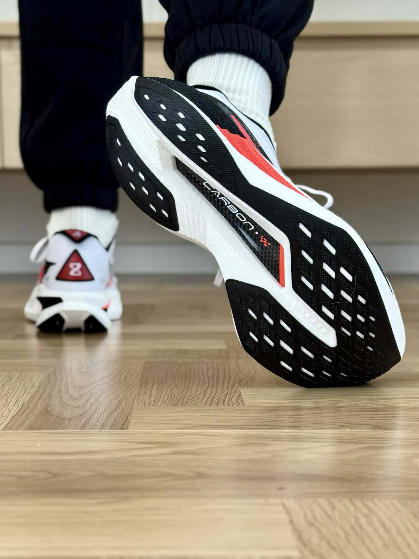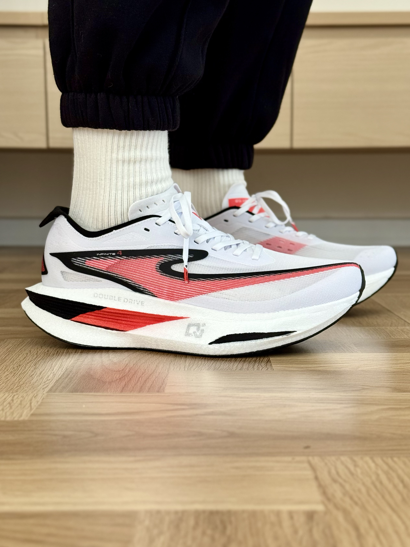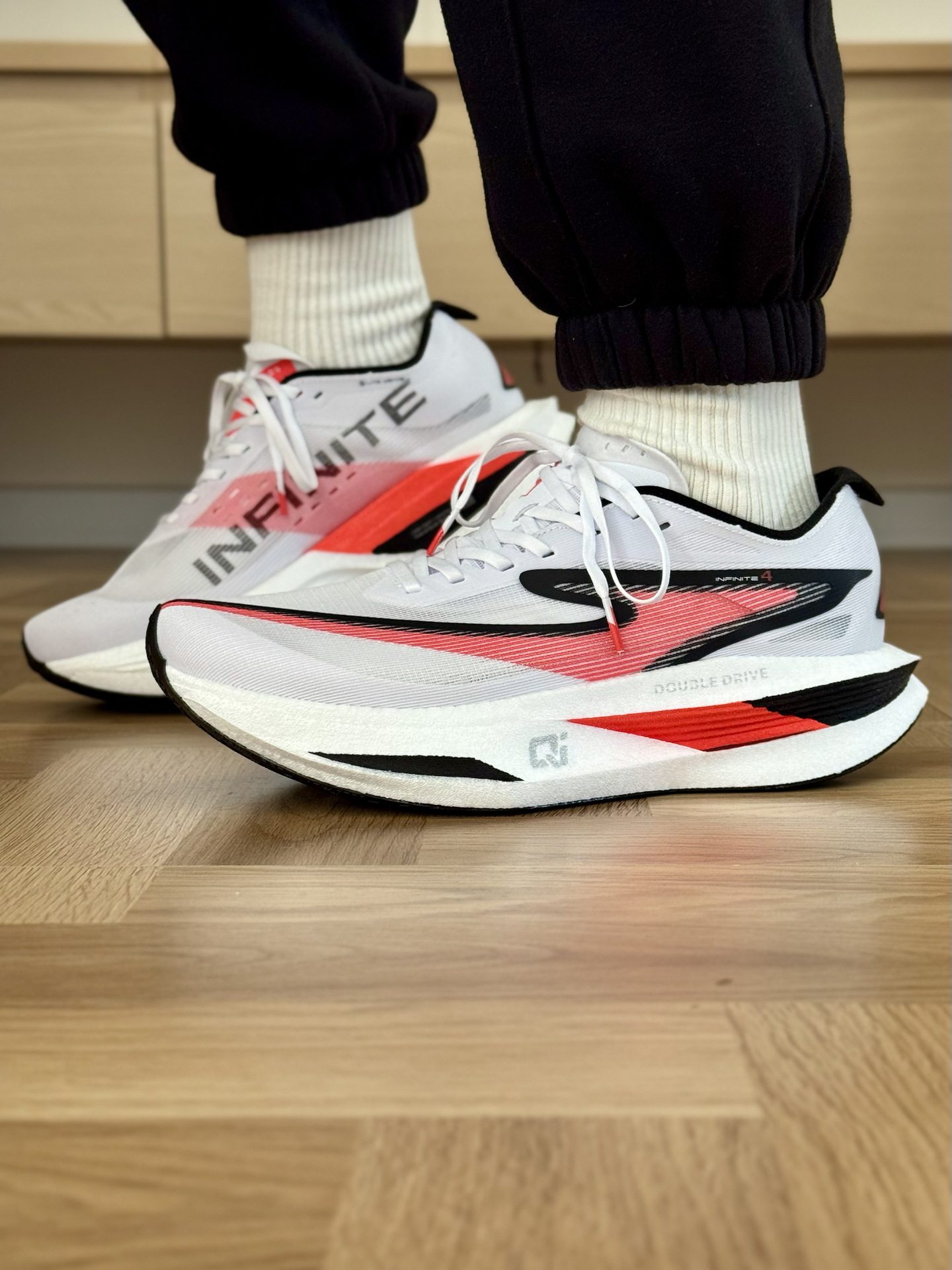 Hello匹斯来啦! 今日分享 鸿星尔克 芷境4跑鞋 白红的配色上脚是真的帅啊,而且还有大幅度的坡差设计,上脚不仅很酷而且还带来了不错的滚动性,对于竞速or马拉松跑都有着不小的提升💯 六边形后跟和加宽中底也带来了不错的稳定性,我实测跑起来会比3代稳定好多,上脚安全感十足❗️ 尺码不偏,我建议大家按照正常码数选择✨ #低头拍跑鞋 #鸿星尔克芷境4 #芷境4稳王 #芷境4颜值抗打 #芷境4天鹅