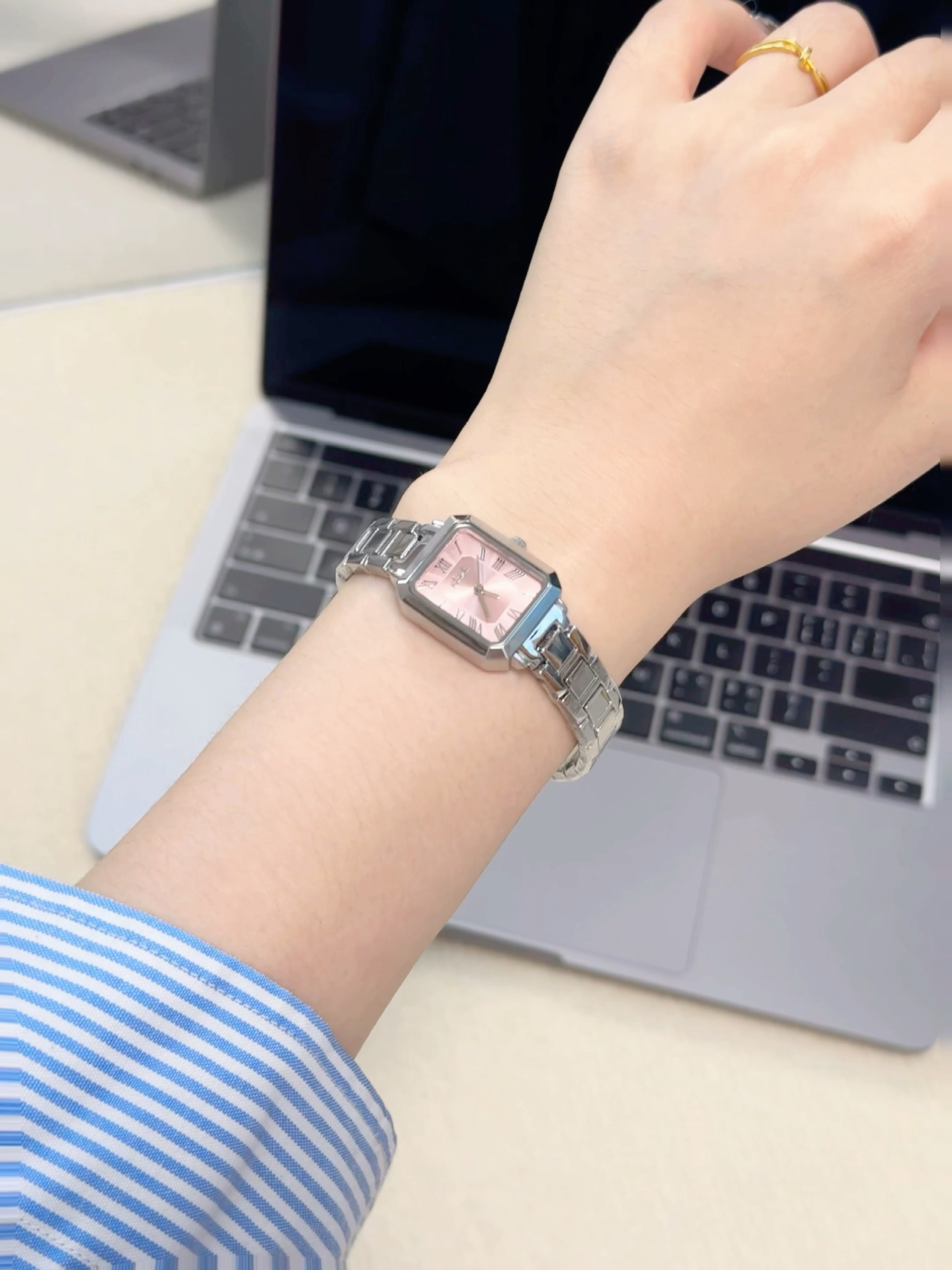 早上随便抓件衬衫或者连衣裙,戴上它瞬间就有了“精心打扮过”的感觉。银链细闪不张扬,白表盘还衬得手腕细细的,昨天喝咖啡被邻座女生悄悄问牌子,真的暗爽到现在