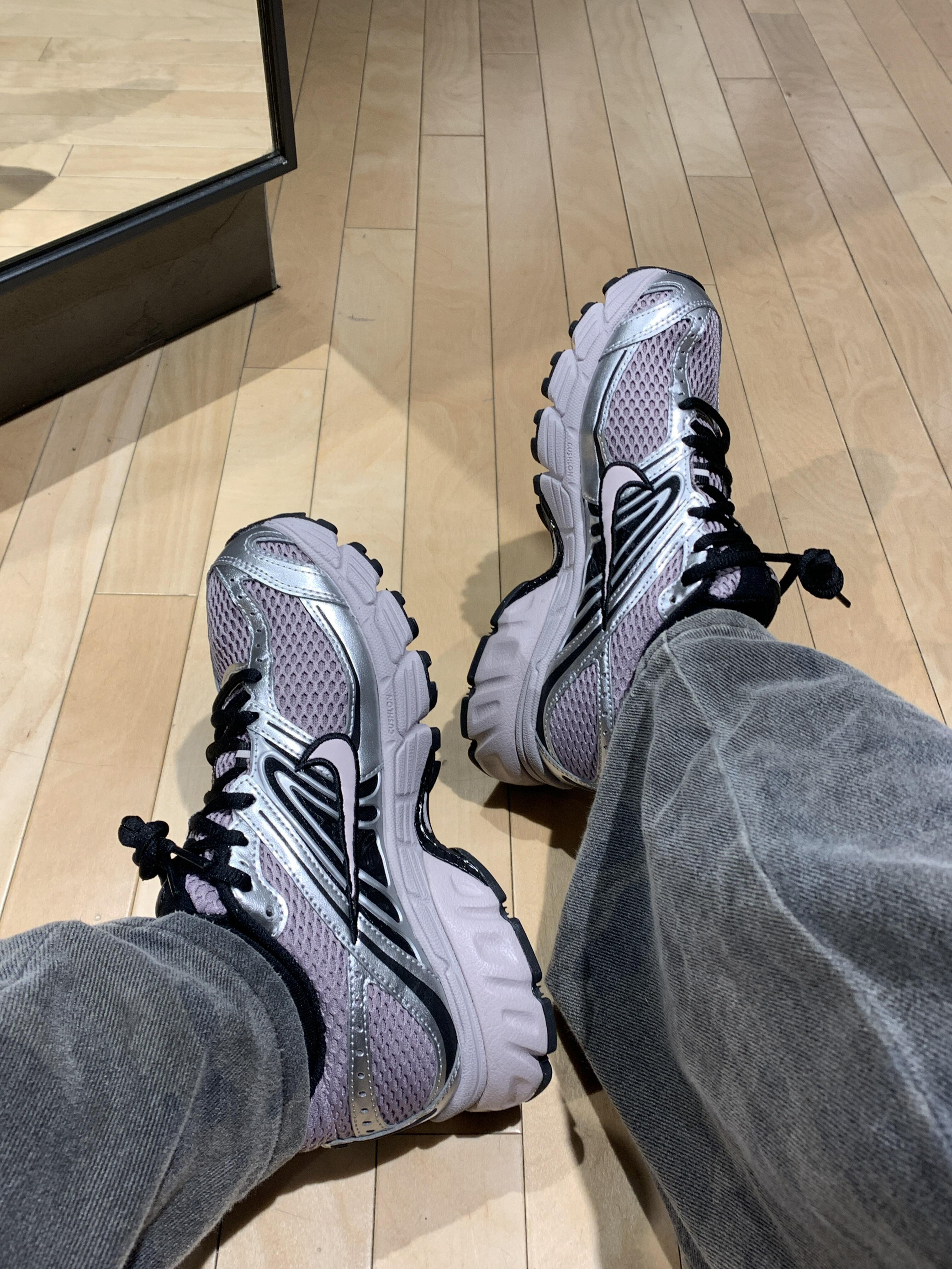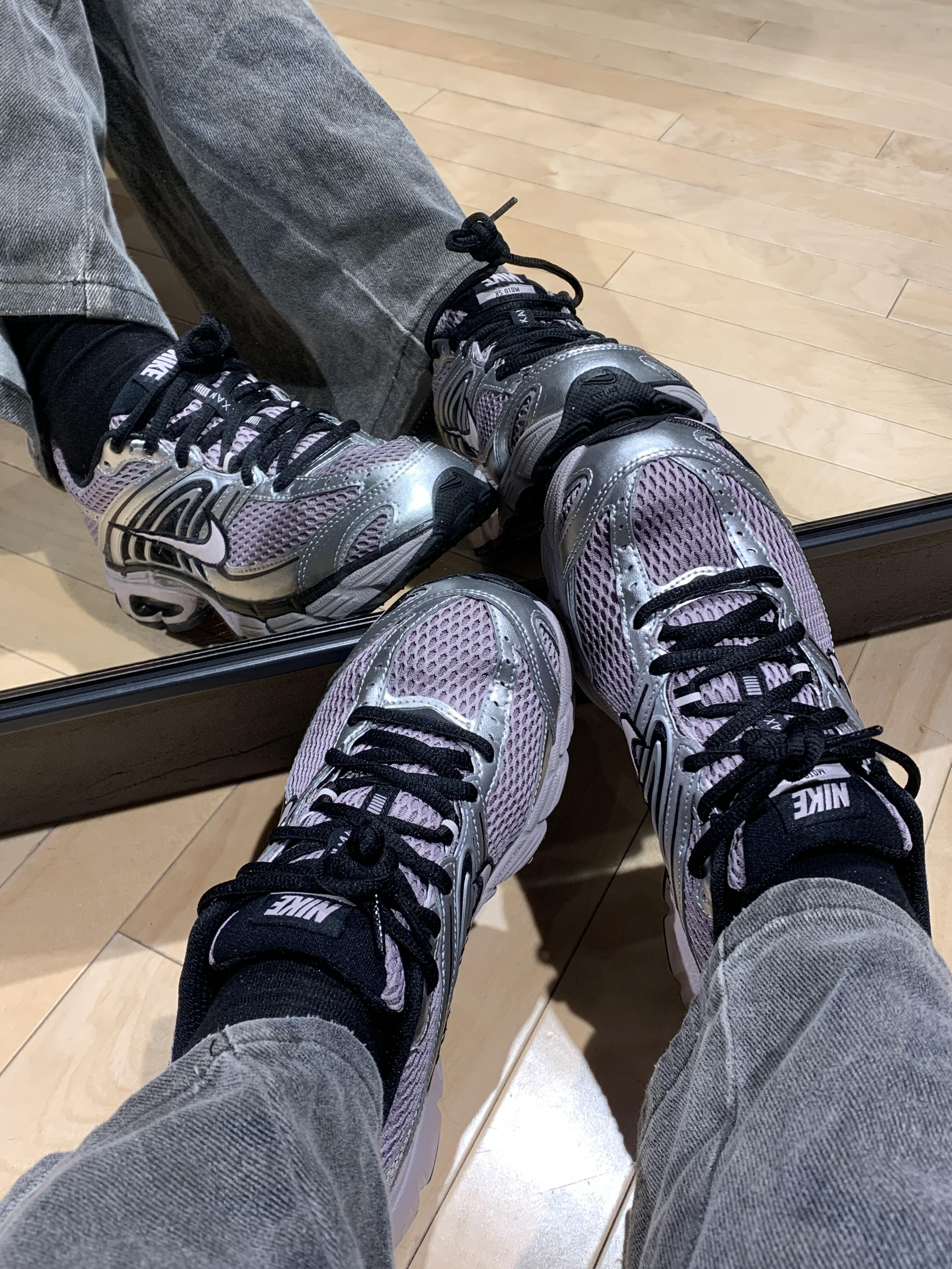 新入的这双银粉拼色老爹鞋,自带Y2K千禧氛围感,分享下日常穿了一周的真实体验~ ✨ 穿搭小技巧 1. 千禧风老爹鞋搭阔腿裤超绝!像我这样配炭灰色牛仔阔腿裤,深色能压住鞋子的金属感,穿出慵懒的复古松弛感;搭黑色束脚运动裤则能突出银粉撞色的酷感,走街头辣妹路线也超适配。 2. 显腿长思路:选九分阔腿裤/把裤脚卷到脚踝以上,露出完整的鞋型;搭配黑色中筒袜(和鞋带呼应),视觉上收紧脚踝,就算是厚底老...