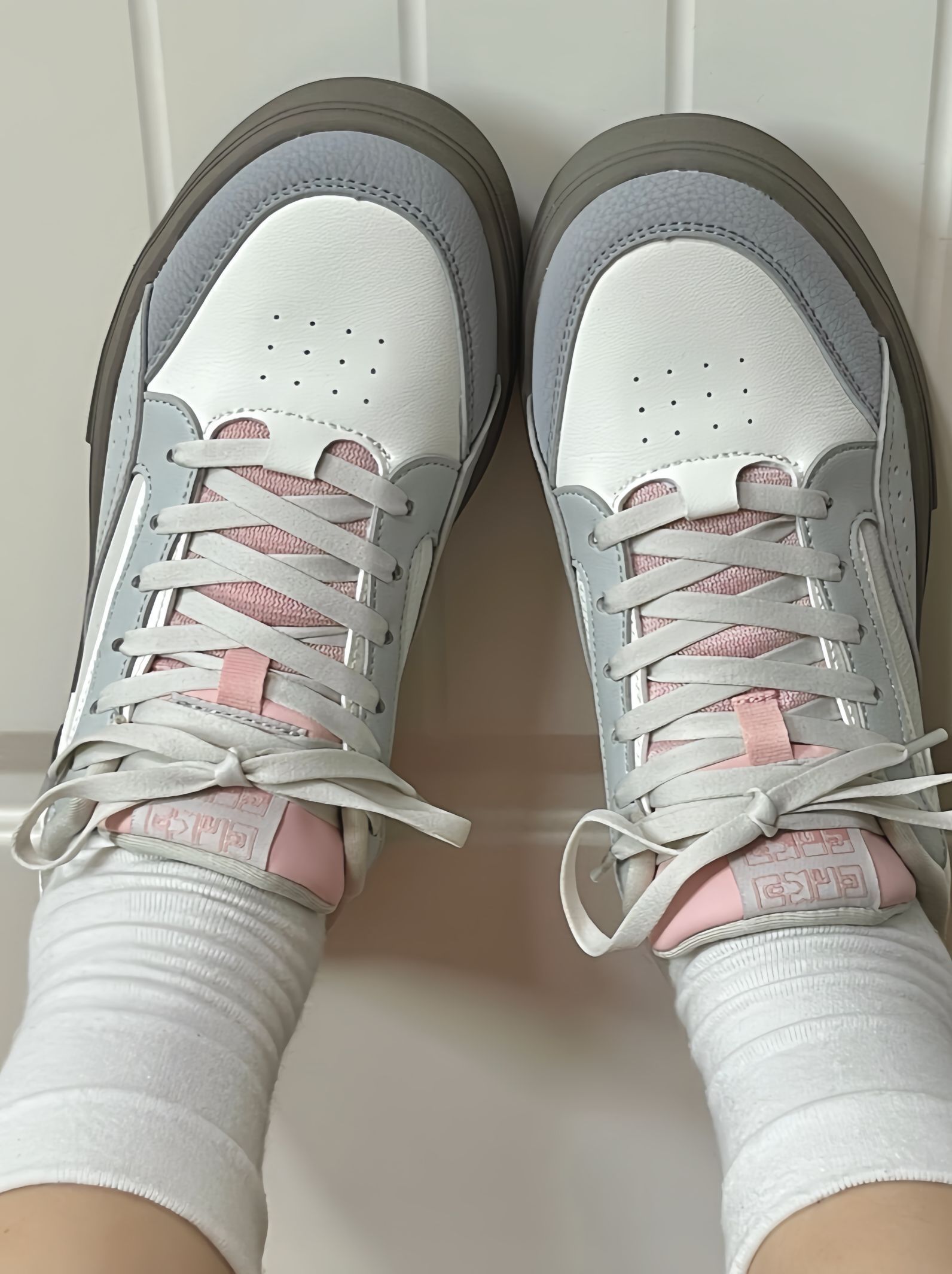 介双配色😍感觉好独特啊! 没想到粉色和灰色还能这样搭配耶✌🏻 冬天真的是一个适合🈴穿板鞋的季节~ 穿上暖和又好看👀 可以无脑冲 简单的款式 所以也很好搭配滴💗 鞋底防滑还可以🉑 不用担心摔倒啦 穿上不会显脚🦶肥啥的 很🆗 #板鞋控DNA动了 #鸿星尔克 #我的出