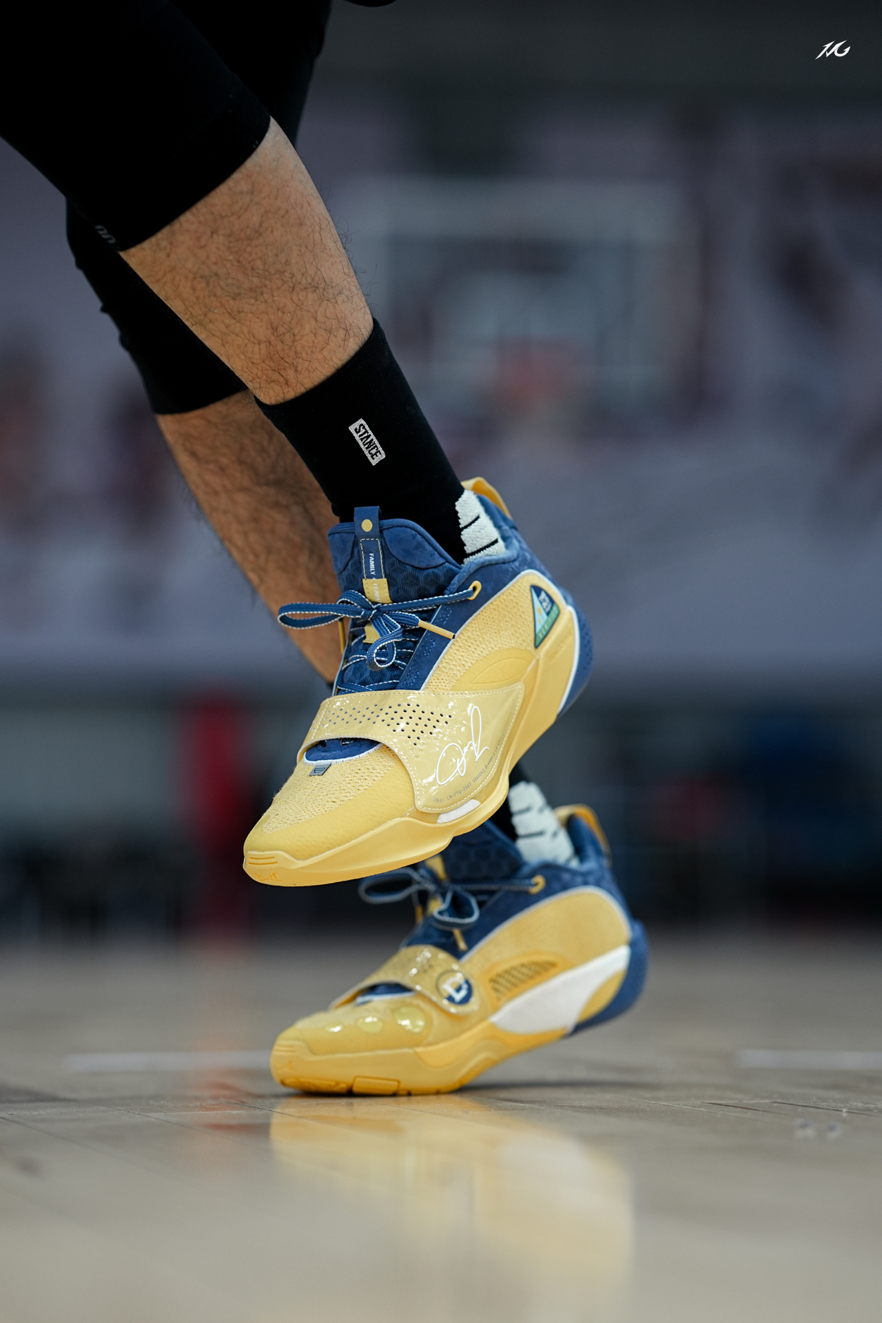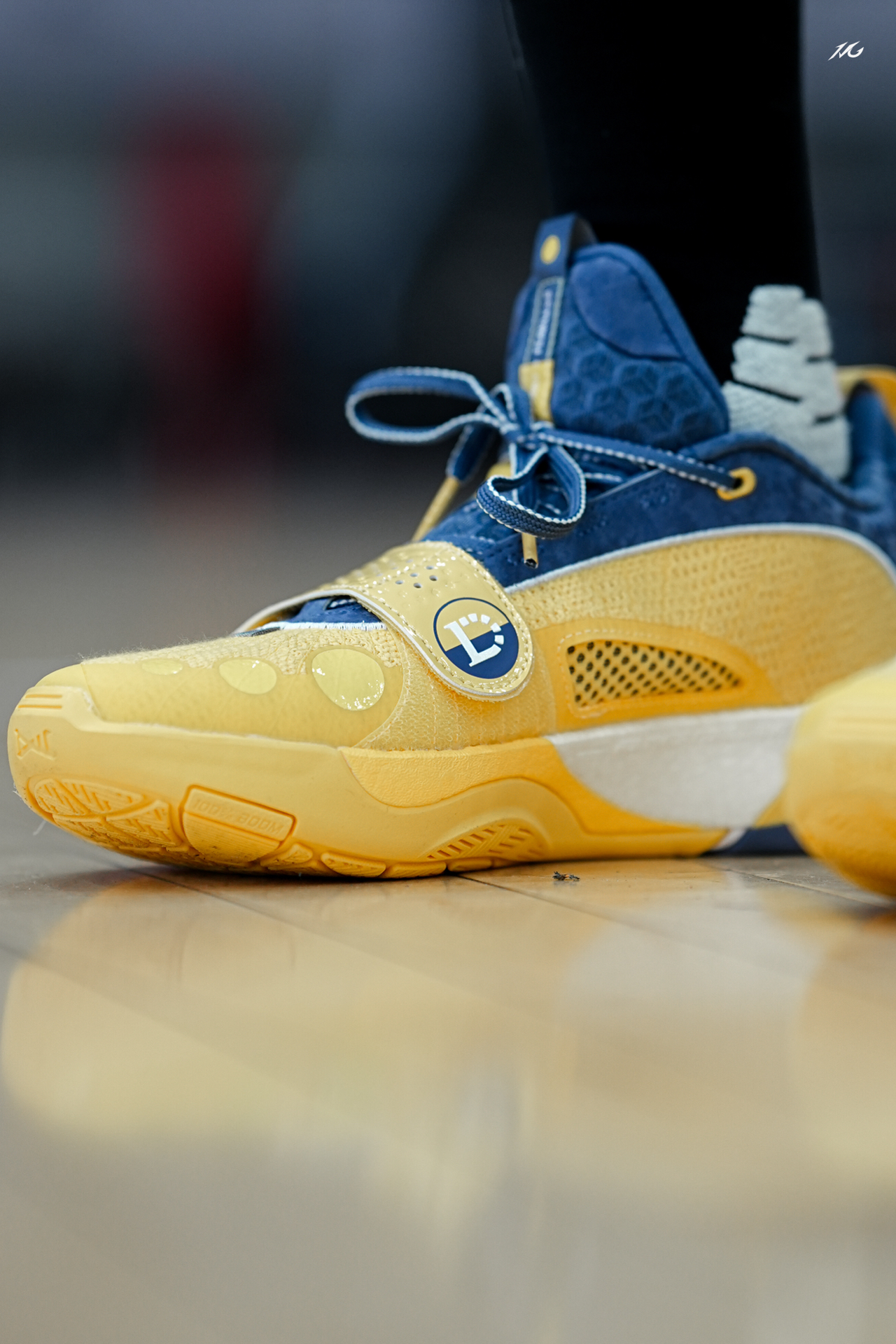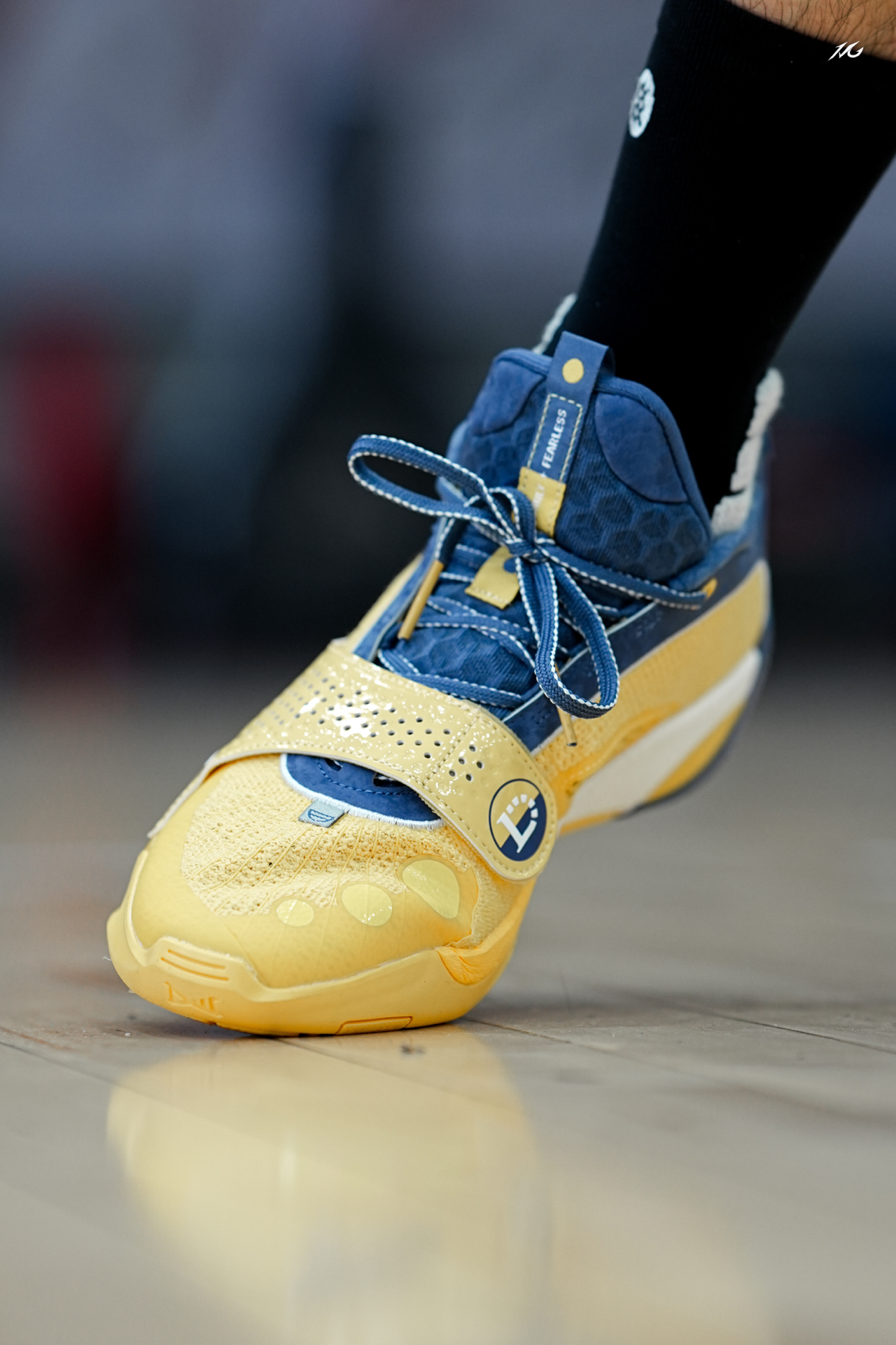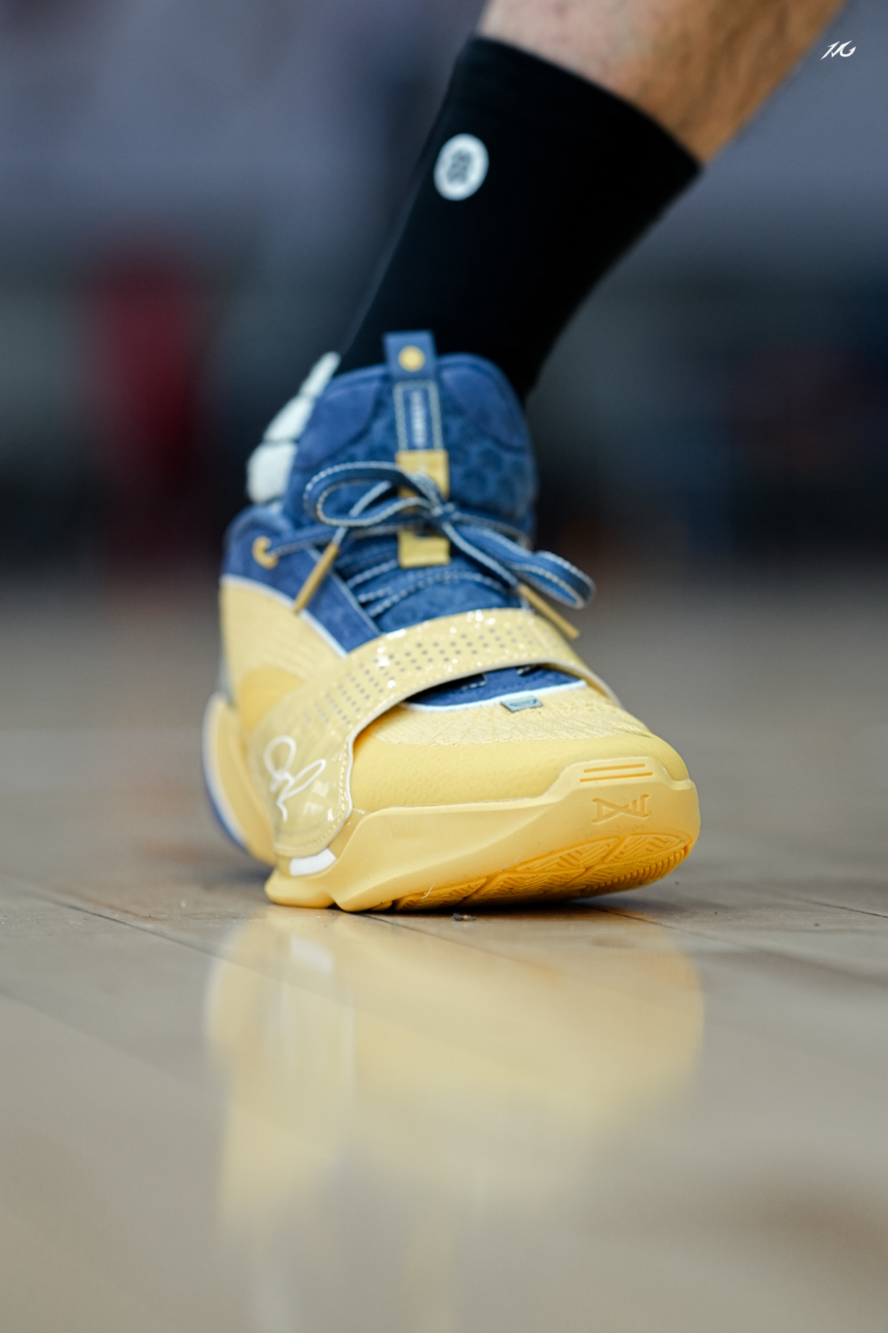 今日上脚呈现一双全城13返场的“能量饮料”配色!这也是拉塞尔的球员PE配色!个人logo十分明显! 我觉得这个配色还是蛮好看的,上脚配个黑袜子还是挺对味的!牛仔蓝和黄色的搭配其实很少见啦! 不知道你们觉得这鞋上脚咋样? #实战球鞋看我的 #全城13返场
