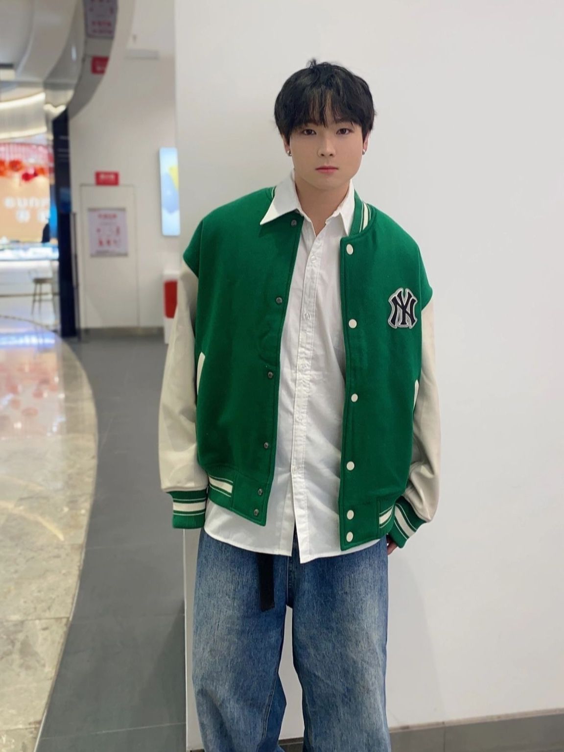这个夹克上身真的超级nice,尺码刚好合身效果最佳!!! 这件橄榄绿配色真的戳中复古心——低饱和军绿色自带松弛感,胸前的立体三叶草标+暗纹三条杠,低调又有辨识度,灯光下还会泛出细腻的光泽感~❤️