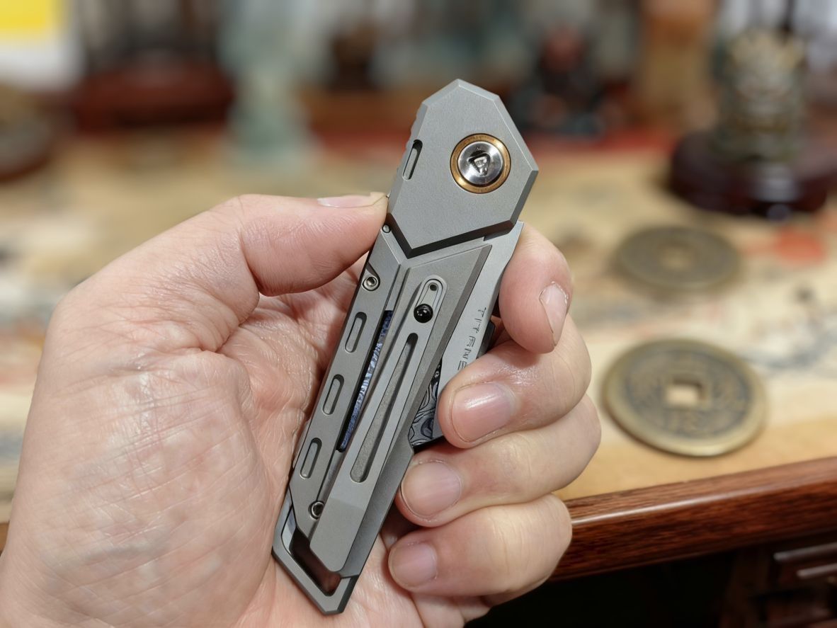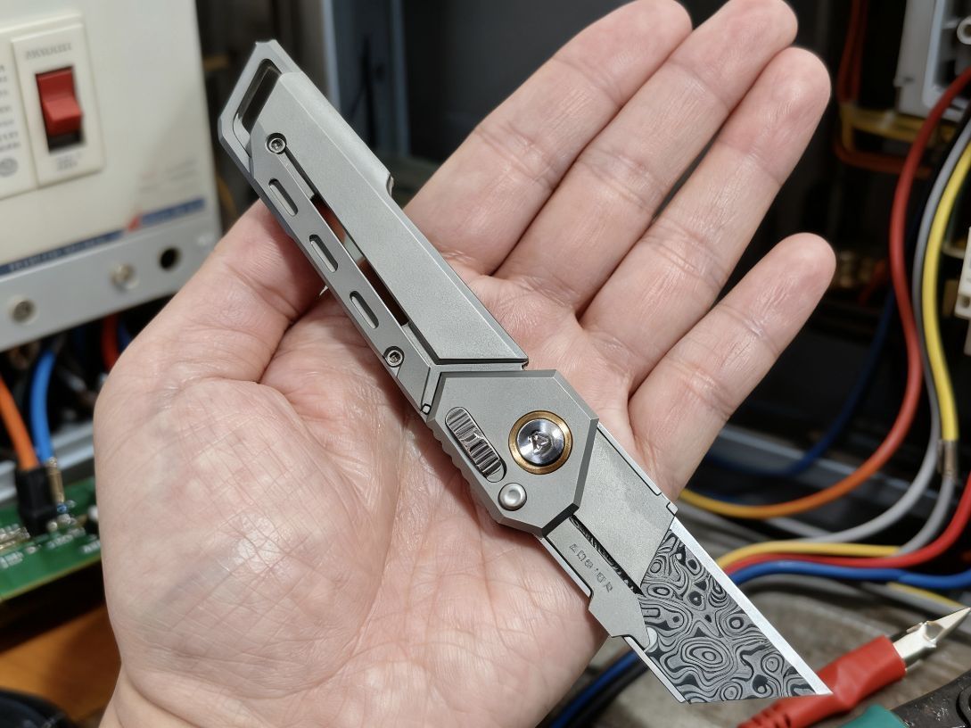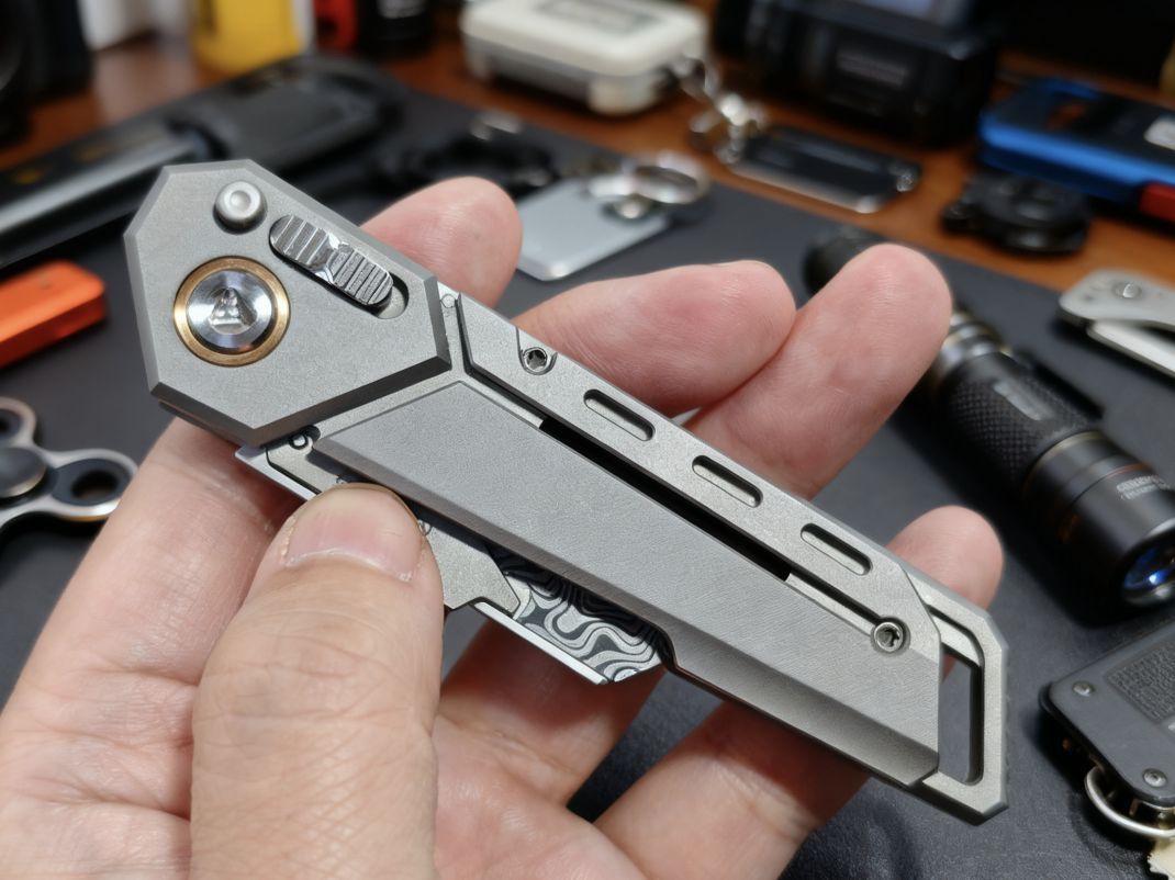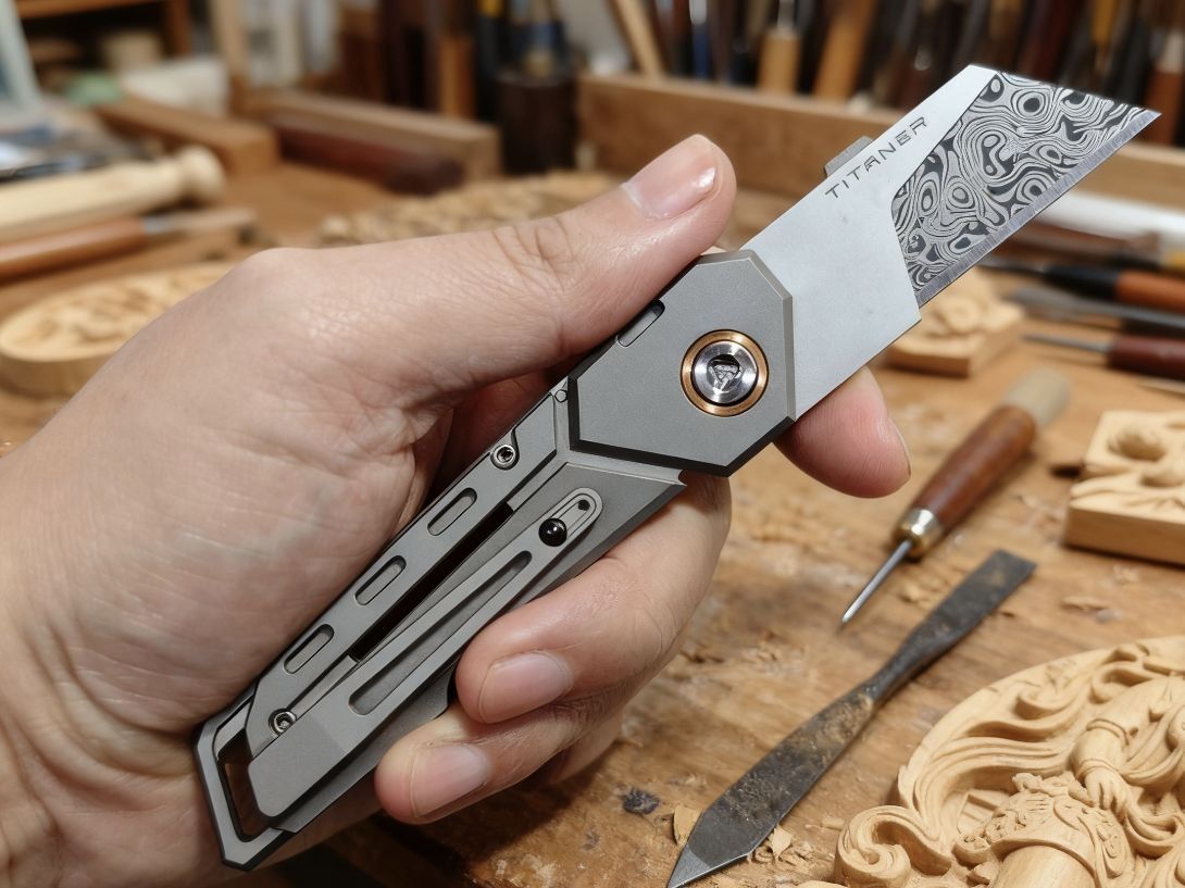 把玩与实用的兼容特性,让它能满足多元需求。折叠展开过程丝滑,钛合金喷砂后的细腻触感,搭配大马花纹刀片,把玩时能感受机械设计之美,还能缓解压力。实用方面,拆快递、裁纸、切布料、处理绳索等日常切割场景都能轻松应对,甚至还能切断细电线。折叠后刀片可完全收回,安全性高,抱夹端部的陶瓷珠装夹时还不伤衣物。同时它支持多种标准美工刀片,刀身两侧还有氚管槽可 DIY,实用性和个性化都兼顾到了。