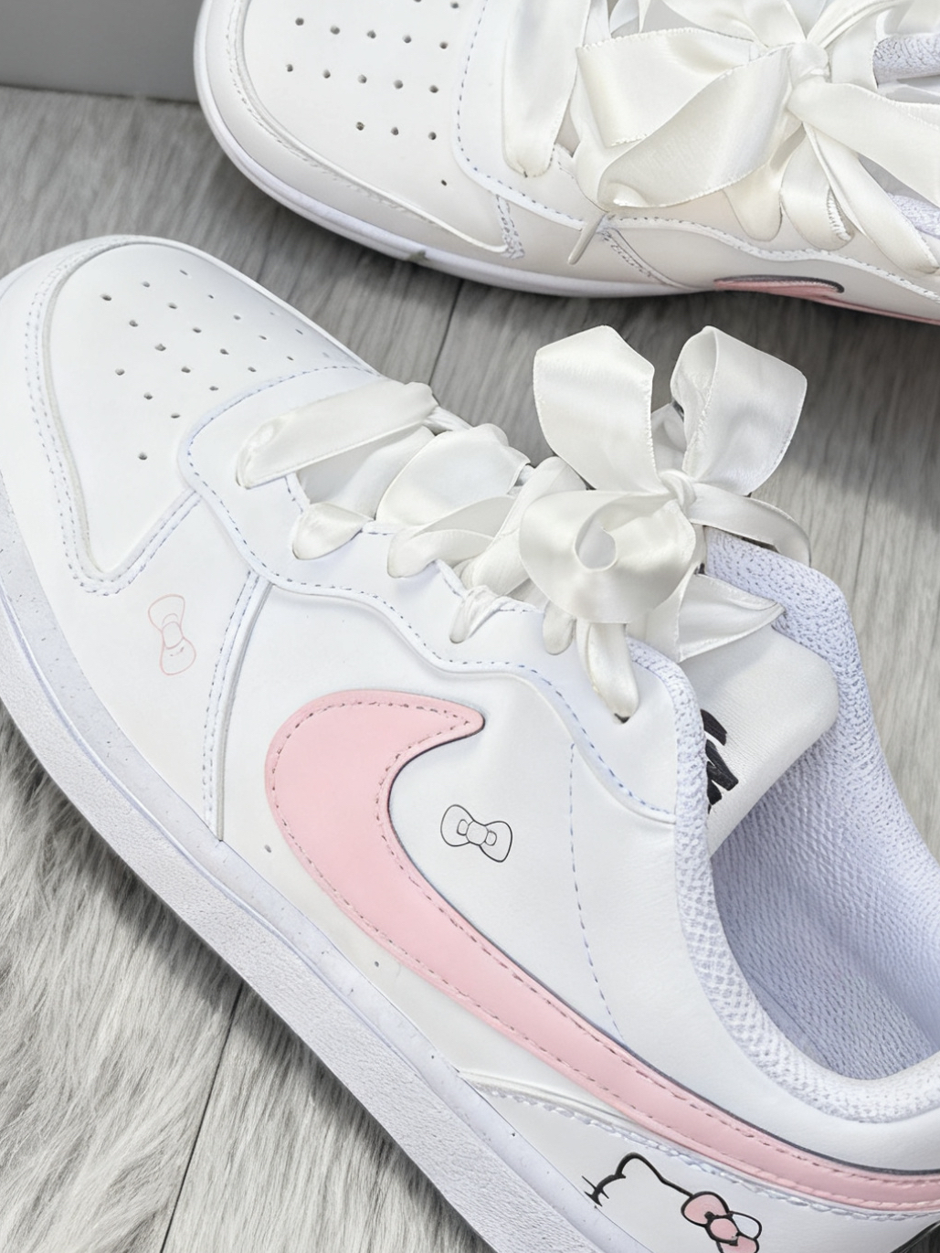 Hello各位侧面藏着的Kitty小图案,一低头就能看到甜美板鞋尊嘟超可爱☺️ 粉白配色甜得刚好最惊喜的是鞋底质感,像裹了层柔滑的丝绸,踩起来软和还不硌脚🥰