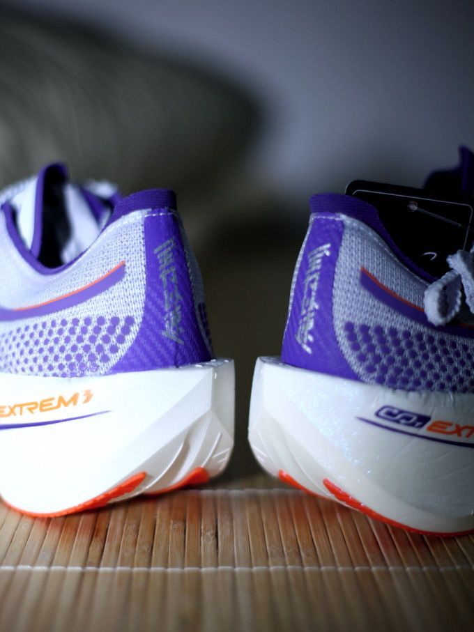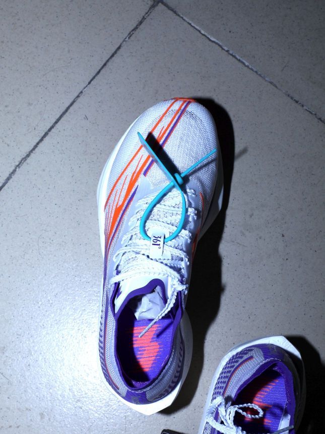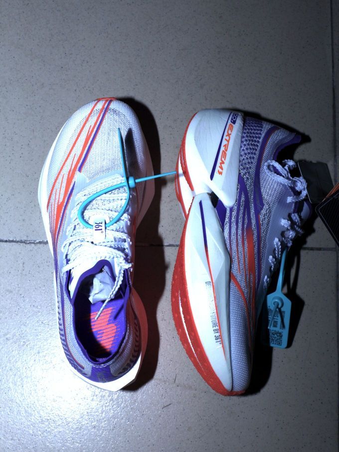 ✨361° 飞飚future1.5 我觉得CQT配色是所有配色里面颜值最高的,没有之一。 一开始我以为这代中底还和一代一样没啥有变化,只是优化了鞋面。 但上脚后却惊奇的发现,脚感柔和了好多,不在是之前那种硬的跟板砖似的脚感。 如果想体验一下顶碳的魅力,还是值得一试的,⚠️前提是脚踝力量得跟得上,不然真的容易出现崴脚的风险。 对了,鞋子尺码正常,按正常鞋码标准选择即可☑️。