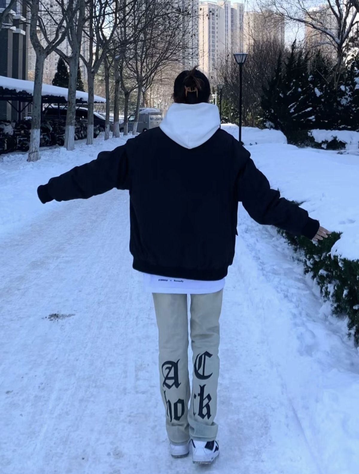 女大学生ootd 叠穿是我的天菜~今天是黑色飞行棉服➕白色卫衣 不要太帅!黑色棉服版型硬挺 经典百搭颜色真的很爱 棉服防风保暖 是冬天最爱的保暖单品之一